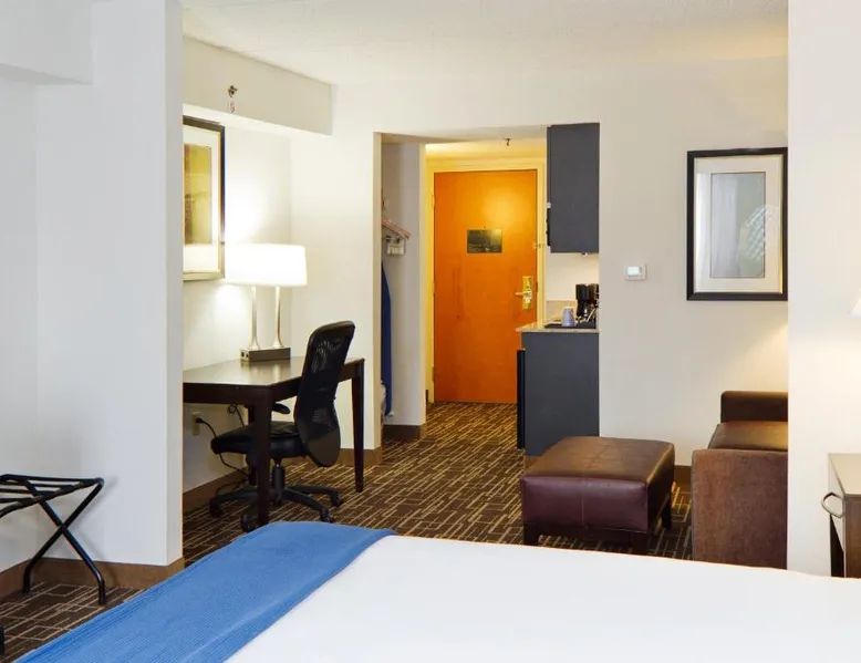 Greenville Zoo is 5 minutes' drive from this Greenville hotel, which features an outdoor pool and guest rooms with free WiFi. A 24-hour fitness center is on site, and Paris Mountain State Park is 8.1 mi away. A flat-screen TV, microwave, and refrigerator in every room. The Holiday Inn Express & Suites Greenville-Downtown, an IHG Hotel Greenville-Downtown offers cable TV and a work desk in each room. A business center with fax and photocopying services is available for added convenience. The hotel also offers on-site laundry services. The Peace Center for the Performing Arts is less than 1 mi away. Greenville Downtown Airport is 3.5 mi from the Downtown Greenville Holiday Inn Express & Suites Greenville-Downtown, an IHG Hotel. This room features a flat-screen TV, microwave, and small refrigerator.