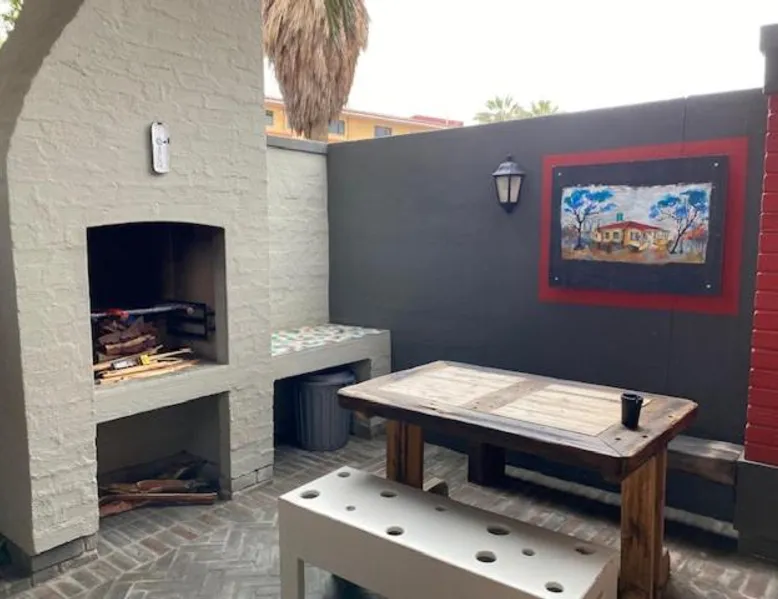 Comfortable Accommodations: de Baken Self-Catering in Walvis Bay offers a well-appointed apartment with free WiFi, ensuring a pleasant stay. Modern Amenities: The apartment features a kitchenette, private bathroom, and a balcony with a quiet street view. Additional amenities include streaming services, a work desk, and a dining area. Outdoor Facilities: Guests can enjoy an outdoor fireplace, seating area, and barbecue facilities. The property also provides full-day security and an outdoor dining area. Convenient Location: Located 9.9 mi from Walvis Bay Airport, the apartment is close to attractions such as Dune 7 (9.3 mi) and Walvis Bay Golf Course (1.5 mi). Highly rated for its kitchen, restaurant, and room cleanliness. Boasting a private entrance, this spacious apartment also comes with 1 living room, 2 separate bedrooms and 1 bathroom with a walk-in shower. Guests will find a stovetop, a refrigerator, kitchenware and a microwave in the well-equipped kitchen. The apartment also includes a barbecue. This apartment has a seating area, a dining area, a flat-screen TV with streaming services and an outdoor dining area. The unit has 3 beds.