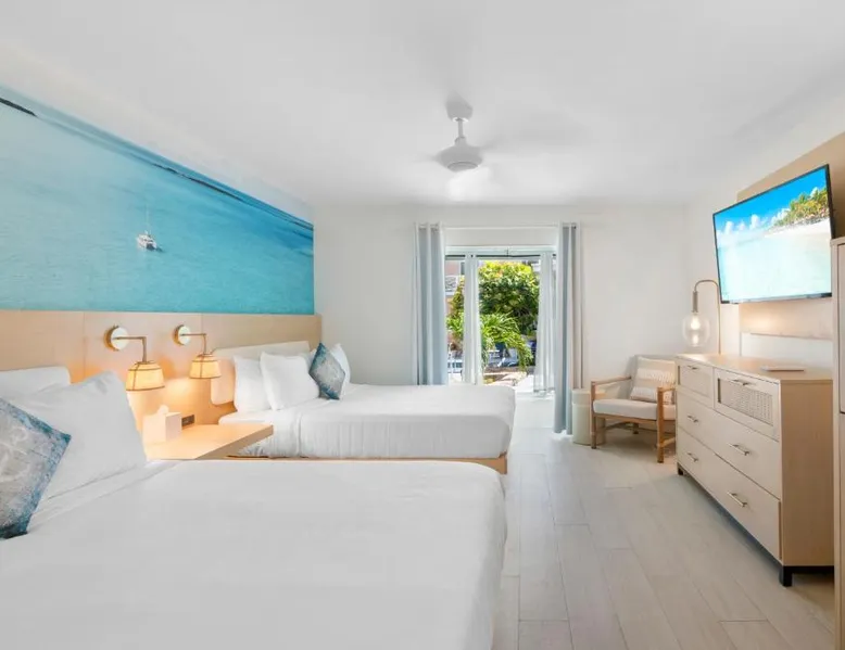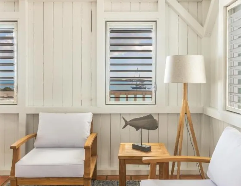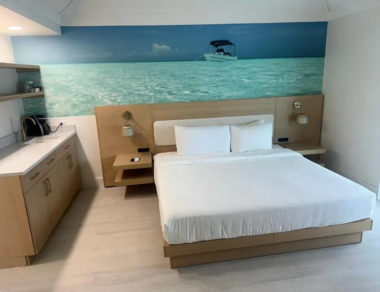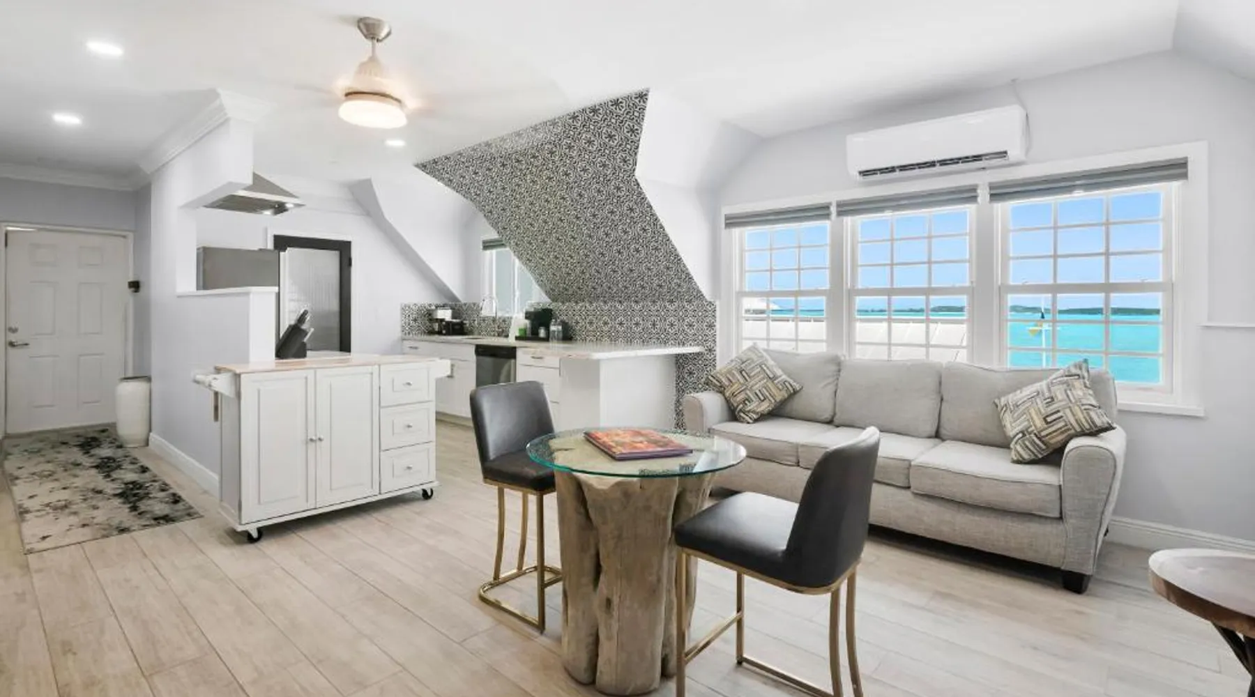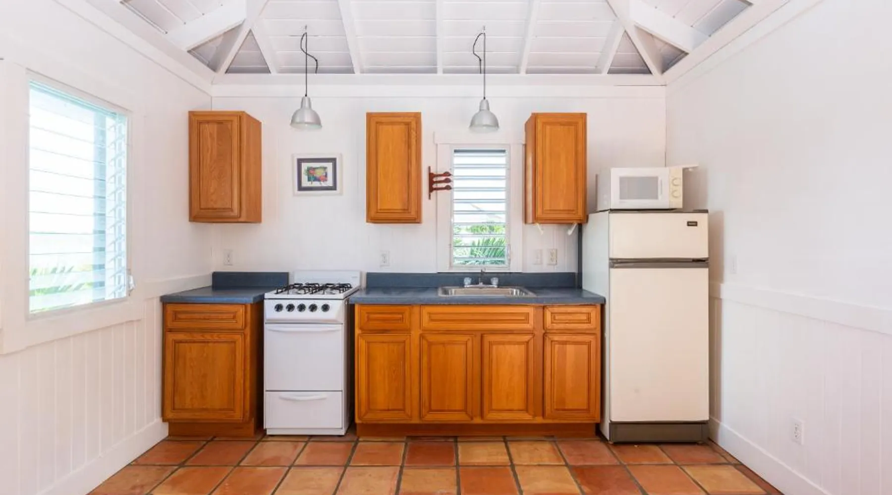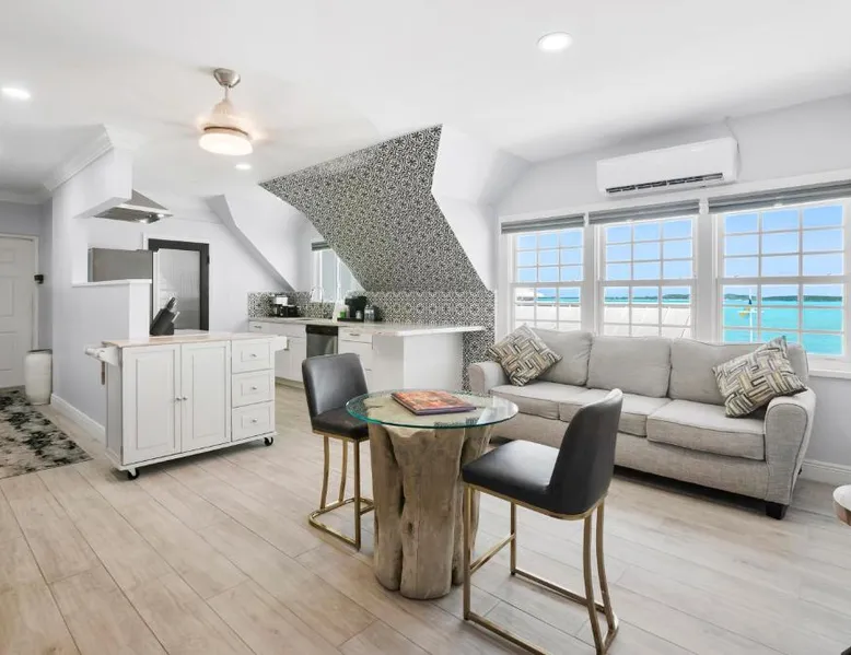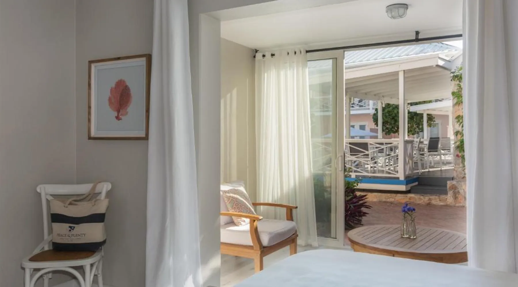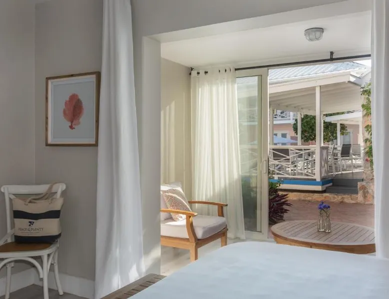 Discover a Bahamas vacation at Peace & Plenty Resort Here you will find a 33-room resort and 5 cottages with waterfront views. To completely submerge yourself in the Exuma’s ambiance and seaside serenity, you are invited to enjoy our new exclusive Peace and Plenty Beach Club on Stocking Island just across Elizabeth Harbor on our complimentary boat shuttle! Our central location in downtown George Town makes us the perfect launching pad for all that Exuma and the Bahamas has to offer whether it is swimming with famous Exuma Pigs or snorkeling in the Thunderball Grotto and at Dean’s Blue Hole. A harbourfront outdoor pool is on site. Guests can relax on the sun terrace or walk through the gardens. Boat and snorkeling rentals are available nearby. Bone fishing and cave diving are also in the area. This cottage features its own private back deck facing the Turtle Lagoon. It also features an private bathroom, a fully-stocked kitchen and a living area.