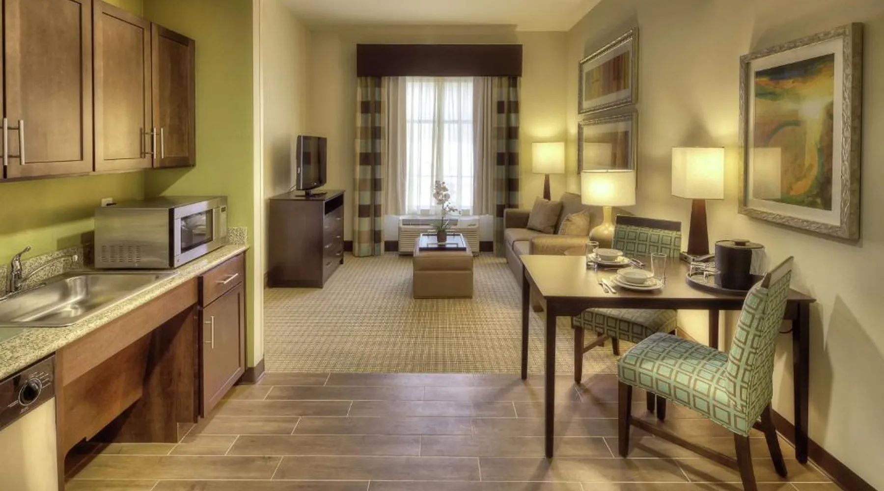 Comfortable Accommodations: Homewood Suites by Hilton Victoria in Victoria offers family rooms with air-conditioning, kitchen facilities, and free WiFi. Each room includes a sofa bed, work desk, and seating area. Leisure and Wellness: Guests can enjoy a fitness center, outdoor swimming pool, and free on-site parking. Additional amenities include a elevator, 24-hour front desk, business area, and luggage storage. Convenient Location: Located 14 mi from Victoria Regional Airport, the hotel provides easy access to local attractions. Visual alarm, telephone, and door notification devices are installed in this accessible room.