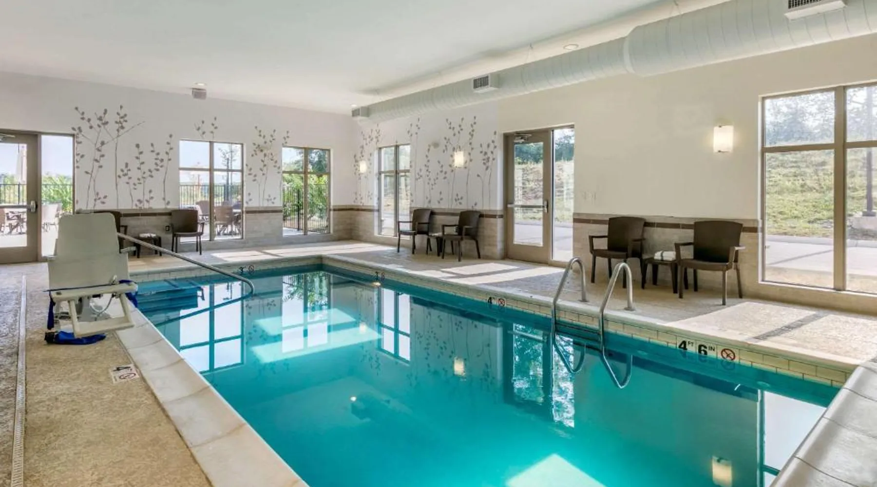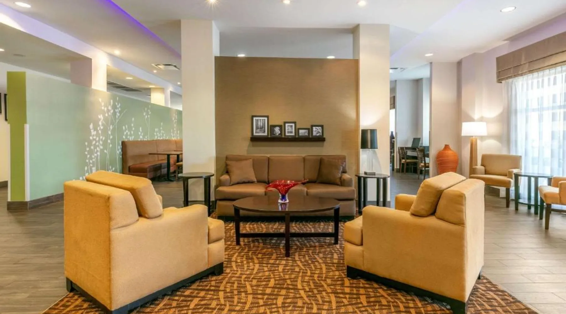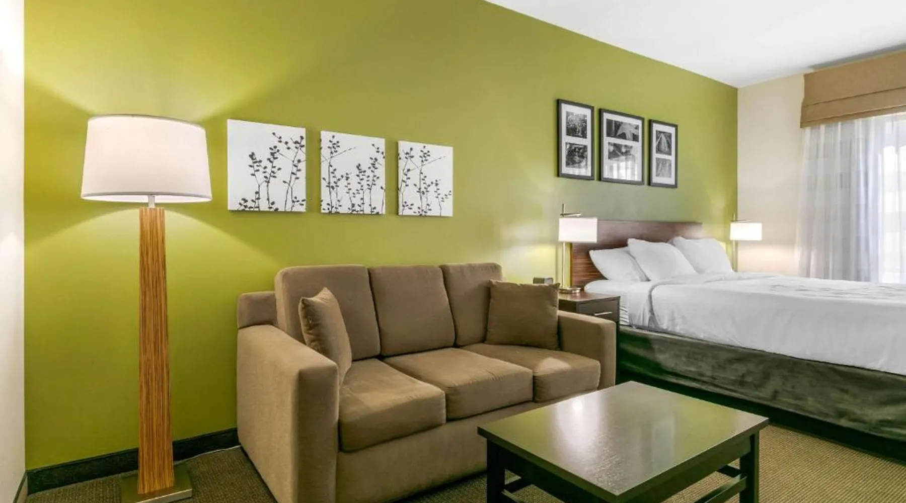 Comfortable Accommodations: Sleep Inn & Suites Columbia I-65 in Columbia offers comfortable rooms with free WiFi, air-conditioning, and modern amenities. Guests appreciate the bed comfort and attentive staff. Facilities and Services: The hotel features a fitness center, indoor swimming pool, and a elevator. Additional services include a 24-hour front desk, daily housekeeping, business area, outdoor seating, and express check-in and check-out. Local Attractions: Located 37 mi from Nashville International Airport, the hotel is near James K Polk House (9.3 mi), Elm Springs (12 mi), Chickasaw Trace Park (12 mi), Carnton and Winstead Hill Park (21 mi), and Lotz House Museum (23 mi). The suite is furnished with a desk and a seating area.