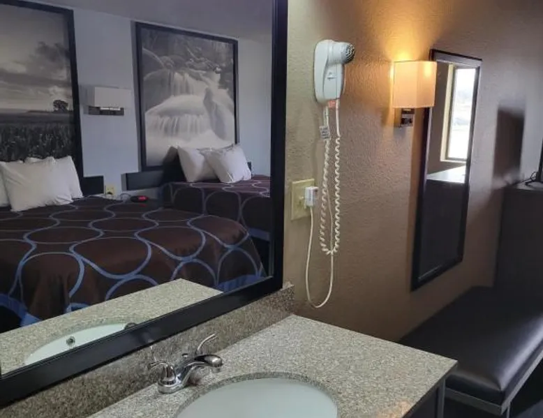 Comfortable Accommodations: Super 8 by Wyndham Sullivan in Sullivan offers family rooms with air-conditioning, private bathrooms, and free WiFi. Each room includes a bath, tea and coffee maker, hairdryer, free toiletries, and a shower. Convenient Facilities: Guests benefit from a 24-hour front desk, free on-site parking, and free toiletries. Additional amenities include a bath, tea and coffee maker, hairdryer, and free toiletries. Prime Location: Located 70 mi from St. Louis Lambert International Airport, the hotel is near attractions such as Meramec Caverns (9.3 mi), Purina Farms (30 mi), and Robertsville State Park (30 mi). Guests appreciate the convenient location, attentive staff, and breakfast provided by the property. The quadruple room offers air conditioning, a tea and coffee maker, as well as a private bathroom boasting a bath and a shower. The quadruple room features heating. The unit has 1 bed.