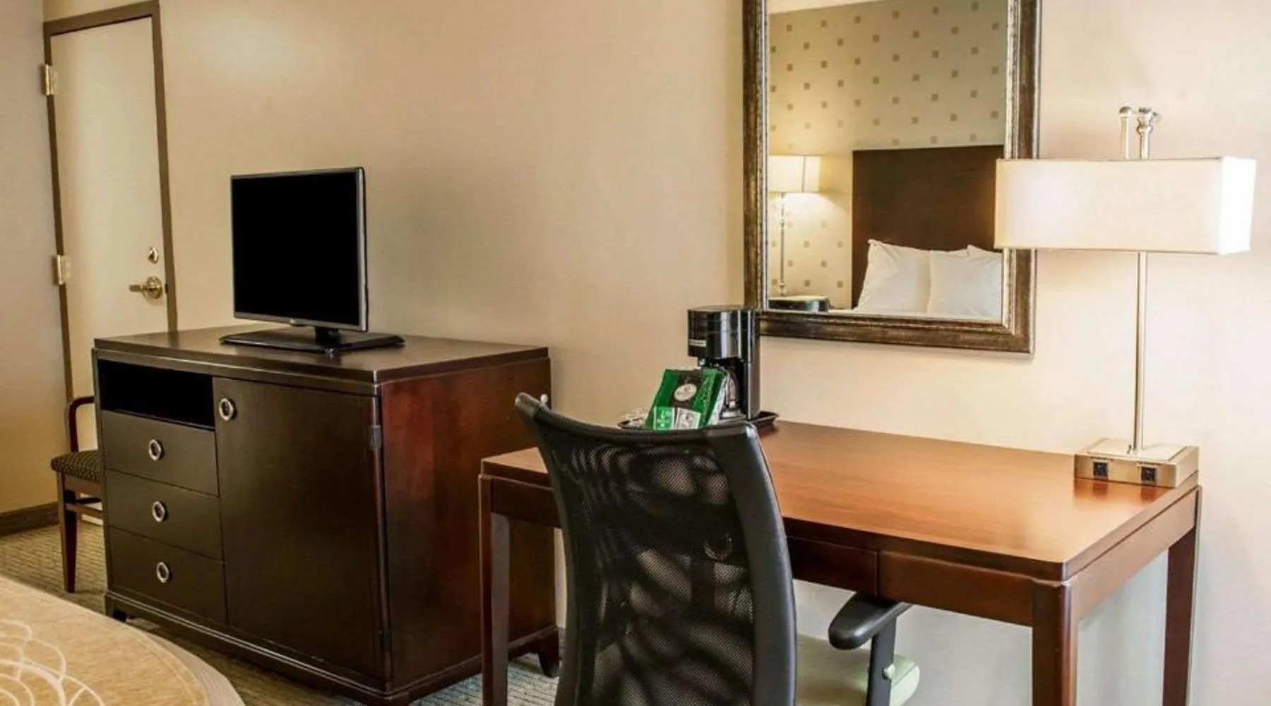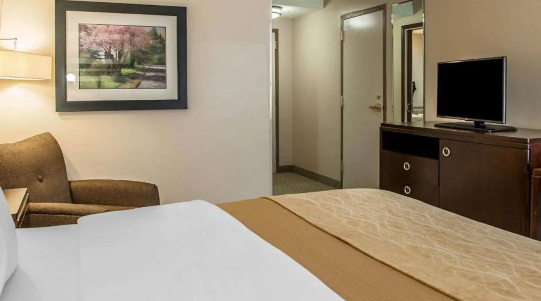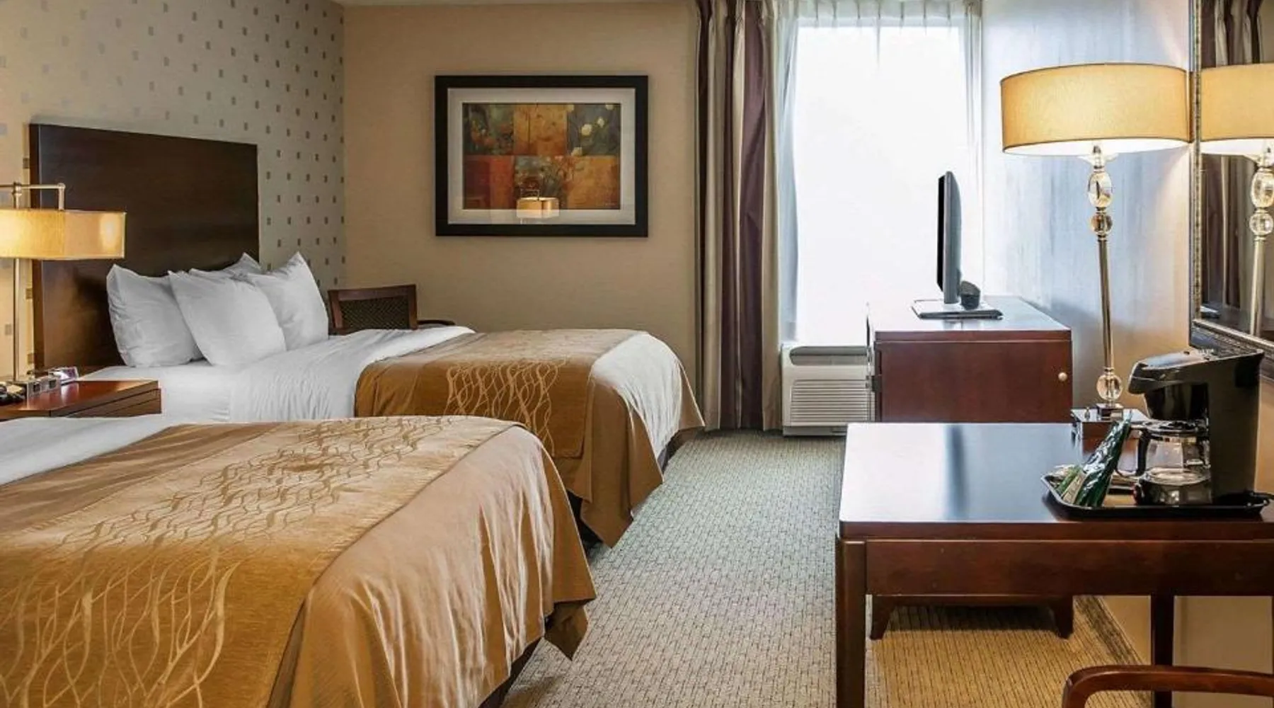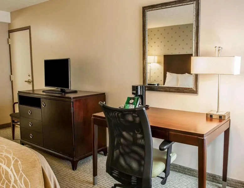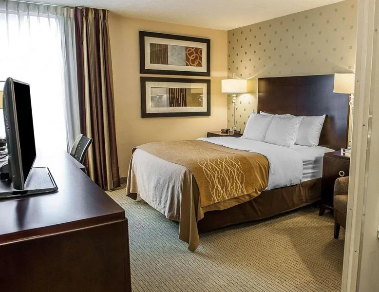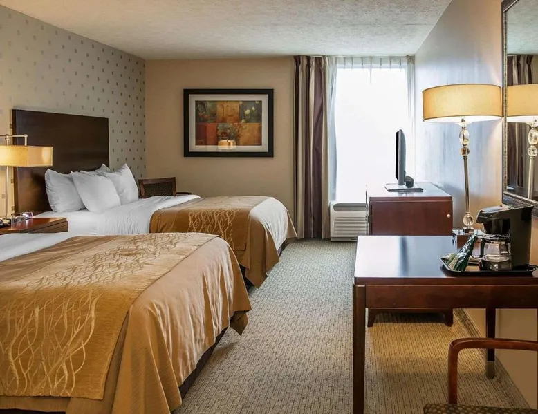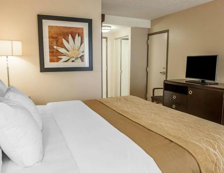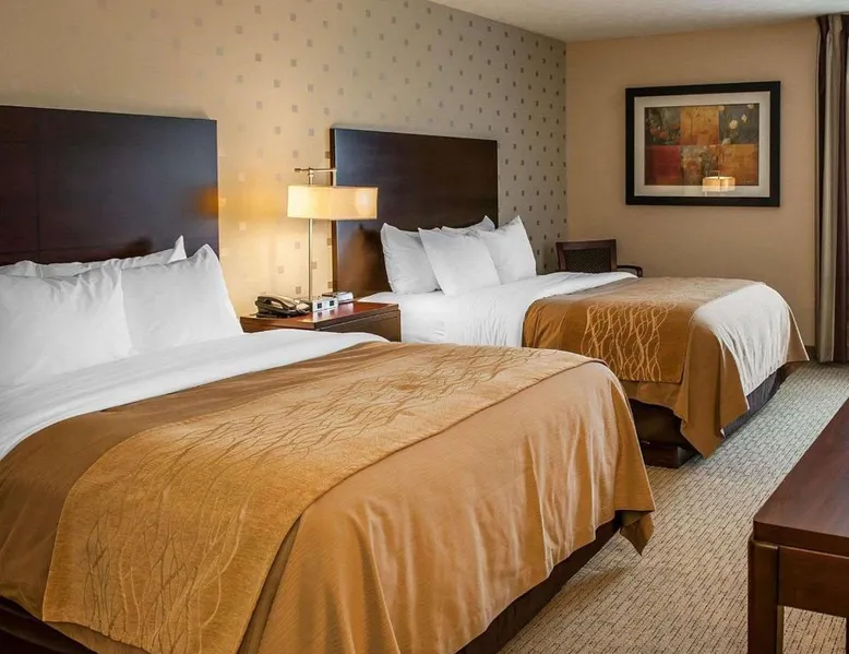 Comfortable Accommodations: Comfort Inn Bloomington near University in Bloomington offers air-conditioned rooms with private bathrooms, work desks, and free WiFi. Each room includes a wardrobe, TV, and coffee machine. Facilities and Services: Guests can enjoy a fitness center, lounge, elevator, 24-hour front desk, and business area. Free on-site private parking is available. A continental breakfast is served daily. Prime Location: Located 43 mi from Indianapolis International Airport, the inn is near Simon Skjodt Assembly Hall (1.2 mi), Indiana University (1.9 mi), and Wonderlab Museum Of Science (1.9 mi). Guests appreciate the attentive staff and convenient location. This double room features a private bathroom and heating. The spacious air-conditioned double room provides a wardrobe, a safe deposit box and a carpeted floor.