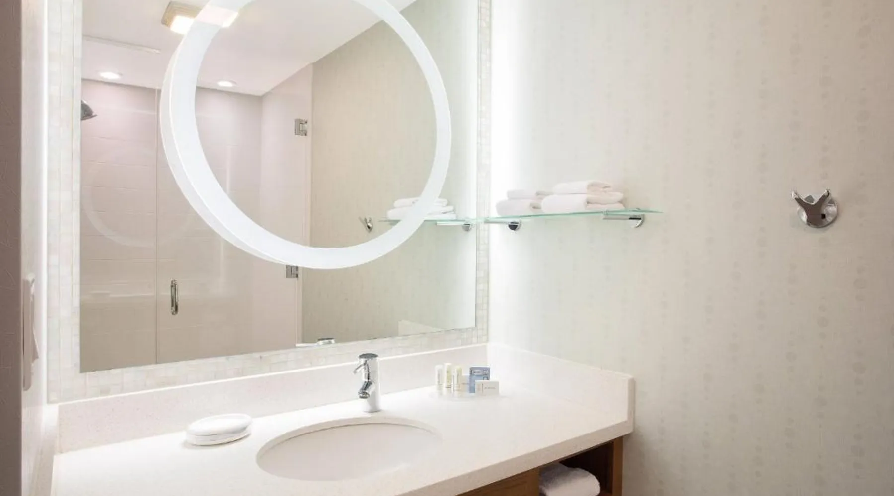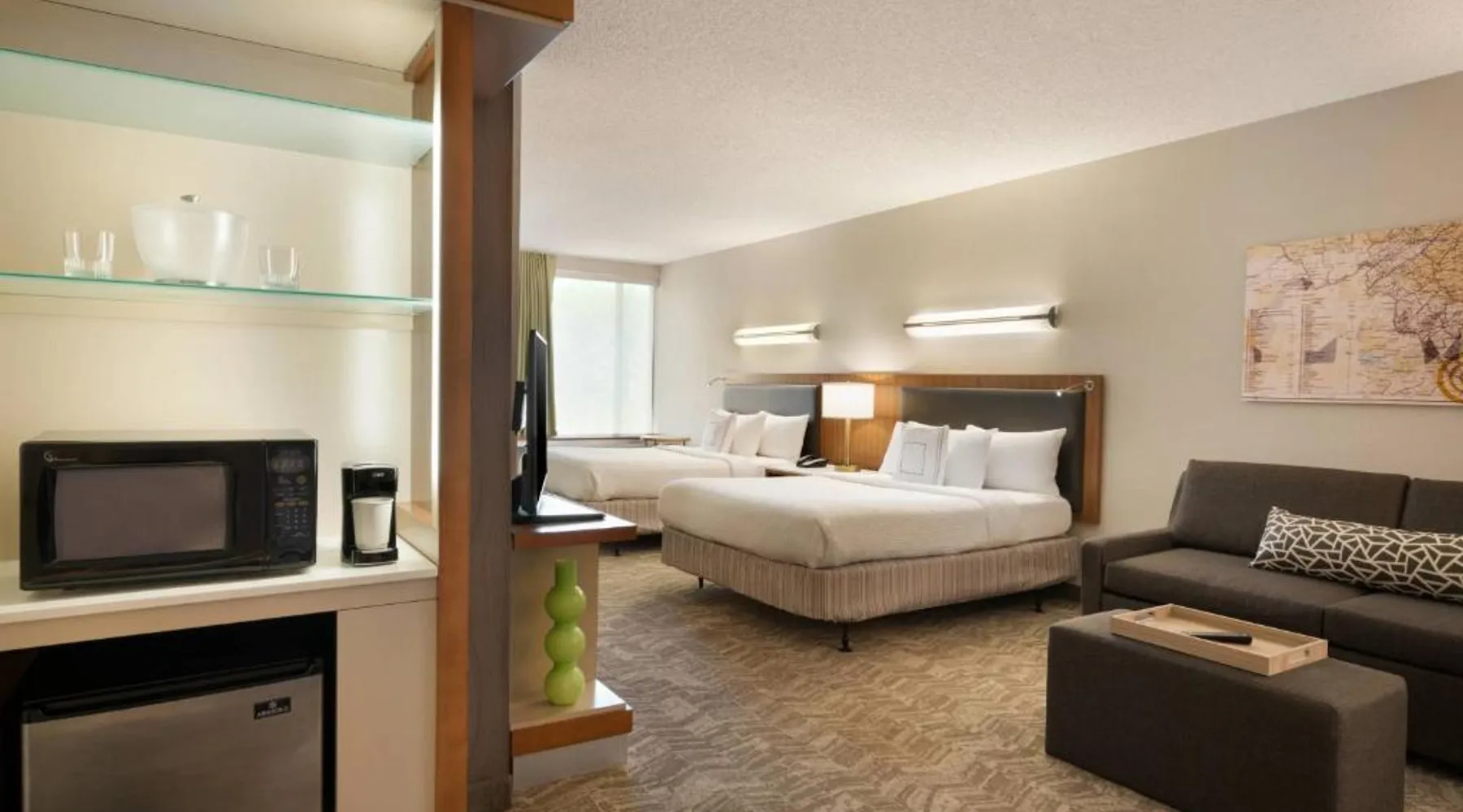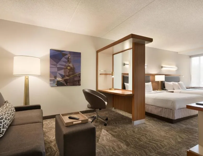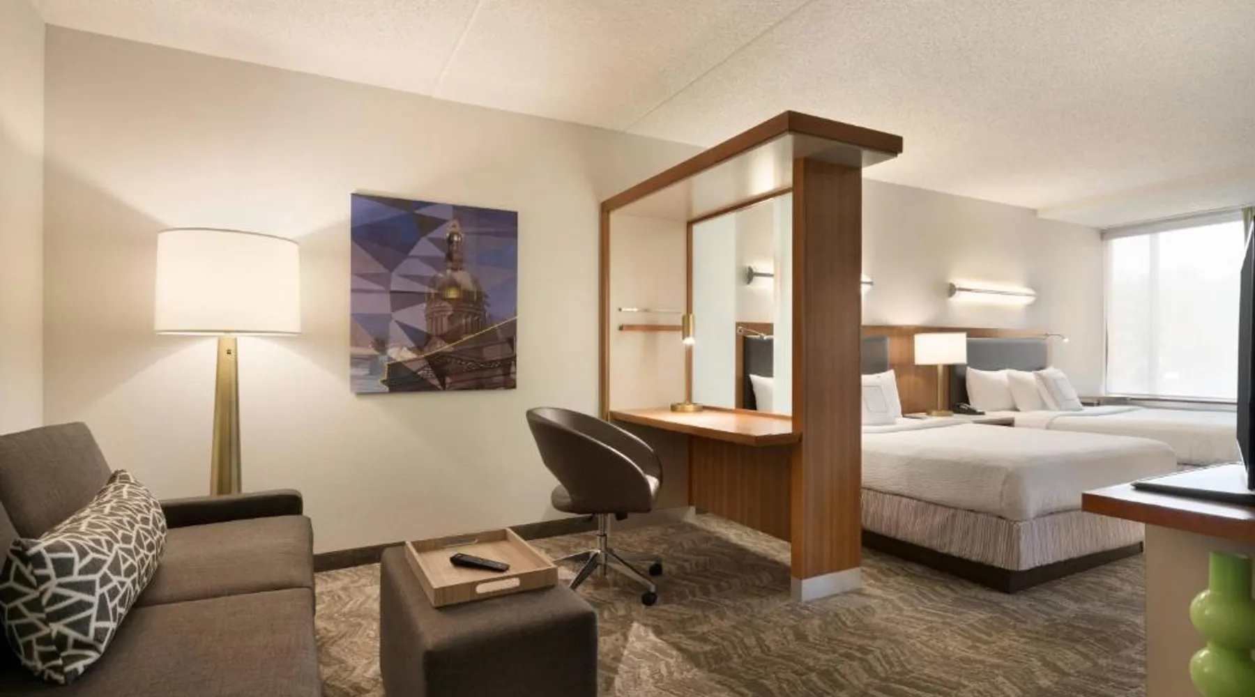 Comfortable Accommodations: SpringHill Suites Ewing Township Princeton South in Ewing offers family rooms with air-conditioning, private bathrooms, and modern amenities. Each room includes a work desk, TV, and free toiletries. Exceptional Facilities: Guests can enjoy a fitness center, indoor swimming pool, and a bar. The hotel provides a 24-hour front desk, free on-site parking, and a continental, American, or buffet breakfast with warm dishes, fresh pastries, fruits, and juice. Prime Location: Located 2.5 mi from Trenton-Mercer Airport, the hotel is 12 mi from Princeton University, 14 mi from Sesame Place, and 28 mi from Six Flags Great Adventure & Wild Safari. Highly rated for its attentive staff, room cleanliness, and comfort. This room features a microwave and refrigerator.