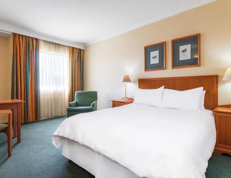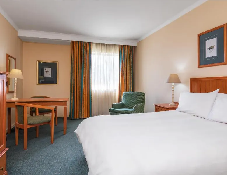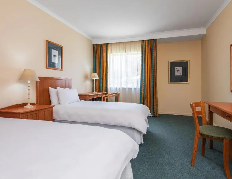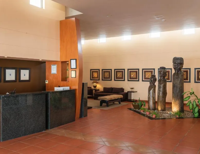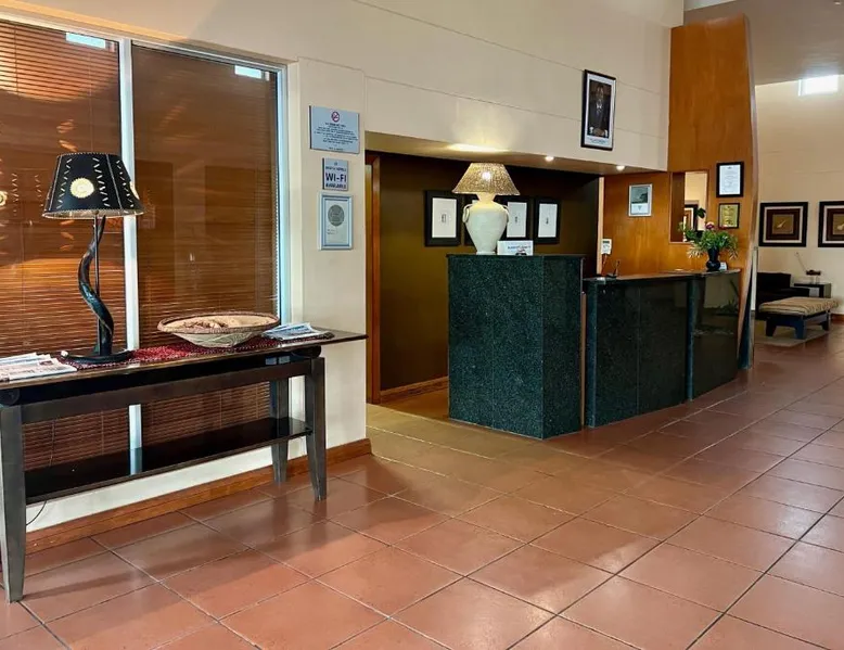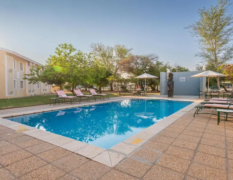 Comfortable Accommodations: Protea Hotel by Marriott Ondangwa in Ondangwa offers comfortable rooms with air-conditioning, private bathrooms, and free WiFi. Each room includes a work desk, TV, and complimentary toiletries. Dining and Leisure: Guests can enjoy a family-friendly restaurant serving African and international cuisines, a bar, and a year-round outdoor swimming pool. Additional facilities include a hot tub, casino, and 24-hour front desk. Convenient Location: Located 2.5 mi from Andimba Toivo ya Toivo Airport, the hotel is near Nakambale Museum (8.7 mi) and Oshakati Golf Club (21 mi). Free on-site private parking is available. This double room has air conditioning, a tea and coffee maker, a flat-screen TV with satellite channels and pool views. The unit has 2 beds.