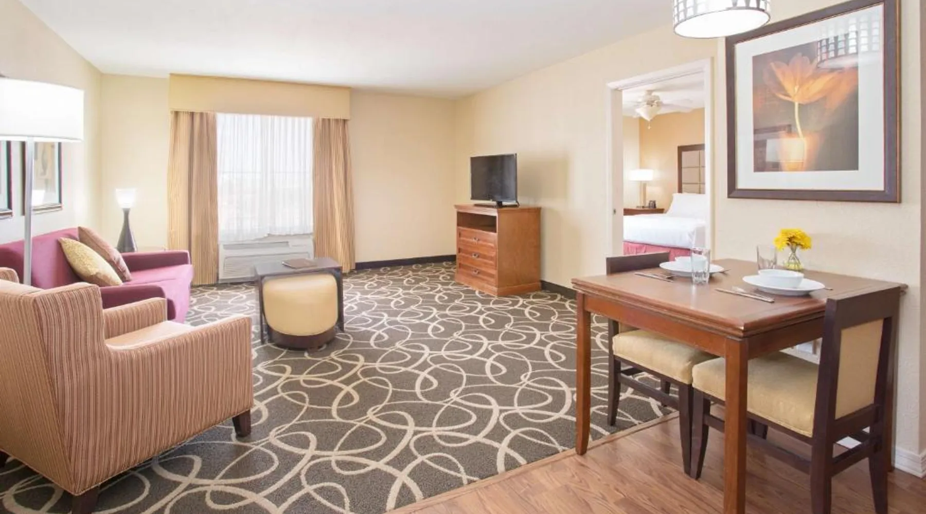 Comfortable Accommodations: Homewood Suites by Hilton Yuma in Yuma offers family rooms with air-conditioning, kitchen facilities, and free WiFi. Each room includes a sofa bed, refrigerator, and TV. Leisure Facilities: Guests can enjoy a fitness center, year-round outdoor swimming pool, and barbecue facilities. Additional amenities include a business area, elevator, and 24-hour front desk. Breakfast and Parking: A complimentary American breakfast is served daily. Paid on-site parking is available. Yuma International Airport is 2.5 mi away. Highly rated by guests. This suite features free Wi-Fi, a fully equipped kitchen, and a seating area with a sofa. This suite is hearing accessible.