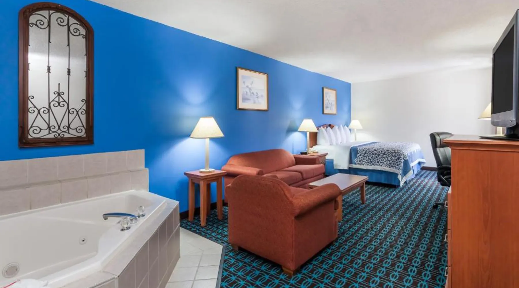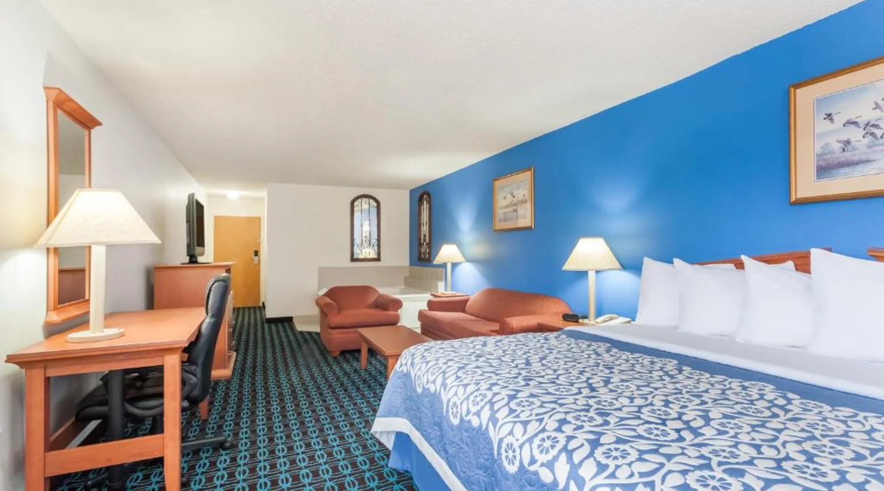 Located directly off Route 50 in Cambridge, Maryland, this hotel features a heated outdoor pool and free Wi-Fi access. Choptank River Fishing Pier State Park is just 5 minutes’ drive away. Each room at the Days Inn & Suites Cambridge features cable TV, a microwave, and a refrigerator. Simply decorated with bright colored bedding and wood furnishings, these rooms also have coffee and tea making facilities. Guests can enjoy a work out in the on-site fitness center at the Cambridge Days Inn. A business center and 24-hour front desk services are also available. Each morning a grab and go breakfast is served in the hotel lobby. The Blackwater National Wildlife Refuge is 13 miles from the hotel. Shopping and dining in Cambridge is within 5 minutes’ drive. This suite features a TV. The unit has 1 bed.
