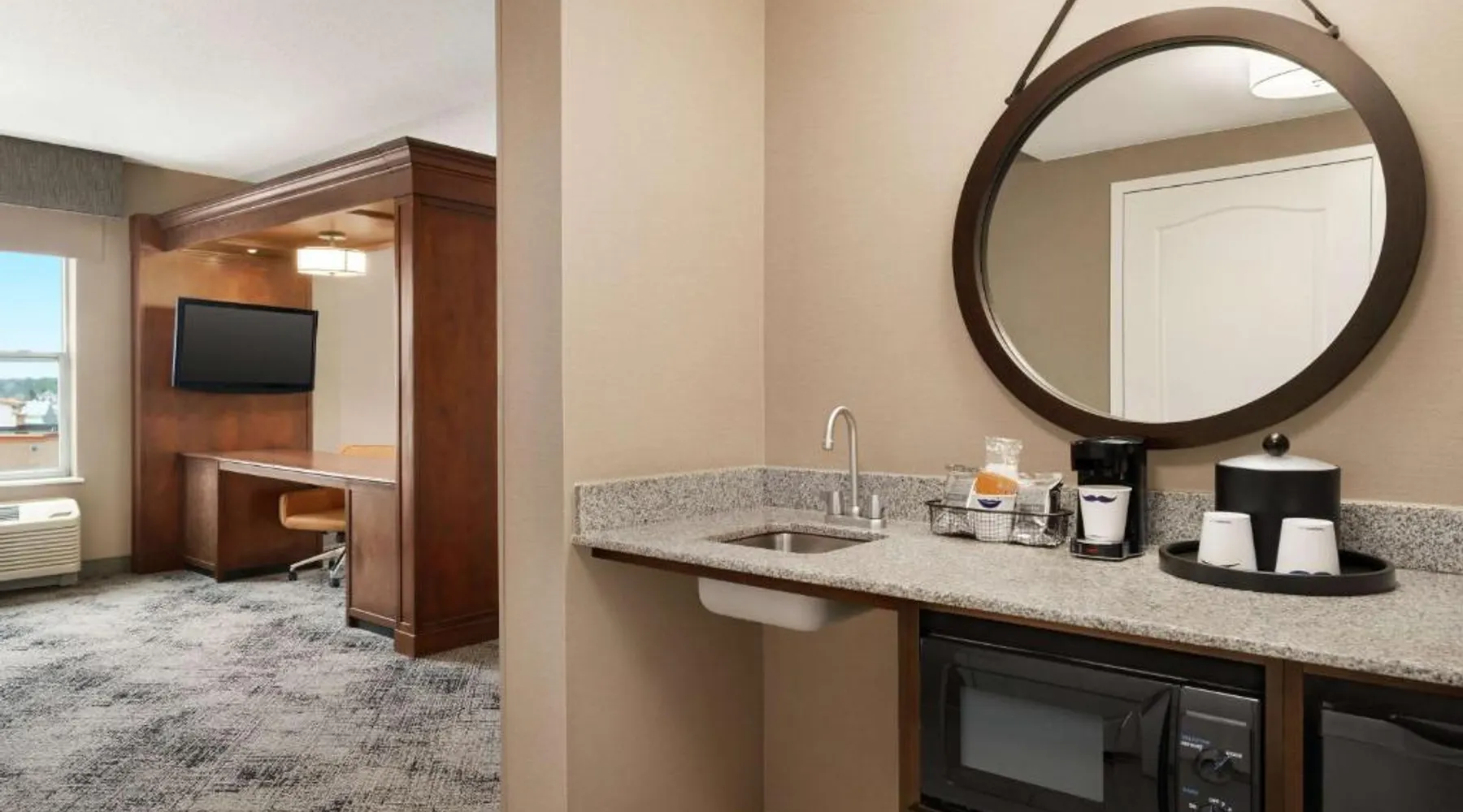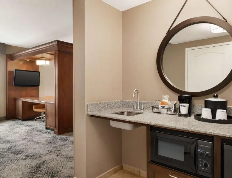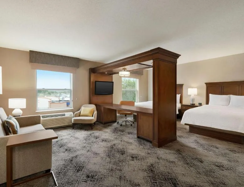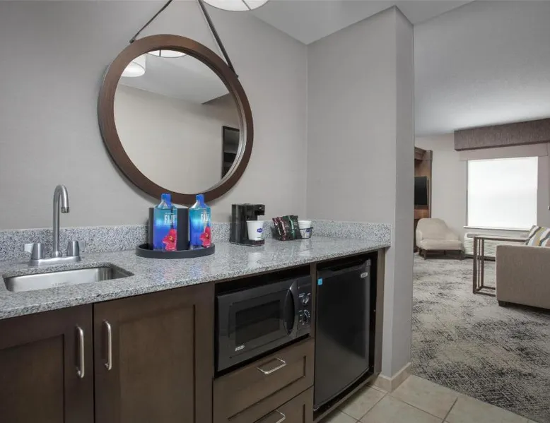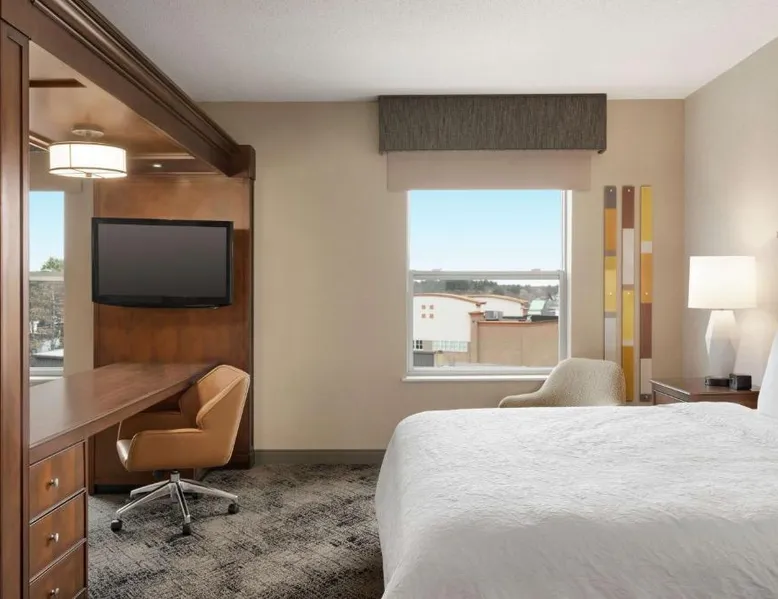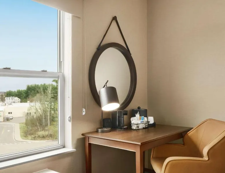 This hotel in Exeter features a saltwater pool. Guest rooms include a flat-screen TV and free Wi-Fi and the hotel is one mile from the American Independence Museum. Every room at the Hampton Inn & Suites Exeter is furnished with coffee facilities, a microwave and a refrigerator. Exeter Hampton Inn & Suites includes a gym and a business center. For added convenience laundry facilities are also available. Hampton Beach and historic downtown Portsmouth is a short drive from the hotel. Hampton Inn & Suites Exeter is less than one mile from PHillips Exeter Academy and Exeter Hospital. This room features a microwave and a refrigerator.