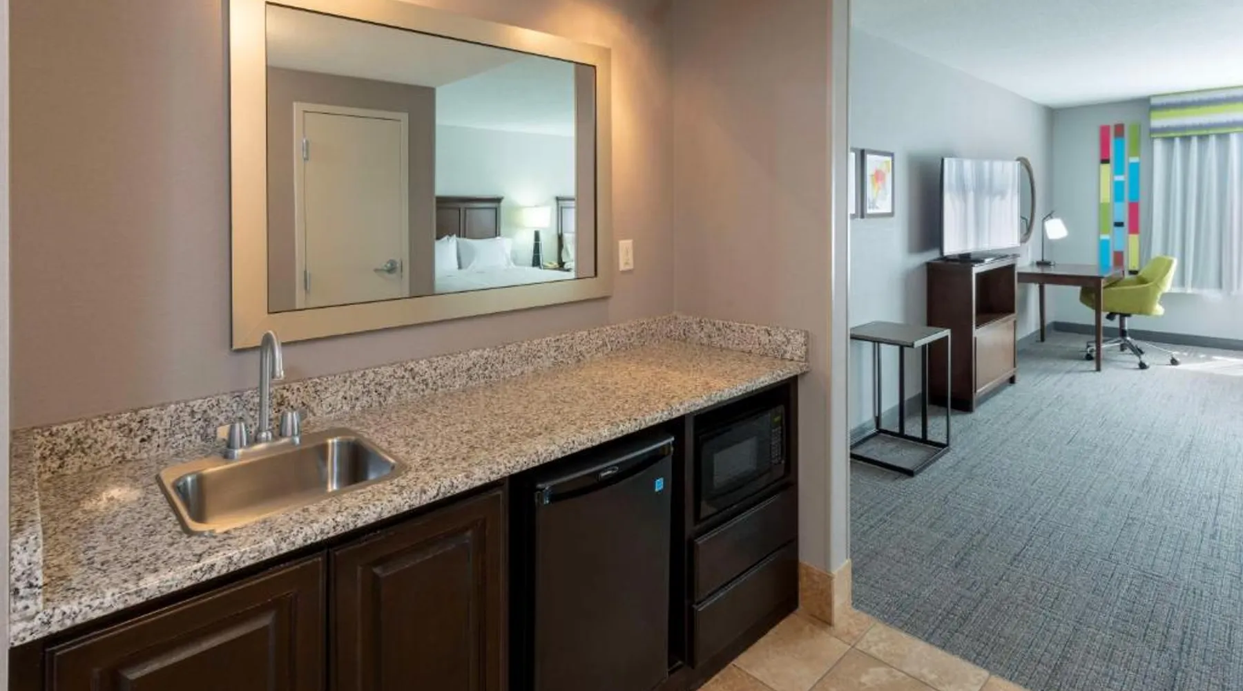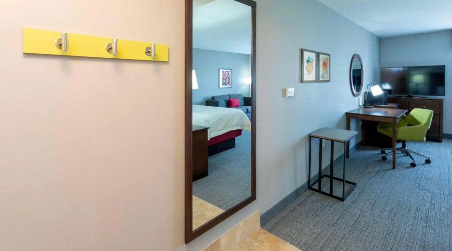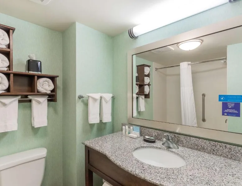 Comfortable Accommodations: Hampton Inn Minneapolis/Shakopee in Shakopee offers comfortable rooms with free WiFi, air-conditioning, and modern amenities. Each room includes a refrigerator, microwave, TV, and free toiletries. Leisure Facilities: Guests can enjoy a fitness center, sun terrace, indoor swimming pool, and outdoor seating area. Additional facilities include a lounge, business area, and child-friendly buffet. Convenient Location: Located 17 mi from Minneapolis-Saint Paul International Airport, the hotel is near attractions such as Valleyfair (2.2 mi) and Hyland Lake Park Reserve (7.5 mi). Free on-site parking is available. Guest Services: The property provides a shuttle service, daily housekeeping, and a 24-hour front desk. Additional amenities include a minimarket, elevator, and luggage storage. Offering free Wi-Fi and a flat-screen TV, this room is equipped with tea and coffee-making facilities and a work desk.