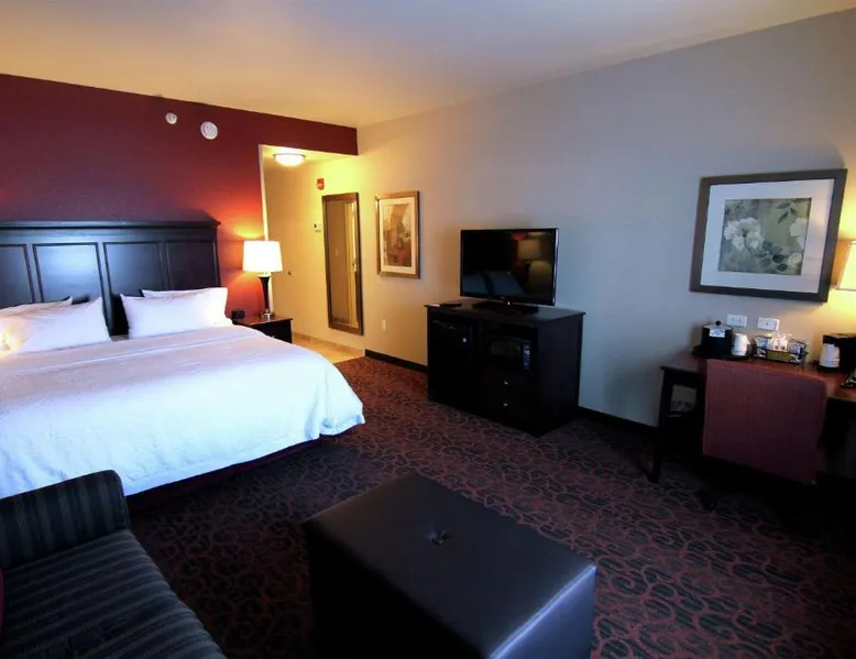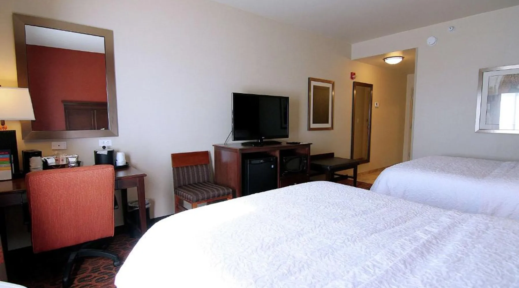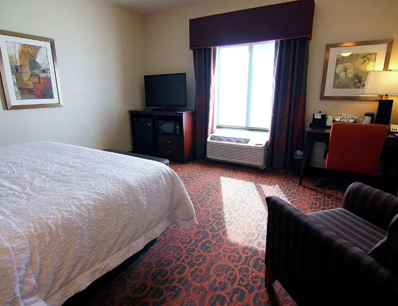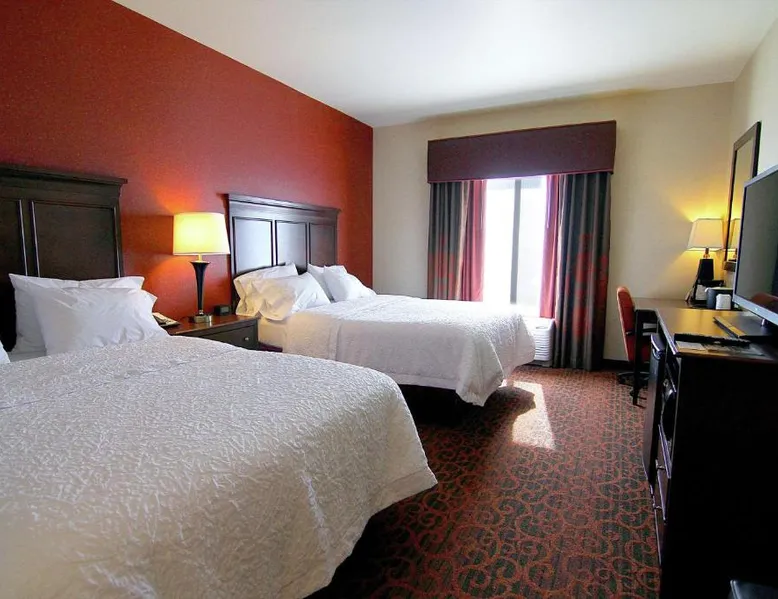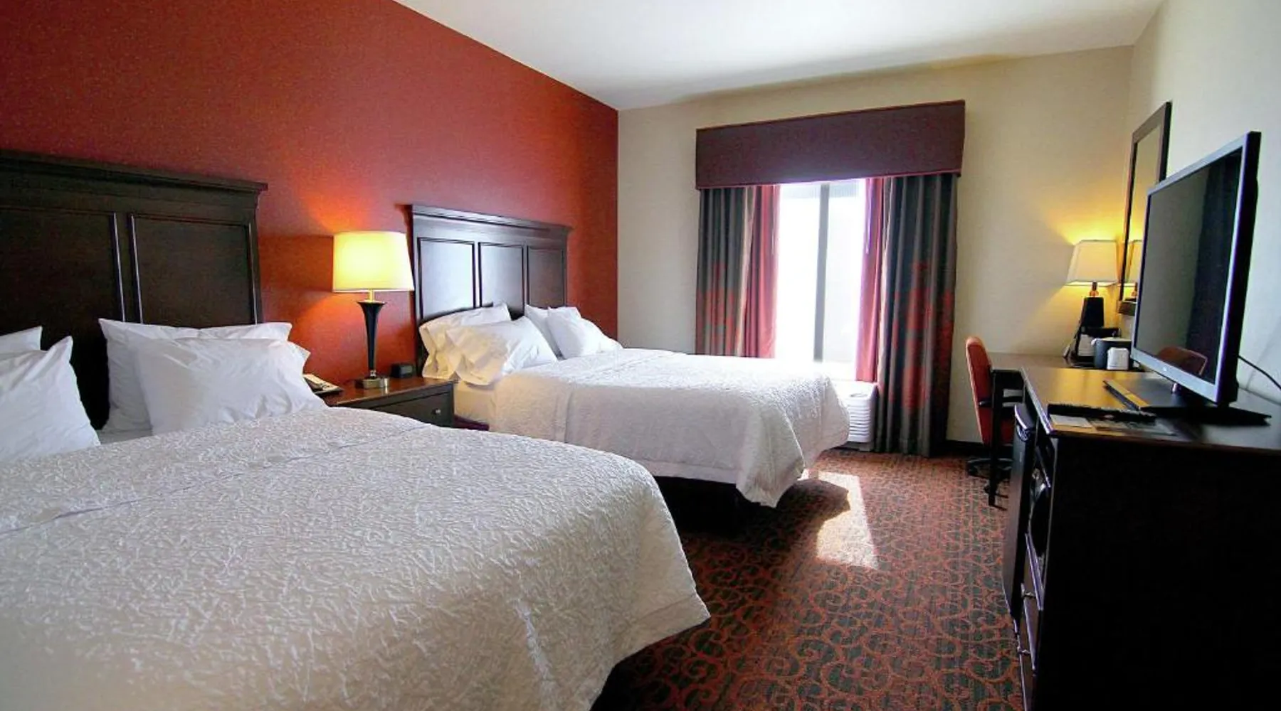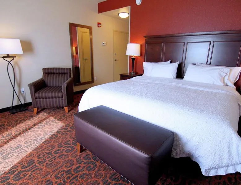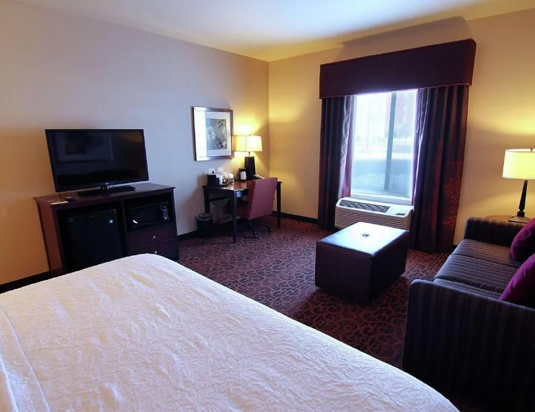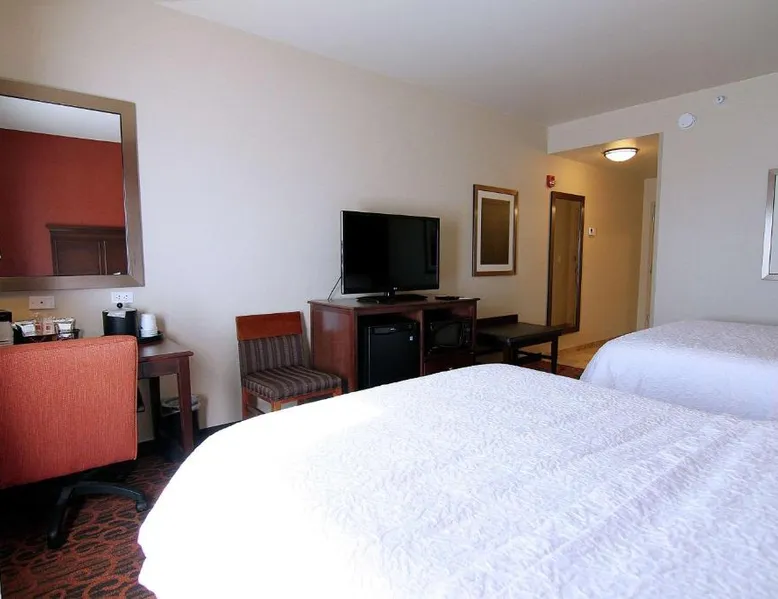 Comfortable Accommodations: Hampton Inn & Suites Grand Forks in Grand Forks offers family rooms with free WiFi, air-conditioning, and modern amenities. Guests enjoy free on-site parking, a fitness center, and an indoor swimming pool. Dining and Leisure: A continental buffet breakfast is served daily, featuring warm dishes, fresh pastries, and fruits. The hotel includes a hot tub, fitness room, and a business area. Additional amenities include a elevator, sofa bed, and a 24-hour front desk. Convenient Location: Located 6.8 mi from Grand Forks International Airport and 3.1 mi from the University of North Dakota, the hotel provides easy access to local attractions. Highly rated for its breakfast, room comfort, and cleanliness. A flat-screen cable TV and sofa bed are included in this room, along with a microwave and fridge. A private bathroom equipped with a hairdryer is also included.