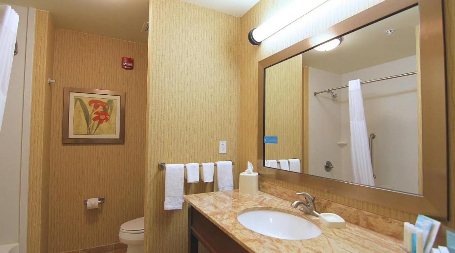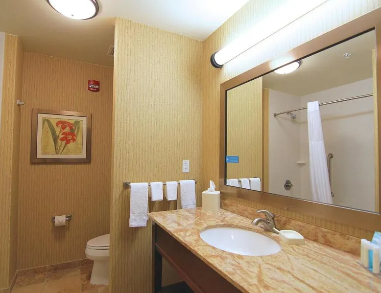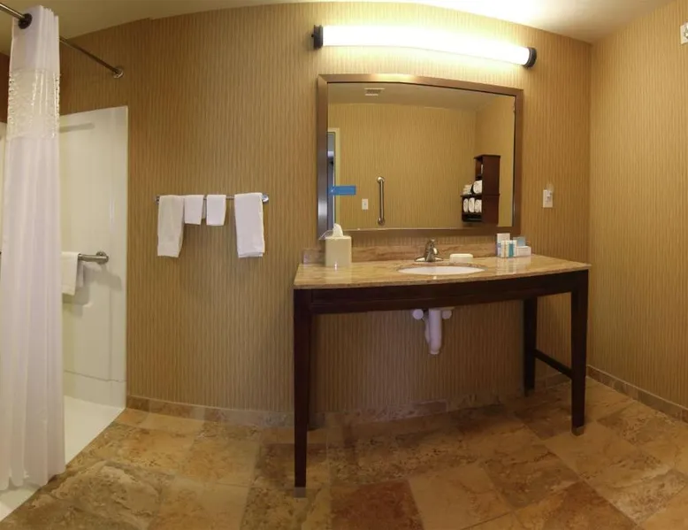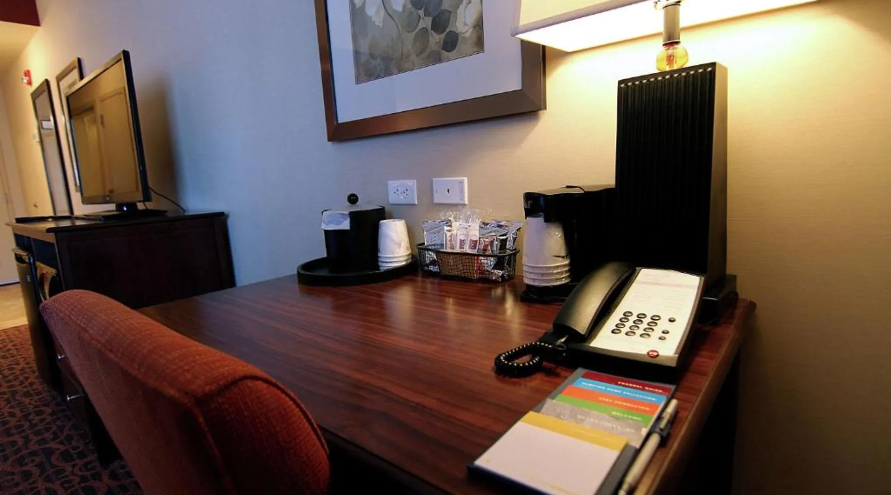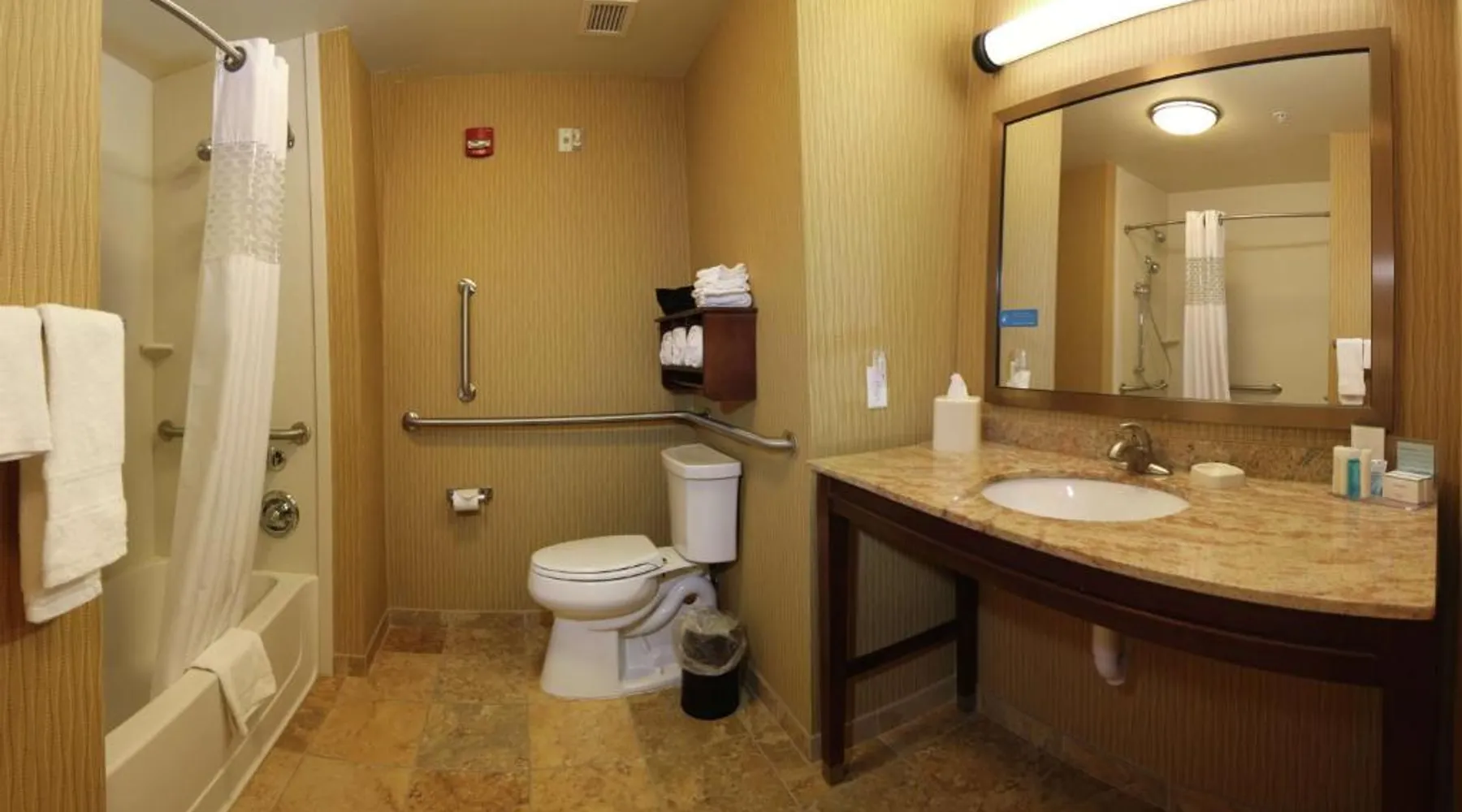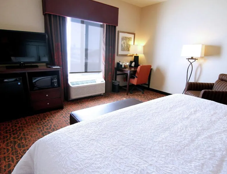 Comfortable Accommodations: Hampton Inn & Suites Grand Forks in Grand Forks offers family rooms with free WiFi, air-conditioning, and modern amenities. Guests enjoy free on-site parking, a fitness center, and an indoor swimming pool. Dining and Leisure: A continental buffet breakfast is served daily, featuring warm dishes, fresh pastries, and fruits. The hotel includes a hot tub, fitness room, and a business area. Additional amenities include a elevator, sofa bed, and a 24-hour front desk. Convenient Location: Located 6.8 mi from Grand Forks International Airport and 3.1 mi from the University of North Dakota, the hotel provides easy access to local attractions. Highly rated for its breakfast, room comfort, and cleanliness. A flat-screen cable TV and sofa bed are included in this room, along with a microwave and fridge. A private bathroom equipped with a hairdryer is also included.