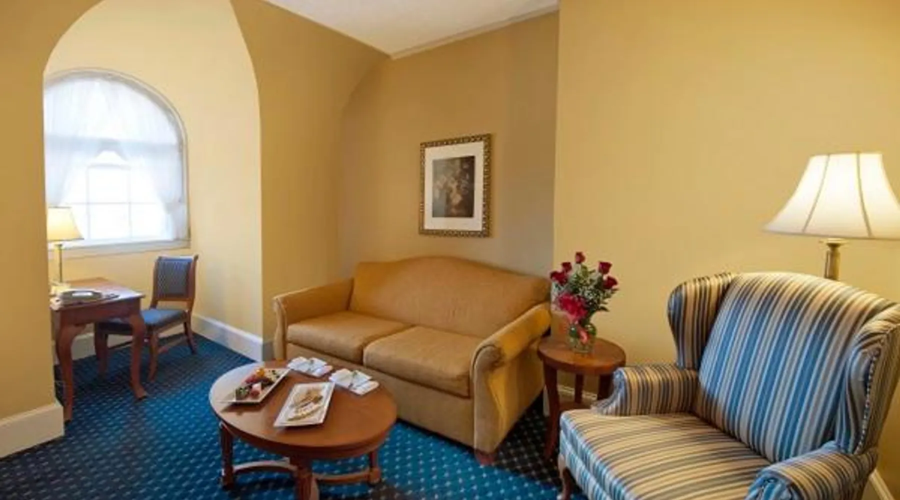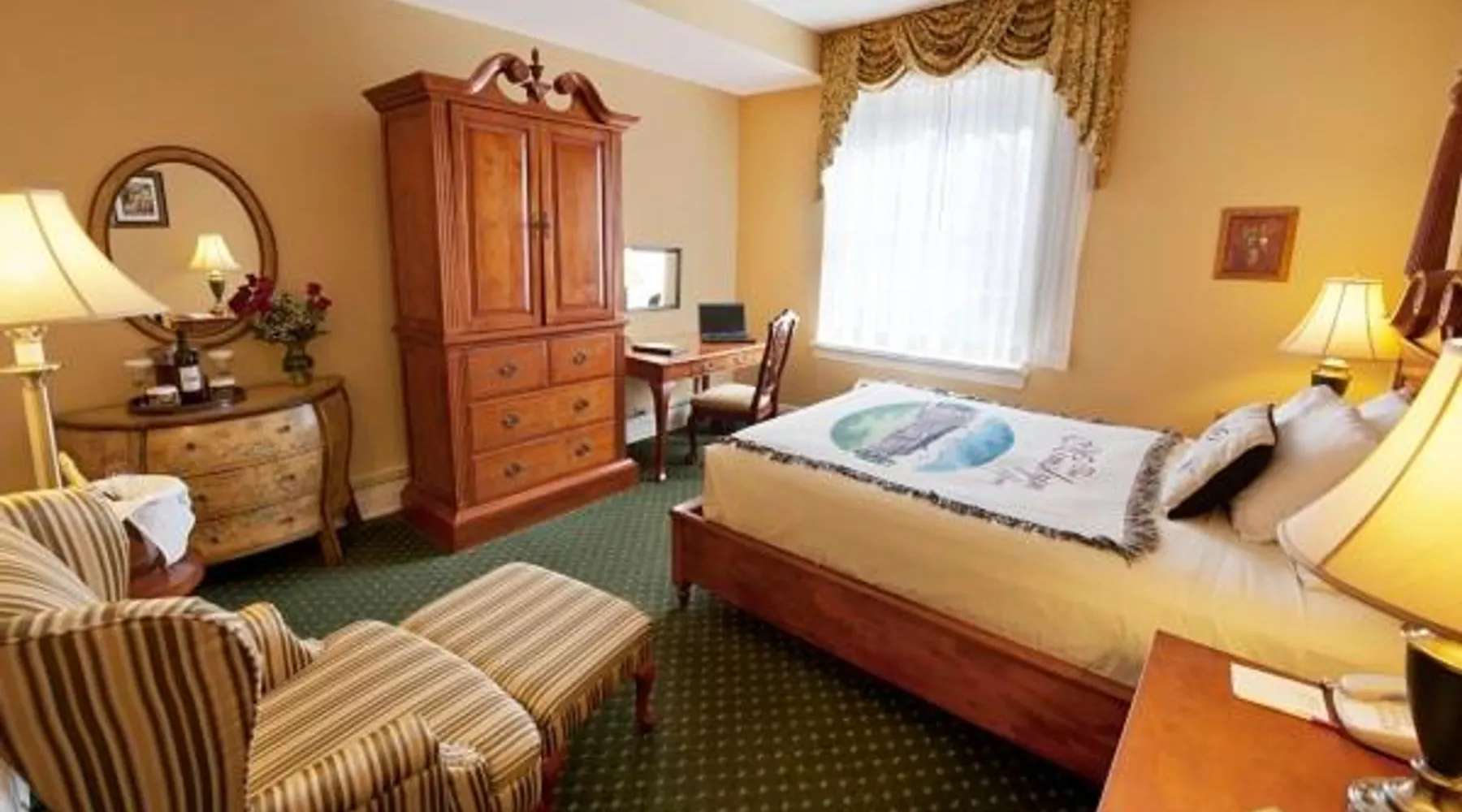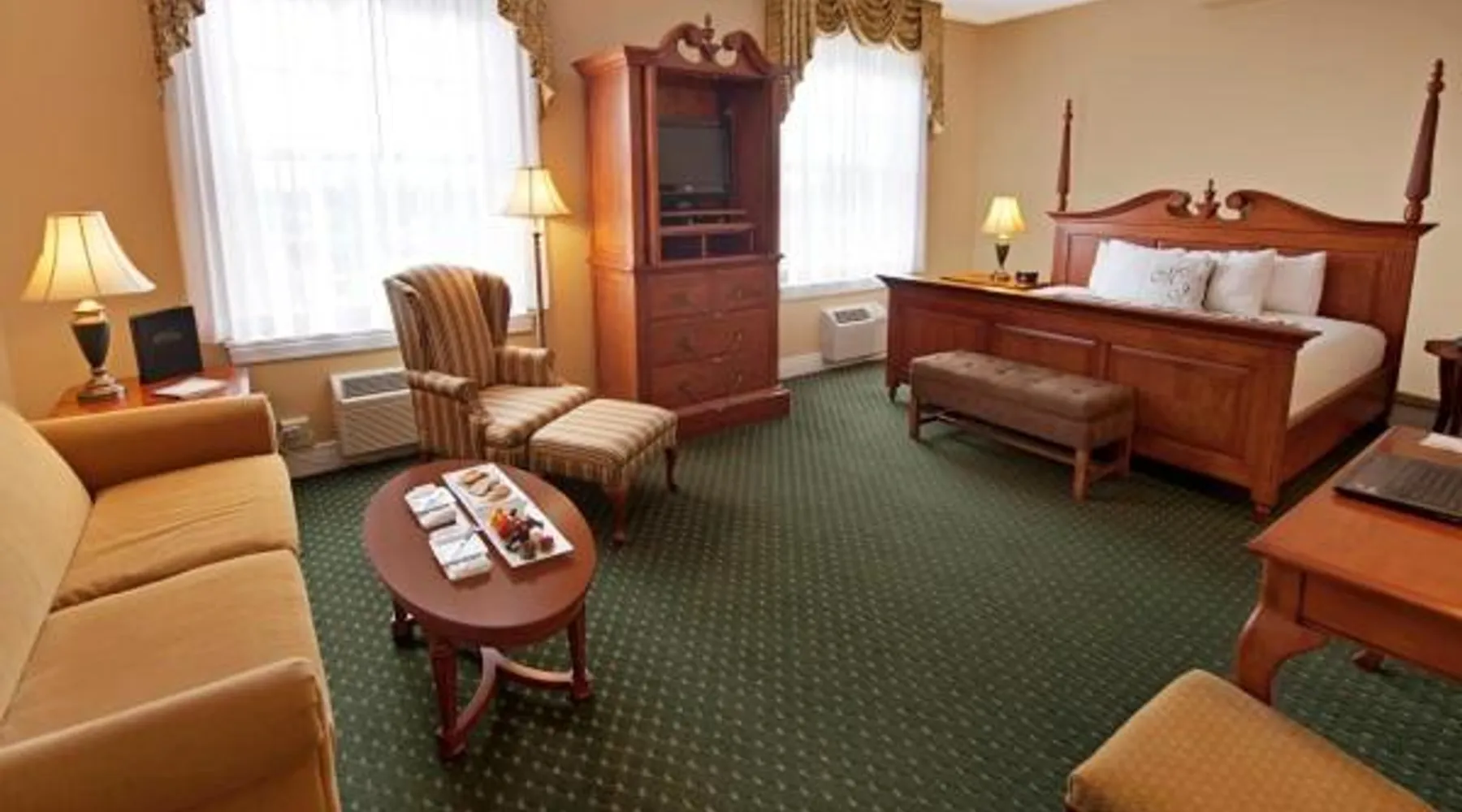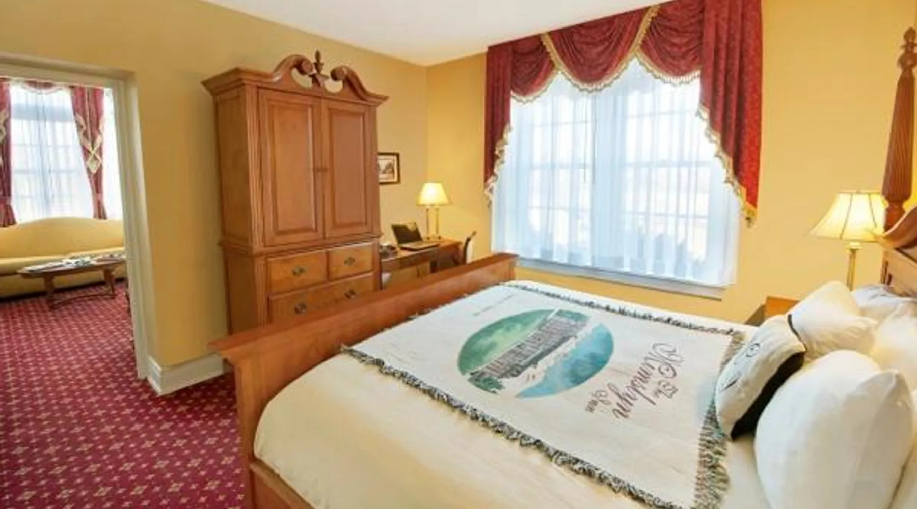 Comfortable Accommodations: The Mimslyn Inn in Luray offers family rooms with air-conditioning, private bathrooms, and modern amenities. Each room includes a work desk, sofa bed, and free toiletries. Exceptional Facilities: Guests can enjoy spa facilities, a saltwater swimming pool, fitness center, sun terrace, and lush garden. Additional amenities include a hot tub, sauna, and solarium. Dining Experience: The family-friendly restaurant serves American cuisine with brunch, lunch, dinner, and high tea. Menus cater to vegetarian, vegan, gluten-free, and dairy-free diets. Prime Location: Located 1.2 mi from Luray Caverns and a 9-minute walk to Trackside Theater. Nearby attractions include Pinnacles Viewpoint (14 mi) and Virginia Museum Of The Civil War (21 mi). Guests will have a special experience as the suite provides a fireplace. This air-conditioned suite includes a TV with cable channels and a private bathroom. The unit offers 2 beds.