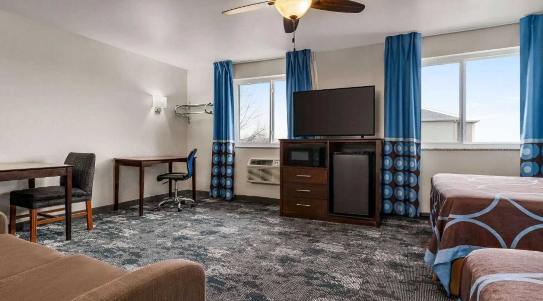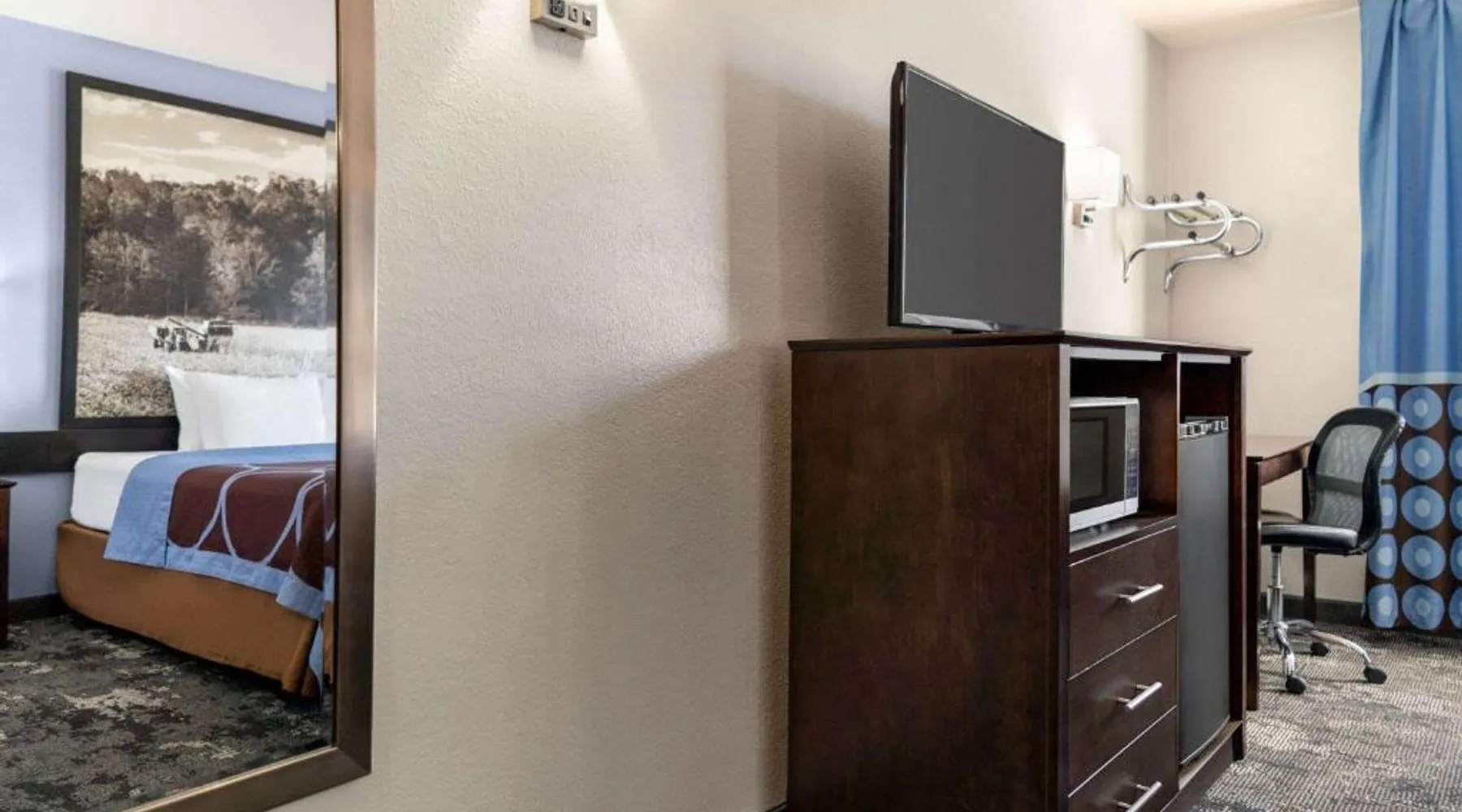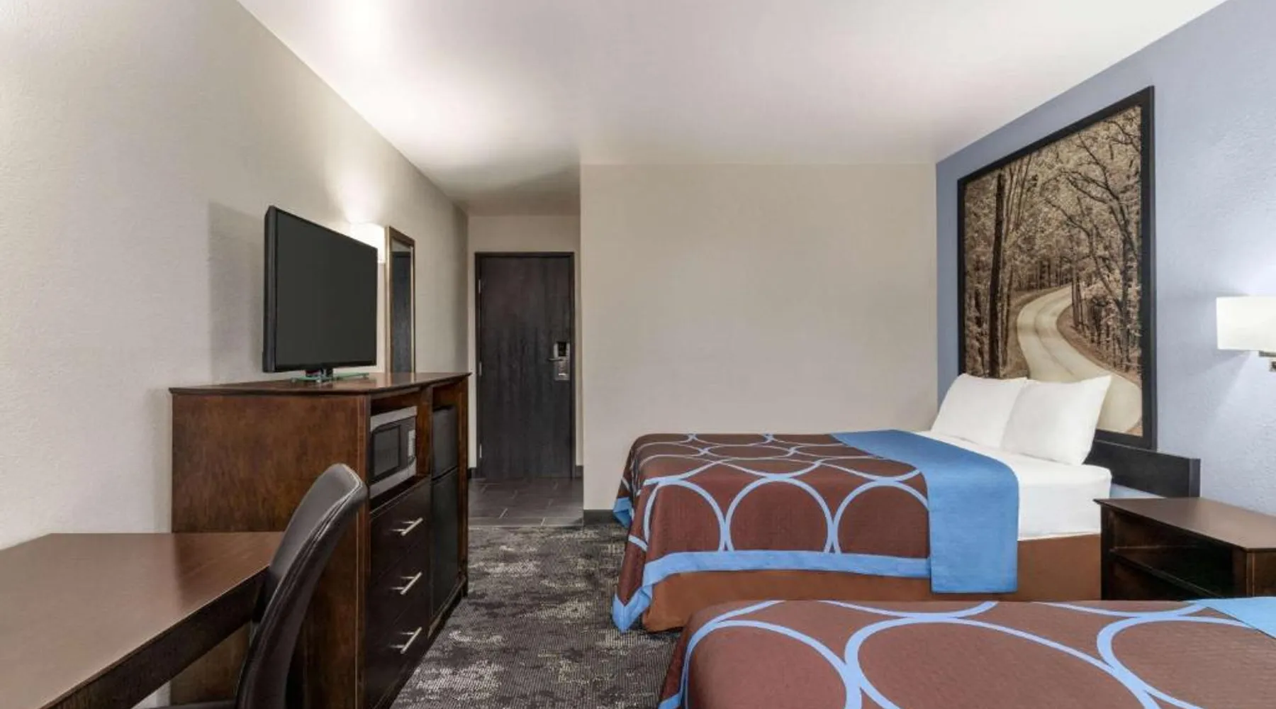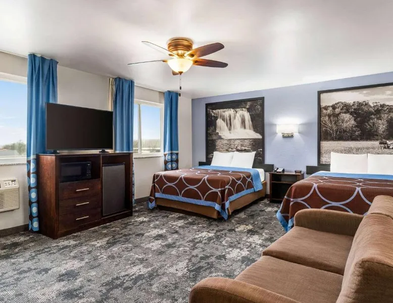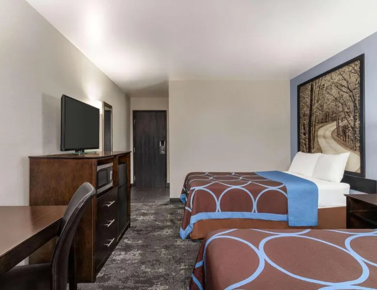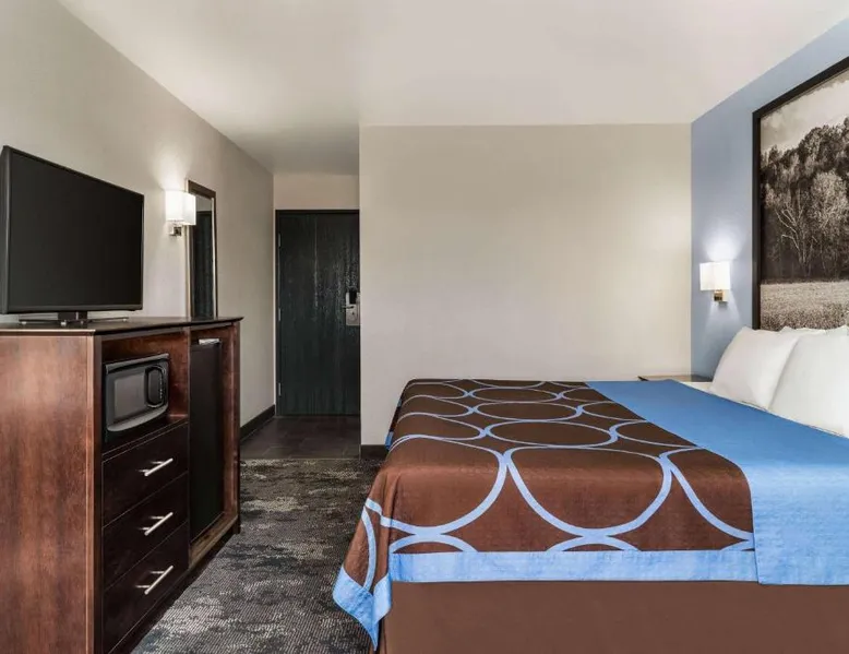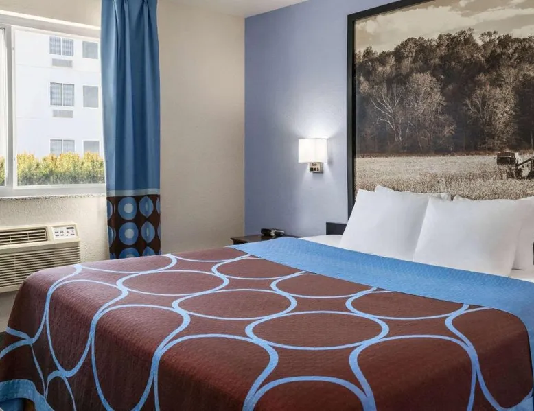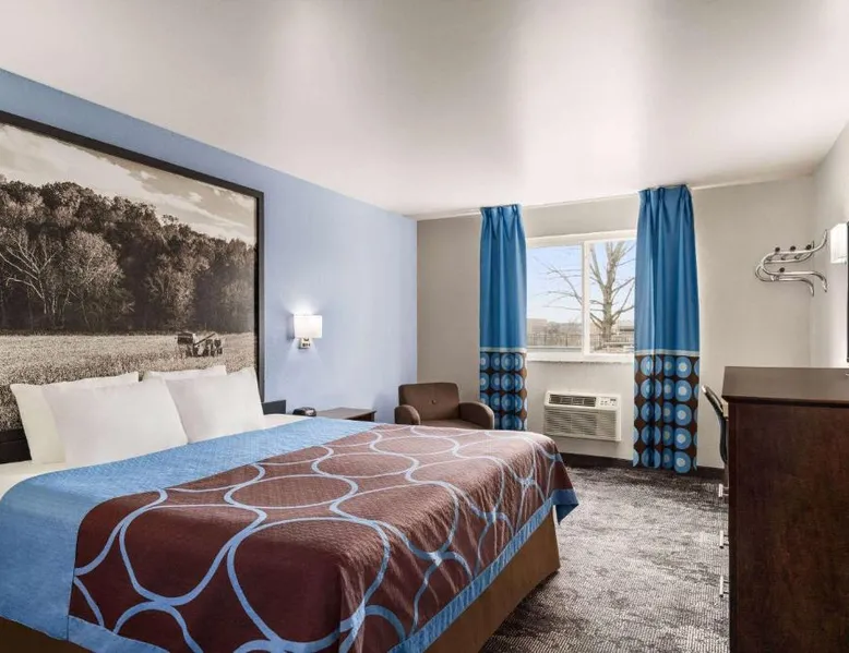 This Columbus, Indiana hotel is located next to Interstate 65. It features a daily continental breakfast and guest rooms with free Wi-Fi. The Edinburgh Outlet Mall and Camp Atterbury are 7.5 mi away from the motel. A cable TV is provided in each room at Super 8 Columbus. The traditionally styled rooms also include a microwave, fridge, and coffee-making facilities. Columbus Super 8 is 2.5 mi from Cummins, and 8.1 mi from Otter Creek Golf Course. Historic Nashville, Indiana is less than 30 minutes' drive away. This suite is air-conditioned and has a flat-screen TV with cable channels, a tea and coffee maker, a sofa and a tiled floor. The unit has 1 bed.