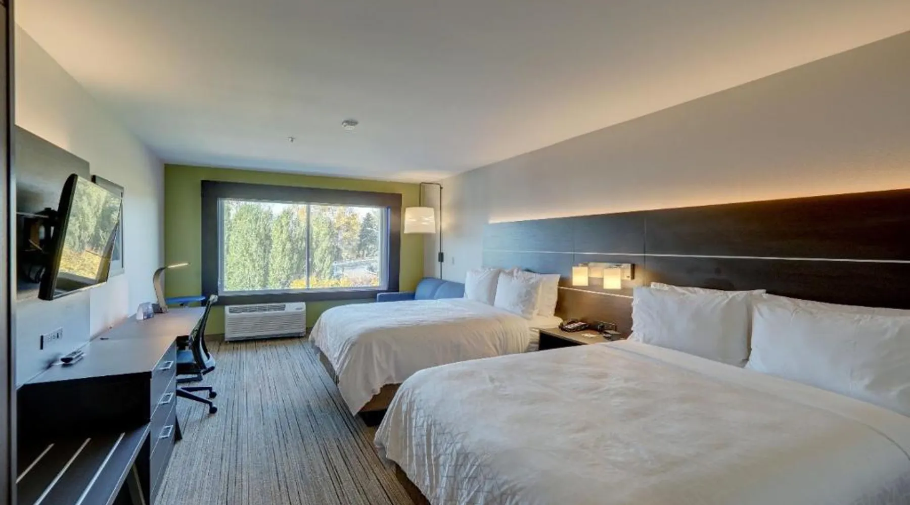 Comfortable Accommodations: Holiday Inn Express & Suites - Auburn Downtown by IHG in Auburn offers family rooms with air-conditioning, private bathrooms, and free WiFi. Each room includes a work desk, TV, and free toiletries. Exceptional Facilities: Guests can enjoy a fitness center, terrace, indoor swimming pool, and outdoor seating area. Additional amenities include a lounge, business area, and barbecue facilities. Delicious Breakfast: A continental, American, or buffet breakfast is served daily, featuring warm dishes, fresh pastries, pancakes, fruits, and juice. Prime Location: Located 13 mi from Seattle–Tacoma International Airport, the hotel is near attractions such as the Museum of Glass (14 mi) and Tiger Mountain State Forest (24 mi). Free on-site parking is available. The spacious double room provides air conditioning, a tea and coffee maker, as well as a private bathroom featuring a shower and a hairdryer. This double room features a carpeted floor, heating and a flat-screen TV with cable channels. The unit offers 1 bed.