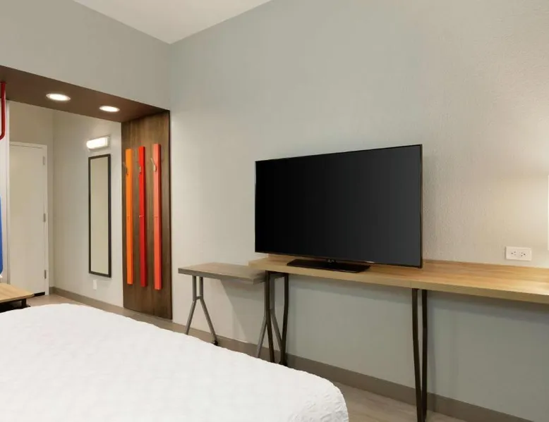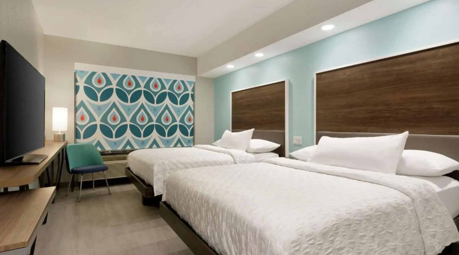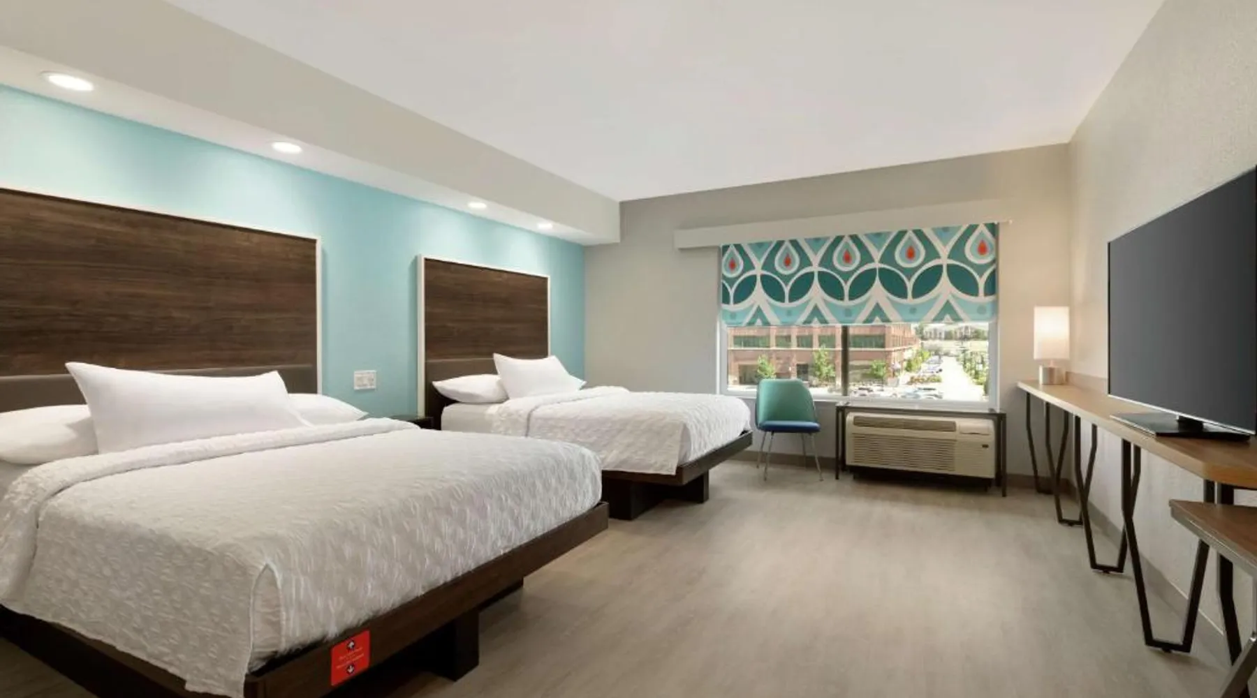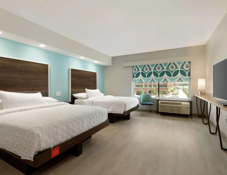 Comfortable Accommodations: Tru by Hilton St. Charles St. Louis in St. Charles offers air-conditioned rooms with free WiFi, work desks, and flat-screen TVs. Each room includes a refrigerator, hairdryer, and free toiletries. Facilities and Services: Guests can enjoy a fitness center, terrace, and free on-site private parking. The hotel provides a 24-hour front desk, minimarket, and elevator access. Dining Options: A continental breakfast is served daily. The property also features a restaurant, offering a variety of dining options. Location and Attractions: Located 9.9 mi from St. Louis Lambert International Airport, the hotel is near Hollywood Casino St. Louis (5 mi) and St. Louis Gateway Arch (22 mi). Other attractions include Forest Park and St. Louis Zoo, each 18 mi away. This quadruple room features air conditioning, heating and a TV with cable channels. The unit offers 2 beds.