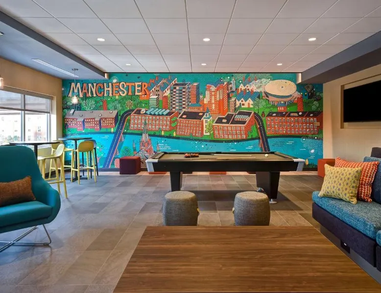 Comfortable Accommodations: Tru By Hilton Manchester Downtown in Manchester offers family rooms with air-conditioning, free WiFi, and amenities such as a work desk, refrigerator, and TV. Each room includes a shower, free toiletries, and a hairdryer. Facilities and Services: Guests can enjoy a fitness center, lounge, and games room. Additional facilities include a minimarket, electric vehicle charging station, business area, and outdoor seating. The hotel provides a 24-hour front desk, elevator, and paid on-site private parking. Dining Options: A buffet breakfast is available with full English or Irish options. Breakfast includes warm dishes, juice, fresh pastries, pancakes, cheese, and fruits. Location and Attractions: Located 5 mi from Manchester Boston Regional Airport, the hotel is near Mall Of New Hampshire (4.3 mi), State Park (2.1 mi), and an ice-skating rink. Guests appreciate the property staff and service support, room cleanliness, and convenient location. This quadruple room has air conditioning, heating and a TV. The unit has 2 beds.