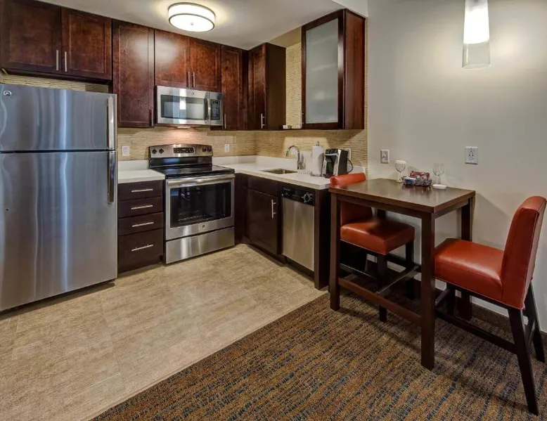 Comfortable Accommodations: Residence Inn by Marriott Kansas City Downtown/Convention Center in Kansas City offers family rooms with air-conditioning, private bathrooms, and kitchen facilities. Each room includes a work desk, sofa bed, and city views. Exceptional Facilities: Guests enjoy a fitness center, indoor swimming pool, and free bicycles. The hotel provides free WiFi, a restaurant serving American cuisine, and a bar. Additional amenities include a lounge, 24-hour front desk, and paid on-site private parking. Prime Location: Located 16 mi from Kansas City International Airport, the hotel is a short walk from T-Mobile Center and Kansas City Convention Center. Nearby attractions include the National World War I Museum and Legoland Discovery Center. An ice-skating rink is also in the surroundings. Guest Satisfaction: Highly rated for its convenient location, room comfort, and breakfast provided by the property. Featuring free toiletries, this studio includes a private bathroom with a shower and a hairdryer. In the kitchen, guests will find a stovetop, a refrigerator, a dishwasher and a microwave. The spacious air-conditioned studio features a flat-screen TV with cable channels, a tea and coffee maker, a seating area and a dining area. The unit has 2 beds.