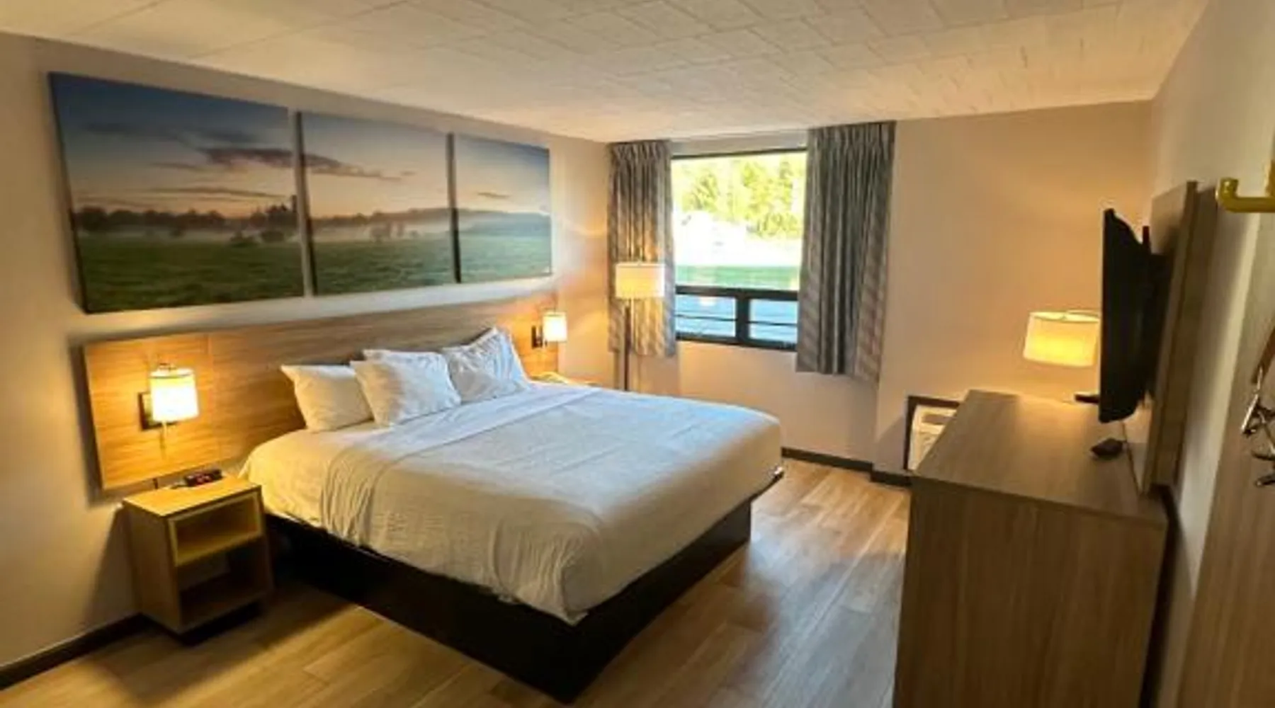 Located in Liberty, New York, just 10 miles from Monticello Raceway Casino, this hotel serves a daily grab and go breakfast. Two pools are available on site. All rooms include free Wi-Fi. A flat-screen TV with cable is featured in all guest rooms at Days Inn Liberty. Each room is equipped with coffee-making facilities and a small refrigerator. Featuring a year-round indoor pool and a seasonal outdoor pool, Liberty Days Inn also offers a fitness center. Guests have access to coin-operated laundry facilities. Bethel Wood Performing Arts Center is 15 miles from this hotel. Liberty Diner & Restaurant is 3 minutes’ walk away. The triple room provides air conditioning, a washing machine, as well as a private bathroom featuring a bath and a shower. The triple room offers a tea and coffee maker, a seating area, tumble dryer, heating, as well as a TV with cable channels.