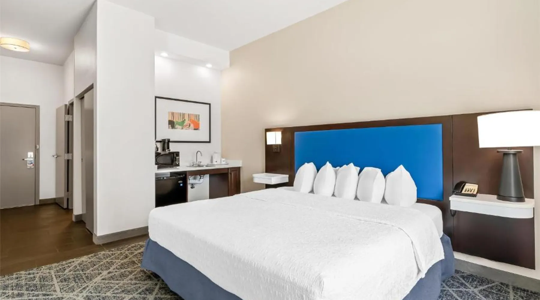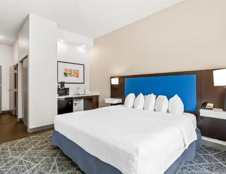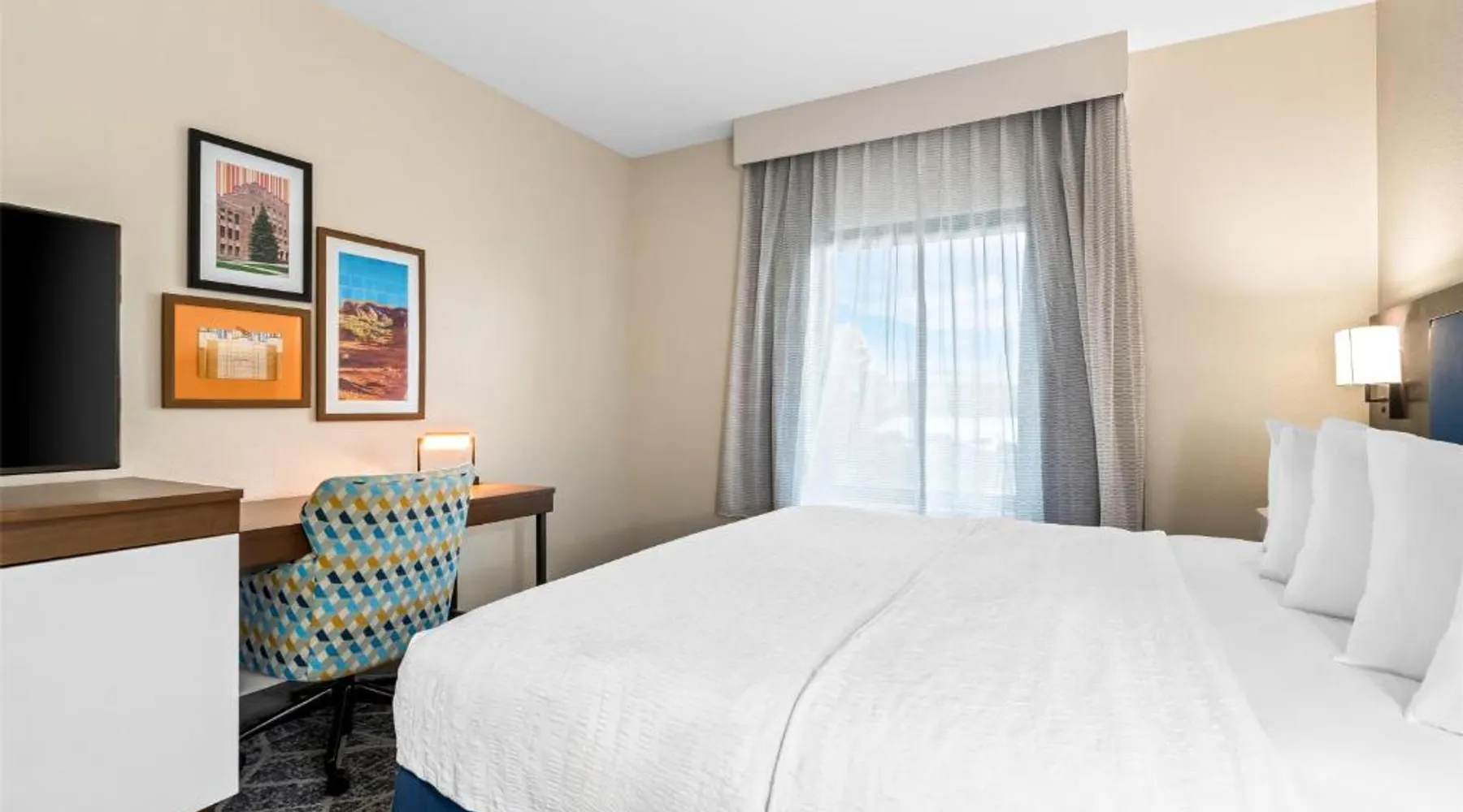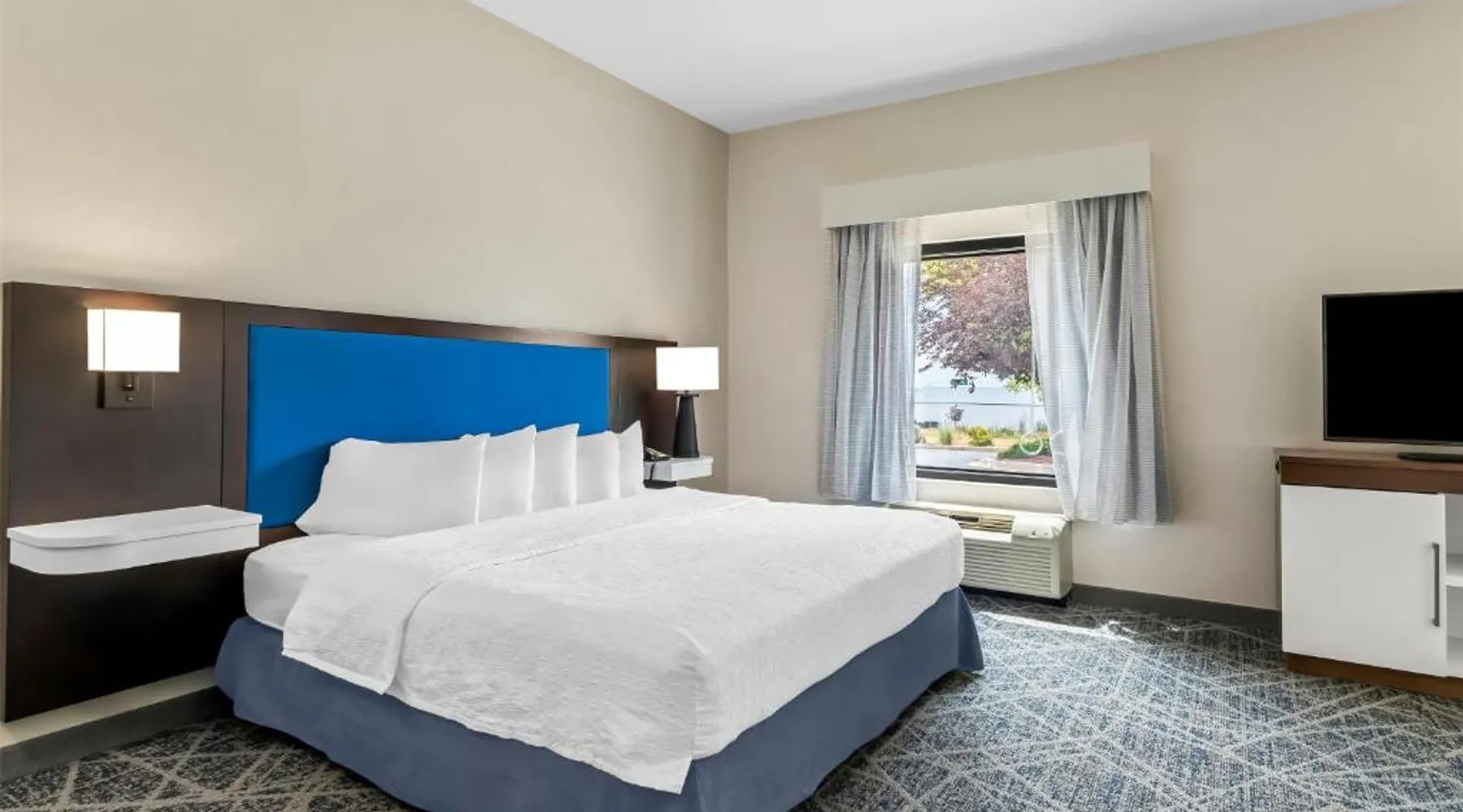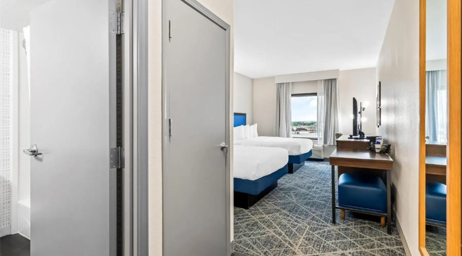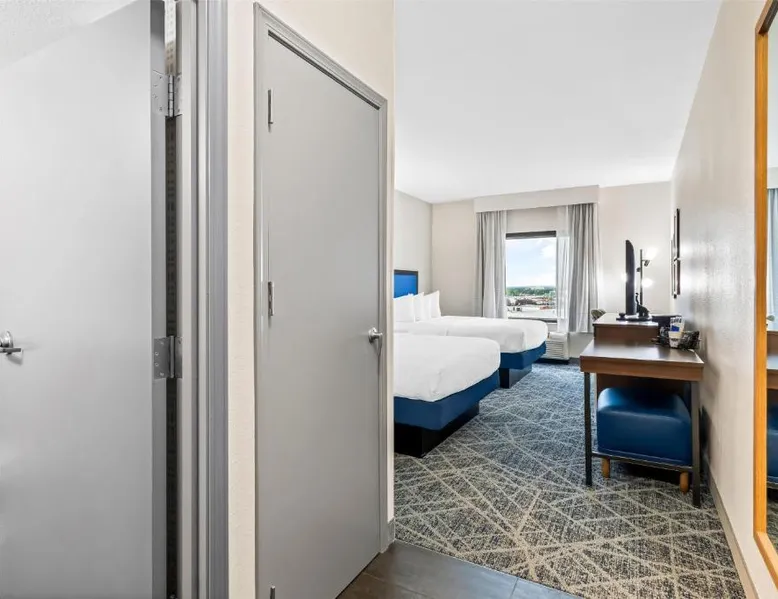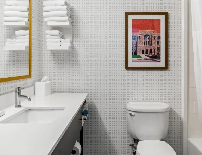Comfortable Accommodations: Hampton Inn Laramie in Laramie offers family rooms with free WiFi, air-conditioning, and modern amenities. Each room includes a tea and coffee maker, hairdryer, refrigerator, microwave, shower, and TV. Leisure Facilities: Guests can enjoy an indoor swimming pool, fitness center, and hot tub. The property features a fitness room, elevator, outdoor seating area, and a minimarket. Free on-site parking is available. Convenient Location: Located 9.3 mi from Laramie Regional Airport and 1.2 mi from War Memorial Stadium, the hotel is near an ice-skating rink. The surrounding area offers various attractions. Guest Services: The hotel provides a 24-hour front desk, daily housekeeping, room service, and a daily breakfast. Guests appreciate the attentive staff, room cleanliness, and the quality of the breakfast provided by the property. This room features a flat-screen TV, a work desk and tea and coffee-making facilities.