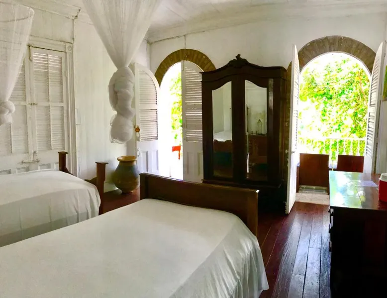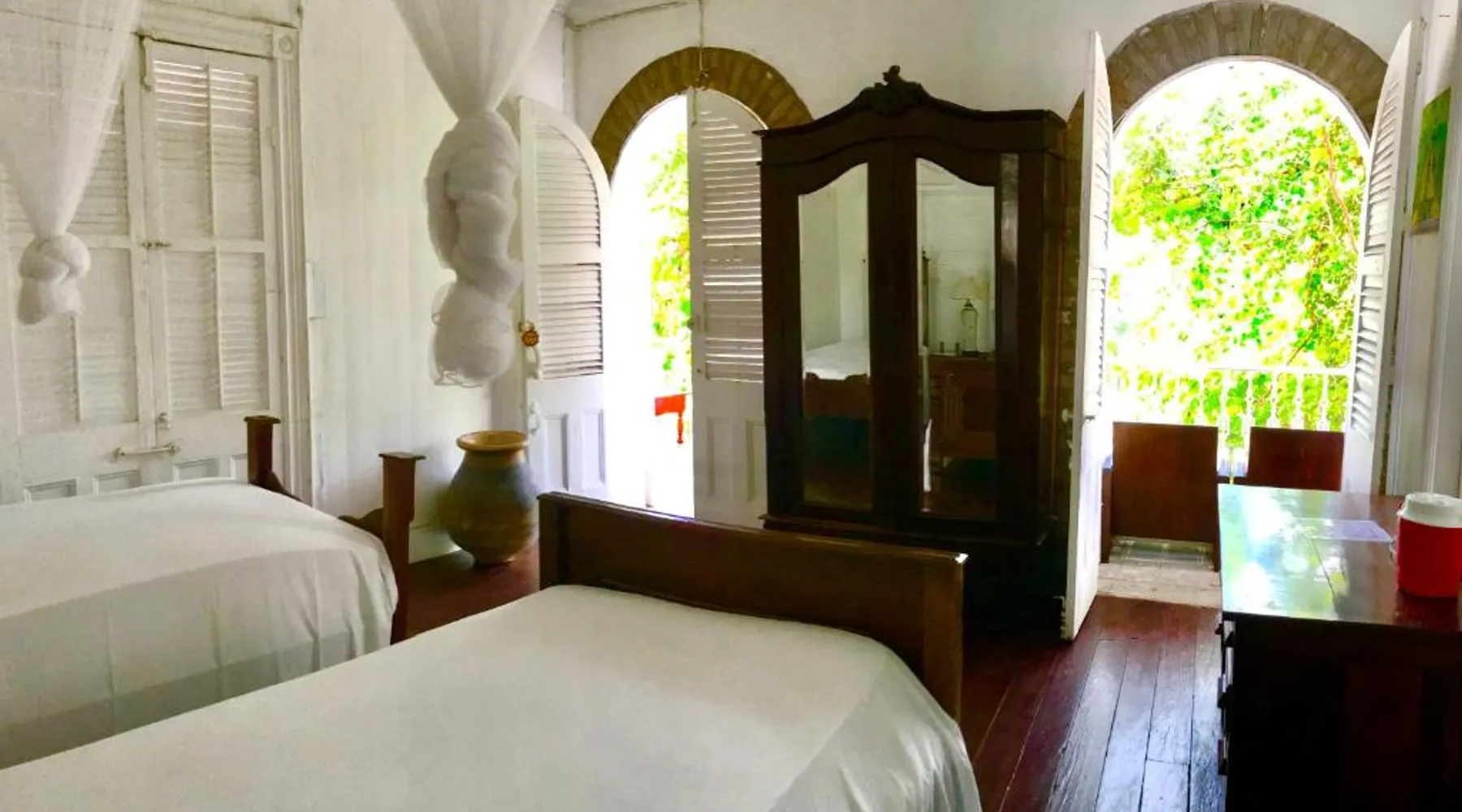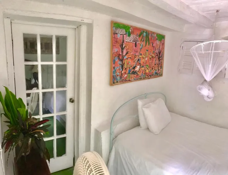 Beachfront Location: Hotel Florita in Jacmel offers direct beachfront access with stunning sea views. Guests can relax on the sun terrace or explore the lush garden. Comfortable Accommodations: Rooms feature private bathrooms, balconies, and modern amenities. Family rooms and ground-floor units provide additional comfort. Dining and Leisure: The on-site restaurant serves a variety of cuisines, complemented by a bar. Free WiFi is available throughout the property. Convenient Services: Private check-in and check-out, a 24-hour front desk, and concierge service ensure a smooth stay. Additional facilities include a coffee shop, outdoor seating, and live music. Nearby Attractions: La Co New York Beach is a 2-minute walk away, while Toussaint Louverture International Airport is 56 mi from the hotel. One king bed and one twin bed. Very roomy with space for a whole family. Private balcony looking down on pedestrian street.