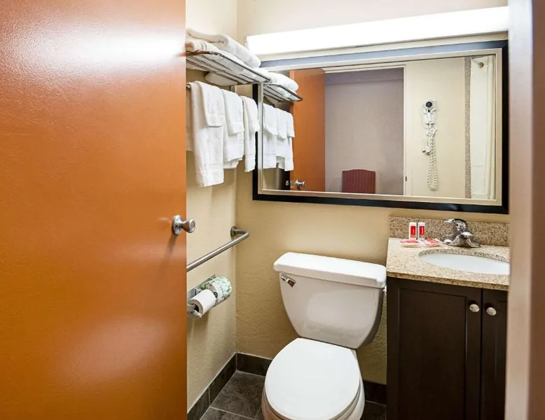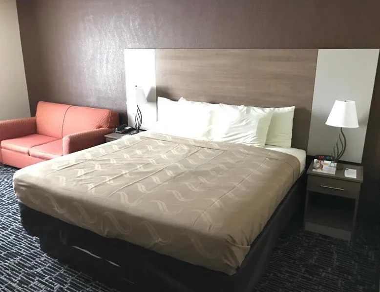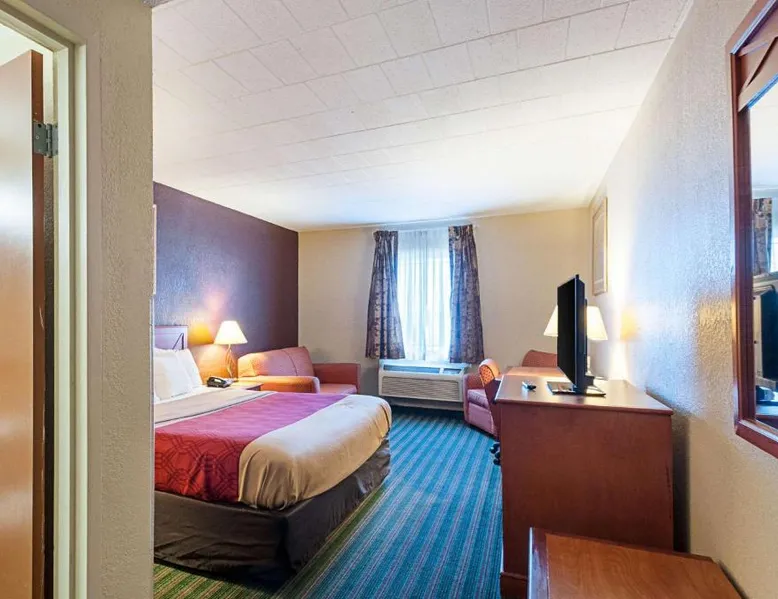Comfortable Accommodations: Quality Inn Near Pimlico Racetrack in Baltimore offers 2-star rooms with air-conditioning, free WiFi, and a fitness center. Each room includes a tea and coffee maker, hairdryer, work desk, seating area, and TV. Convenient Facilities: Guests benefit from a 24-hour front desk, daily housekeeping service, and free on-site parking. Additional amenities include air-conditioning, ensuring a pleasant stay. Prime Location: Located 15 mi from Baltimore - Washington International Airport, the inn is close to attractions such as Baltimore Zoo (4.3 mi), Johns Hopkins University (5 mi), and The Walters Art Museum (6.2 mi). This room features a cable TV, refrigerator and microwave.