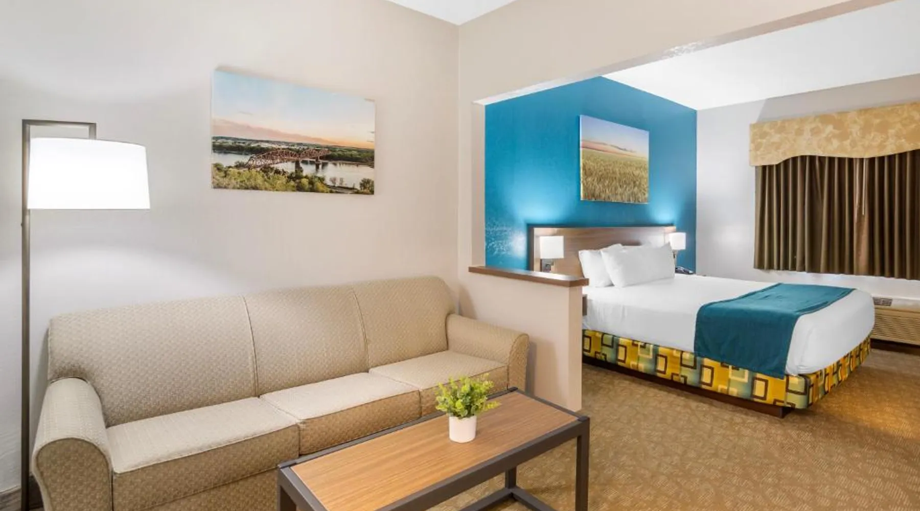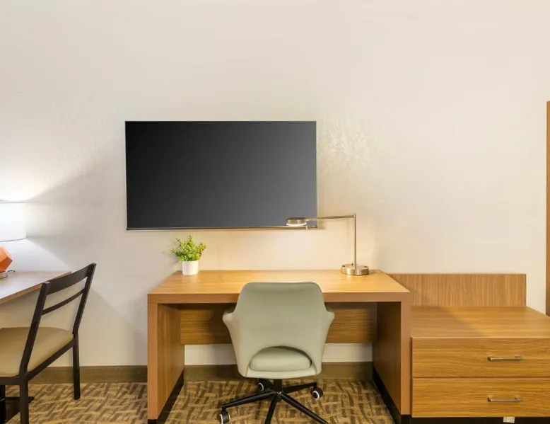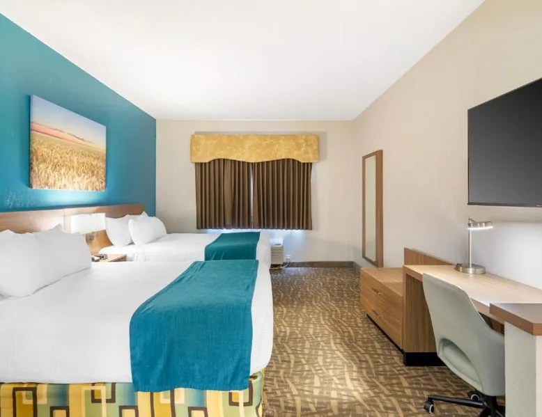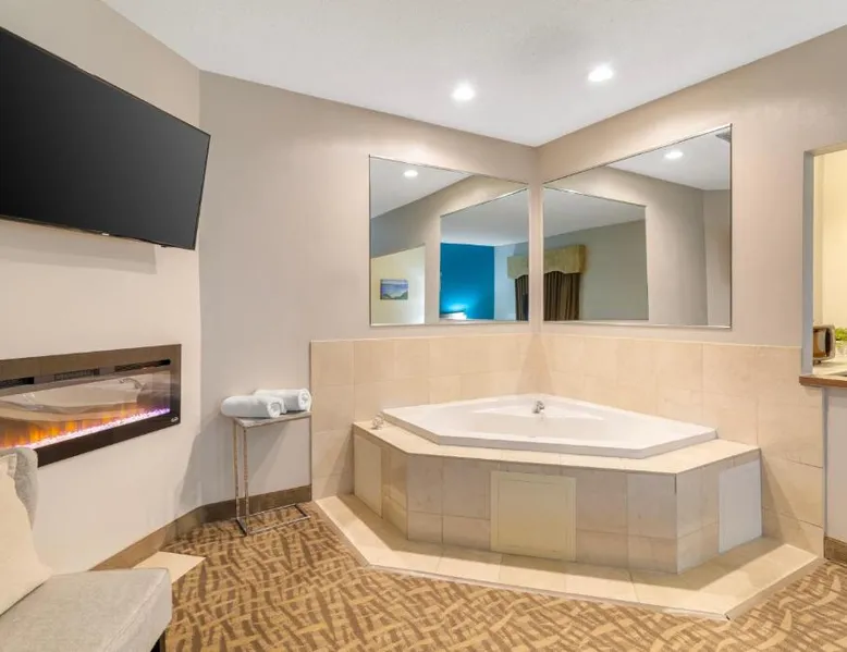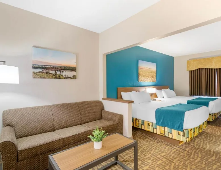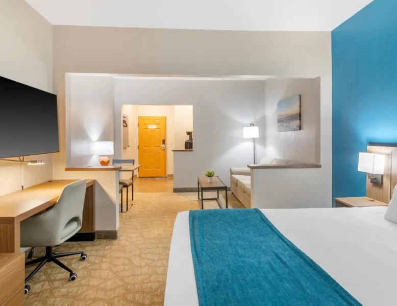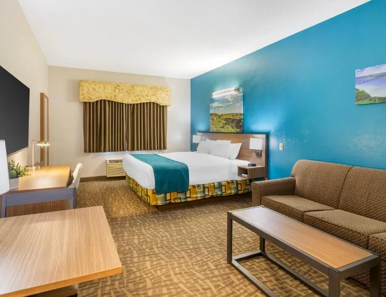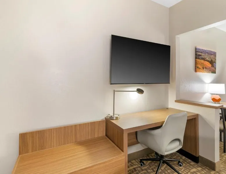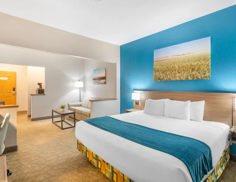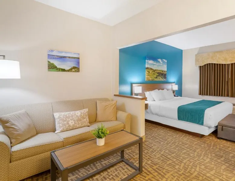 Comfortable Accommodations: EverSpring Suites in Bismarck offers comfortable rooms with air-conditioning, private bathrooms, and city views. Each room includes a sofa bed, work desk, and free WiFi. Relaxing Facilities: Guests can enjoy a spa and wellness center, indoor swimming pool, and hot tub. Additional amenities include a bar, fitness center, and free on-site private parking. Convenient Location: Located 1.9 mi from Bismarck Municipal Airport, the hotel is a 17-minute walk from Dakota Zoo. Nearby attractions include North Dakota State Capitol and Bismarck State College, each 2.5 mi away. Guest Satisfaction: Highly rated for its attentive staff, room cleanliness, and comfortable beds. Boasting a flat-screen TV with cable, this suite is equipped with tea and coffee-making facilities, a fridge and microwave.