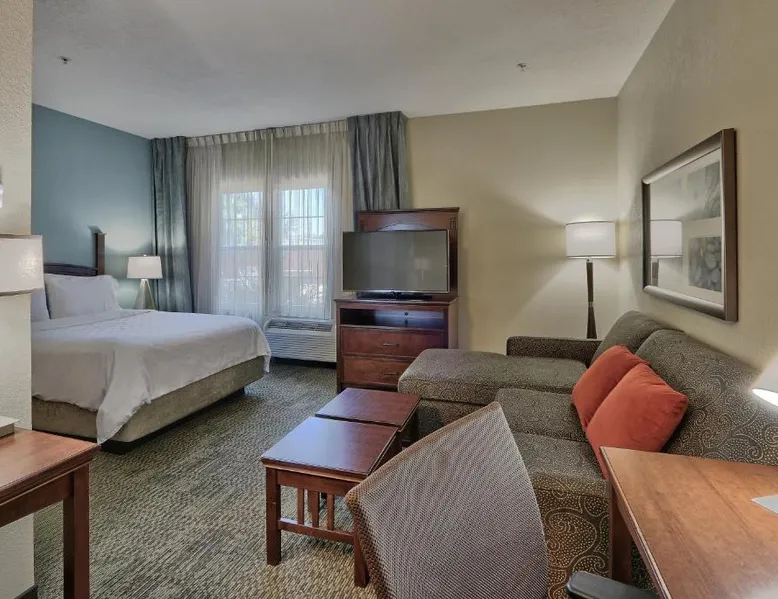 Comfortable Accommodations: Staybridge Suites Albuquerque North by IHG in Albuquerque offers comfortable rooms with air-conditioning, kitchenettes, private bathrooms, and free WiFi. Each room includes a work desk, sofa bed, and modern amenities. Relaxing Facilities: Guests can enjoy a spa and wellness center, indoor swimming pool, and hot tub. Additional facilities include a fitness room, lounge, outdoor fireplace, and outdoor seating area. Free on-site parking is available. Convenient Location: Located 9.3 mi from Albuquerque International Sunport, the hotel is near attractions such as Cliff's Amusement Park (3.7 mi) and the New Mexico Museum of Natural History and Science (9.9 mi). Free continental breakfast is provided by the property. Exceptional Service: Highly rated for its attentive staff and excellent service support, the hotel offers a 24-hour front desk, express check-in and check-out, and multilingual reception staff. Bed type preference cannot be guaranteed as it will be allocated upon arrival based on availability.