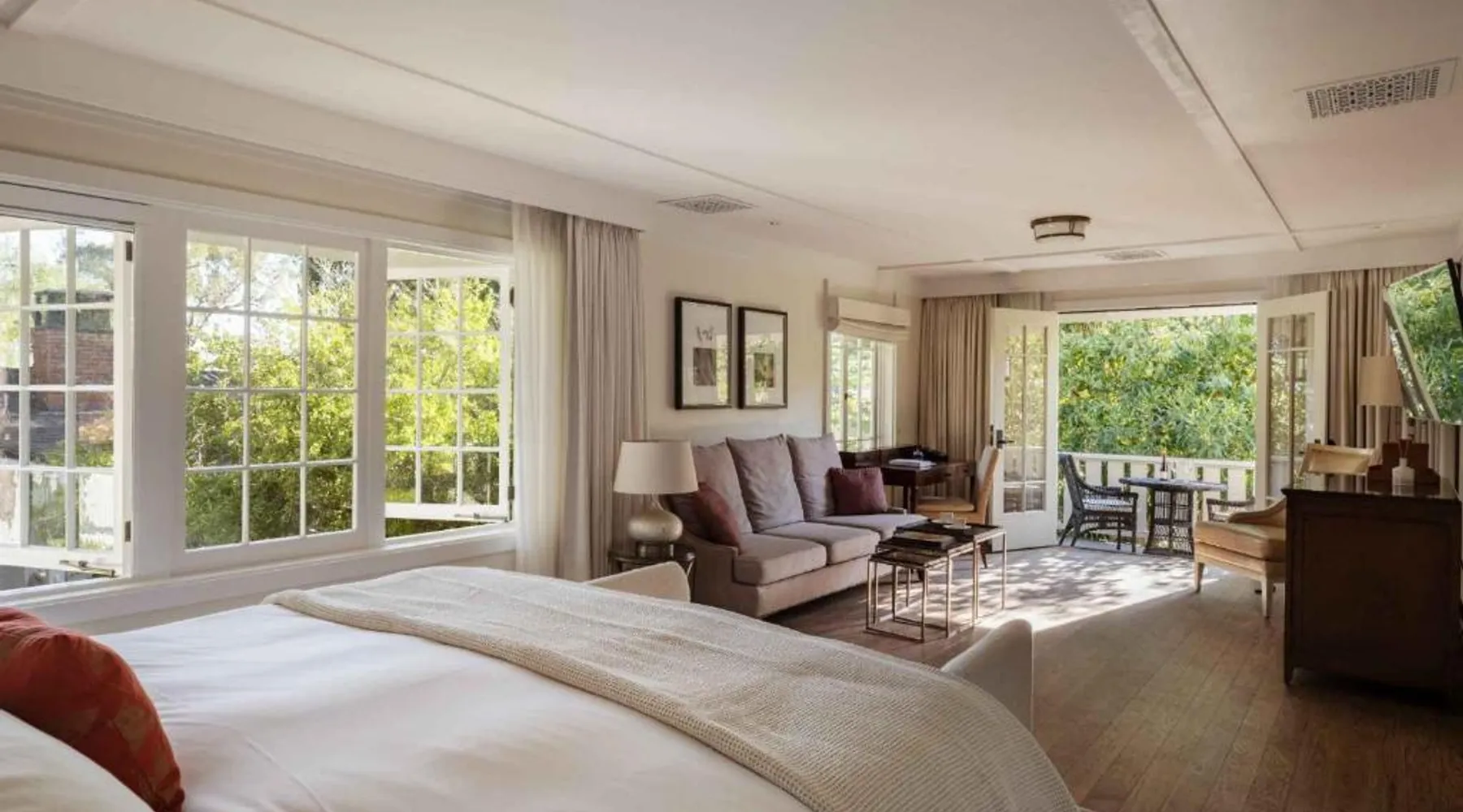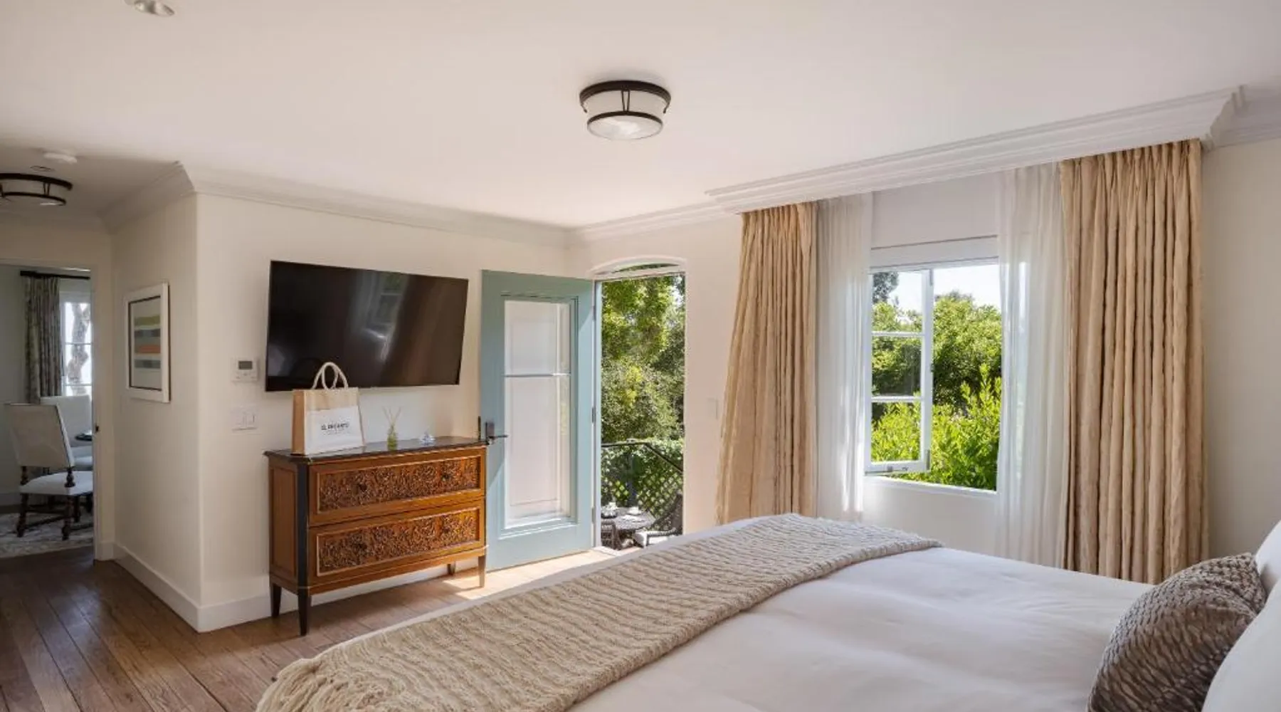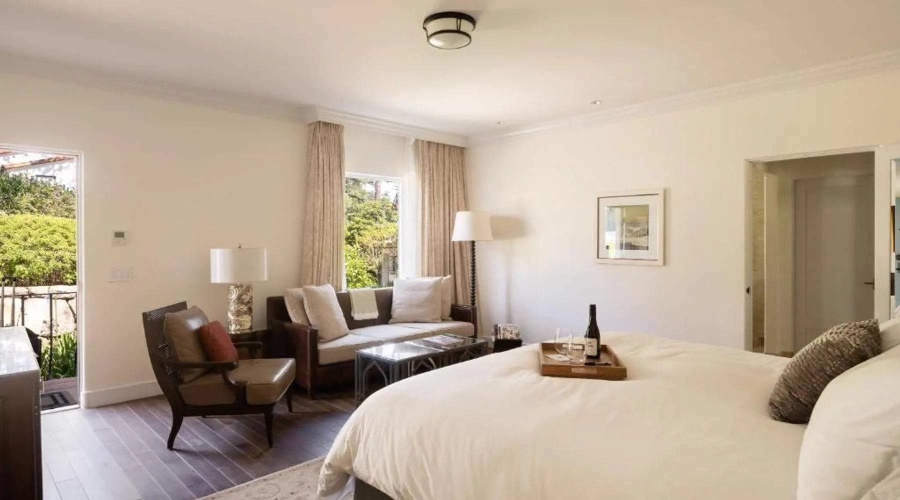 Perched above the Pacific with sweeping ocean vistas, El Encanto is a serene boutique retreat just five minutes from central Santa Barbara. This iconic hillside hideaway features an outdoor pool, full-service spa, and a locally inspired restaurant and bar. Each spacious guest room includes complimentary Wi-Fi, a flat-screen satellite TV, mini-bar, fireplace, and a cozy sitting area overlooking lush gardens. Guests can stay active in the modern fitness center or take advantage of the 24-hour front desk and business services. El Encanto offers convenient access to local attractions, including the Santa Barbara Mission and Botanical Gardens—both just two miles away. The Santa Barbara Municipal Golf Course is a 10-minute drive. The spacious triple room provides air conditioning, a tea and coffee maker, a balcony with garden views as well as a private bathroom featuring a bath. The unit offers 1 bed.