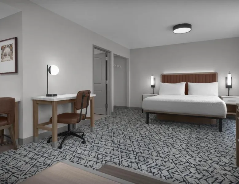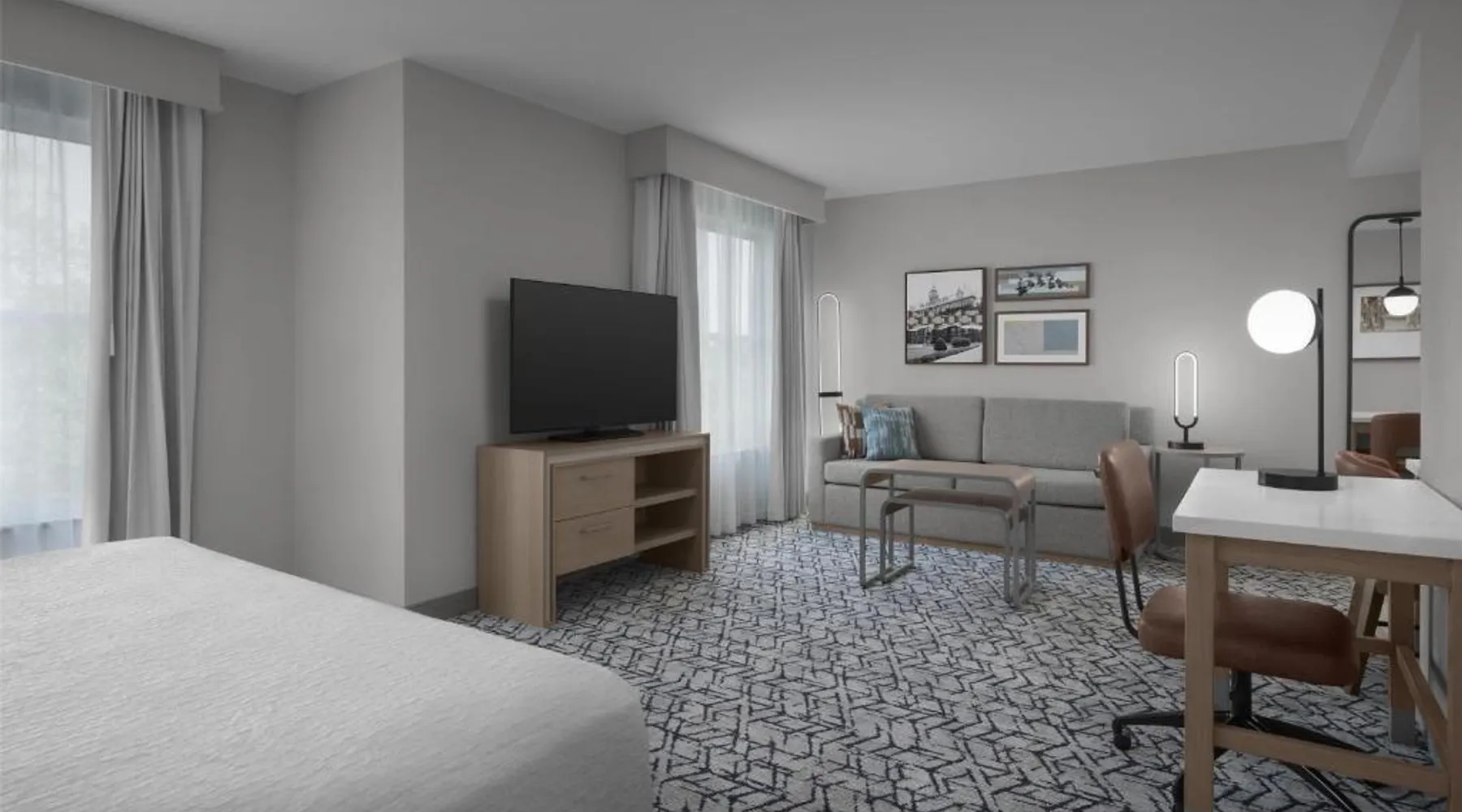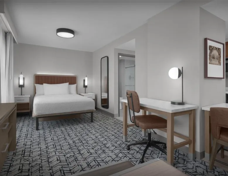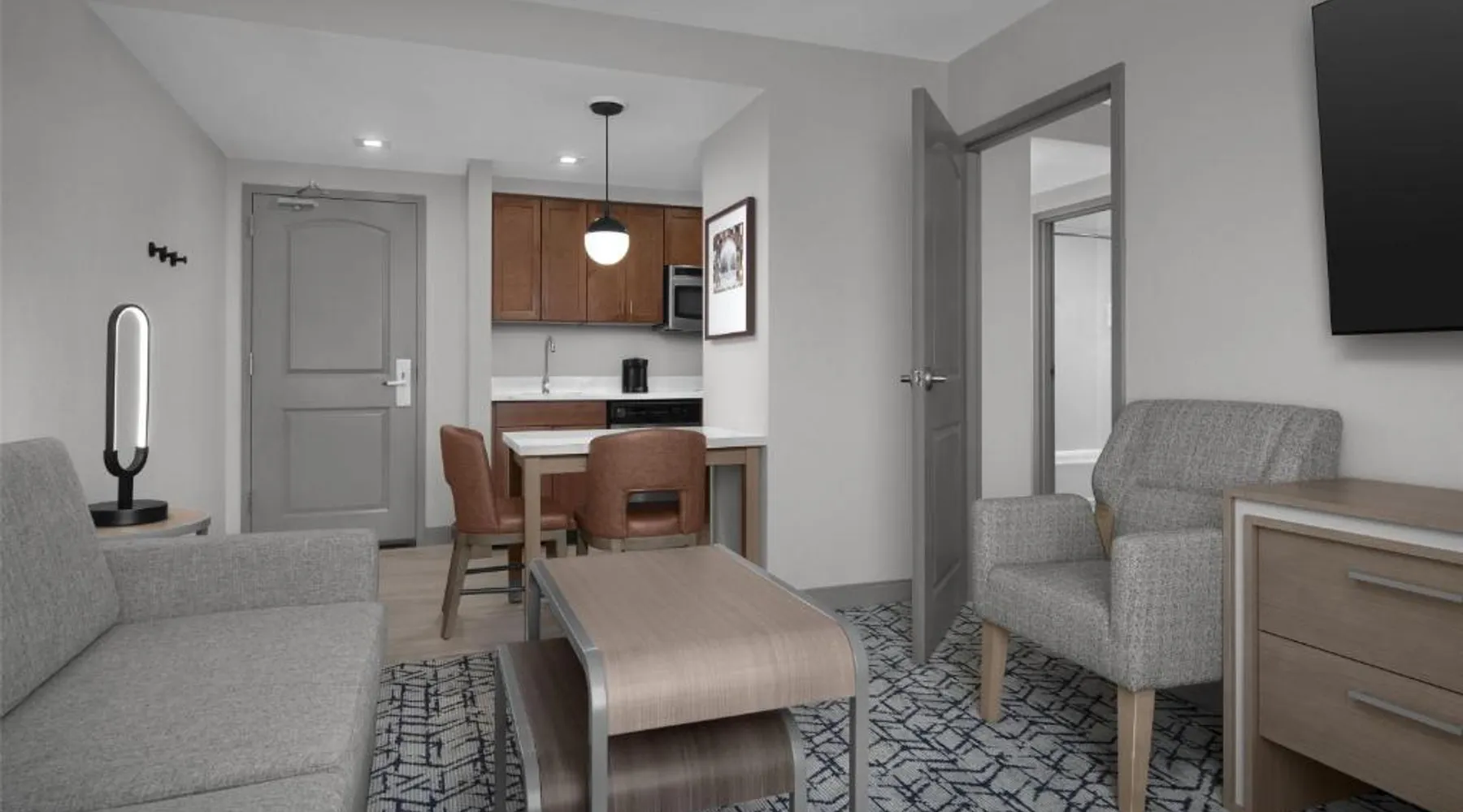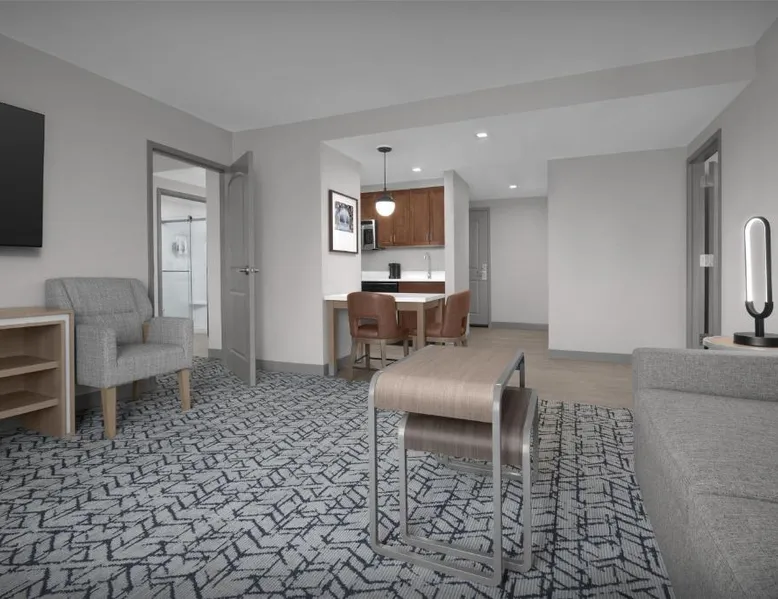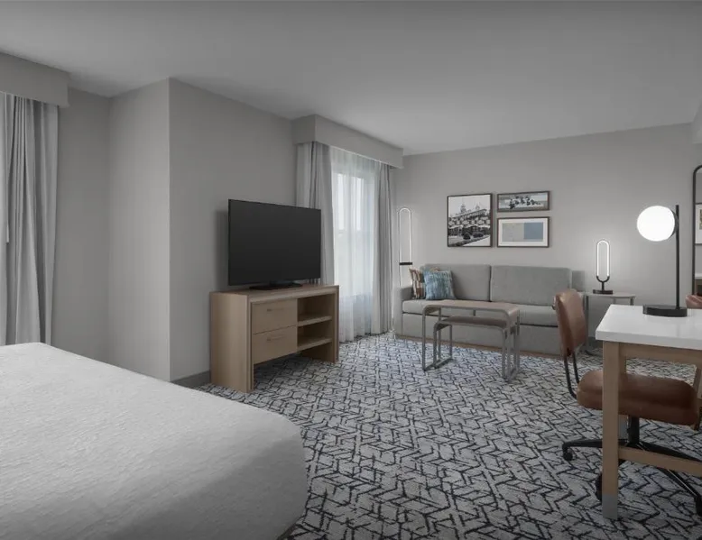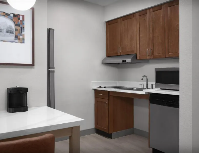 This hotel is located in downtown Princeton, New Jersey and is 3 miles from Princeton University. The all-suite hotel features a sports court, indoor pool and full kitchens in every suite. Suites at the Homewood Hilton Princeton are furnished with a seating area and a dining table. Each suite includes free Wi-Fi and cable TV with HBO. A work desk is also provided. Guests at the Hilton Princeton Homewood Suites are provided a daily hot breakfast and a manager’s reception on select evenings. A gym and a business center are offered on site. Sovereign Bank Arena and Quakerbridge Mall are a 10-minute drive from the Princeton Homewood Suites. The corporate offices of Merrill Lynch and Dow Chemical are also nearby. In the kitchen, guests will find a stovetop, a refrigerator, a dishwasher and kitchenware. This suite is air-conditioned and has a flat-screen TV, a tea and coffee maker, a seating area and heating. The unit has 3 beds.
