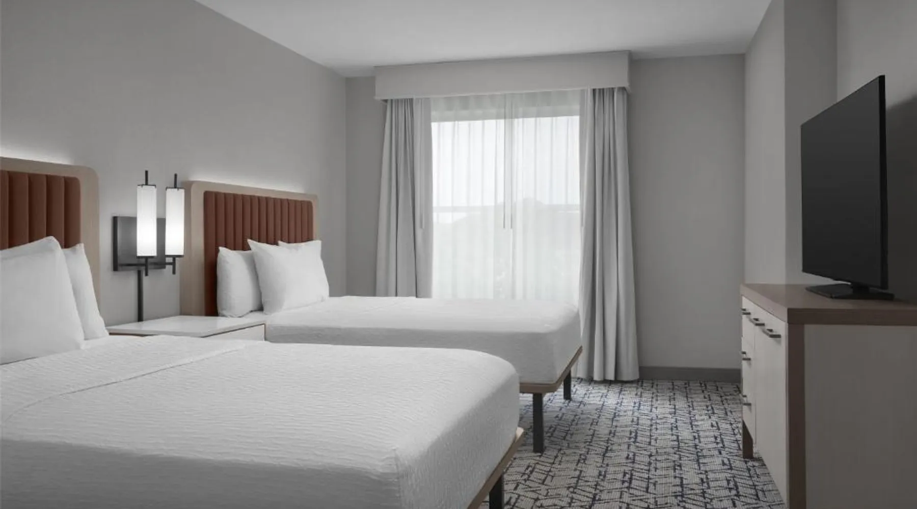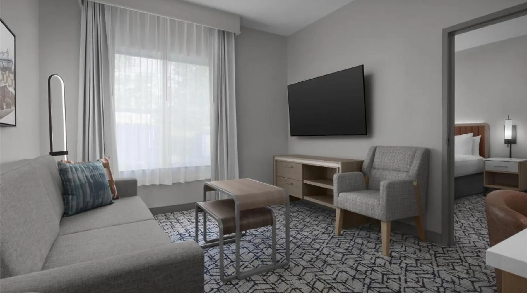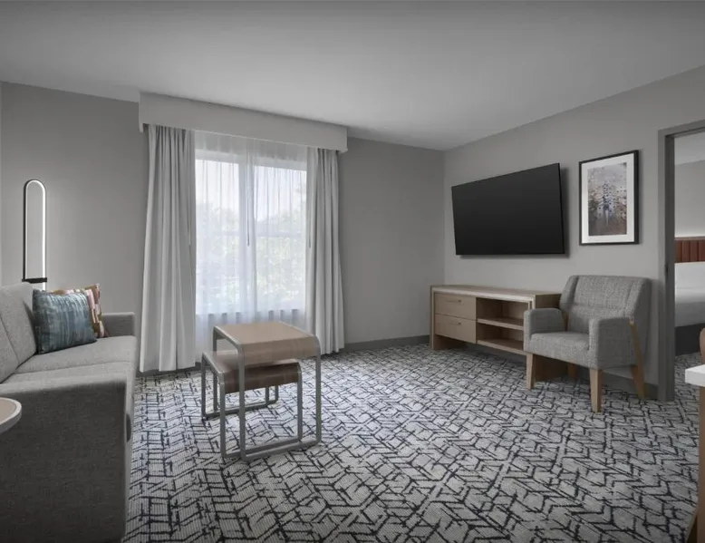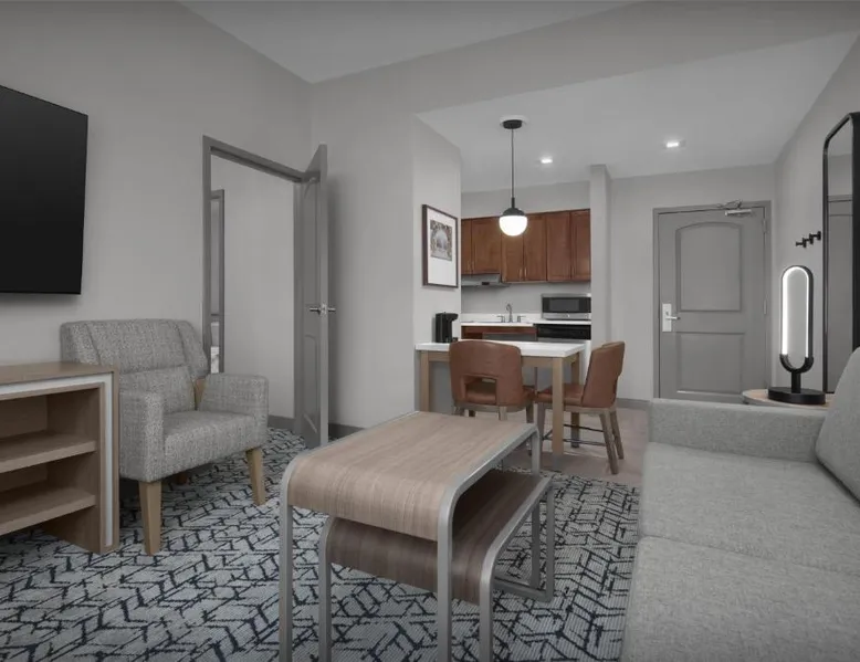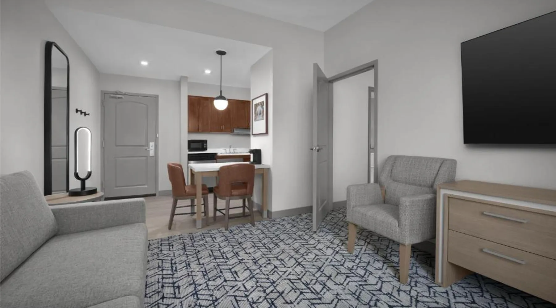 This hotel is located in downtown Princeton, New Jersey and is 3 miles from Princeton University. The all-suite hotel features a sports court, indoor pool and full kitchens in every suite. Suites at the Homewood Hilton Princeton are furnished with a seating area and a dining table. Each suite includes free Wi-Fi and cable TV with HBO. A work desk is also provided. Guests at the Hilton Princeton Homewood Suites are provided a daily hot breakfast and a manager’s reception on select evenings. A gym and a business center are offered on site. Sovereign Bank Arena and Quakerbridge Mall are a 10-minute drive from the Princeton Homewood Suites. The corporate offices of Merrill Lynch and Dow Chemical are also nearby. In the kitchen, guests will find a stovetop, a refrigerator, a dishwasher and kitchenware. This suite is air-conditioned and has a flat-screen TV, a tea and coffee maker, a seating area and heating. The unit has 3 beds.