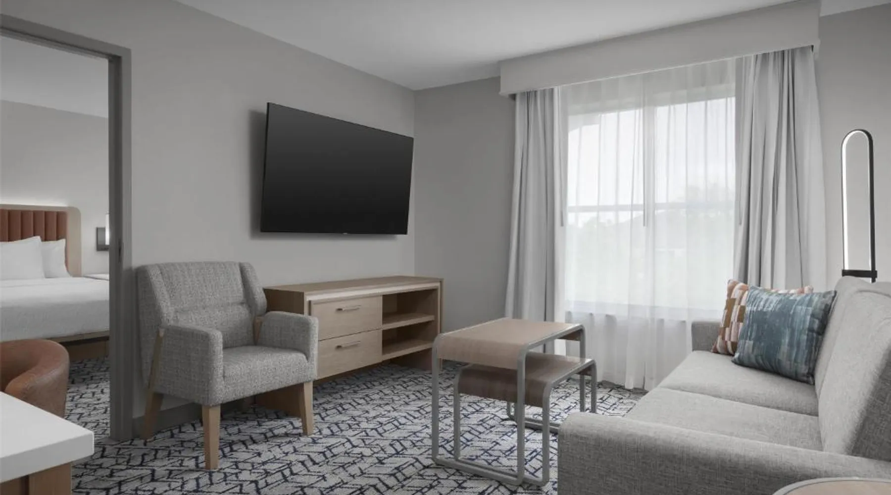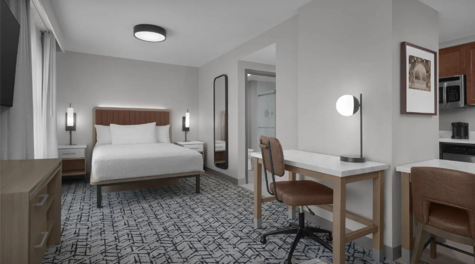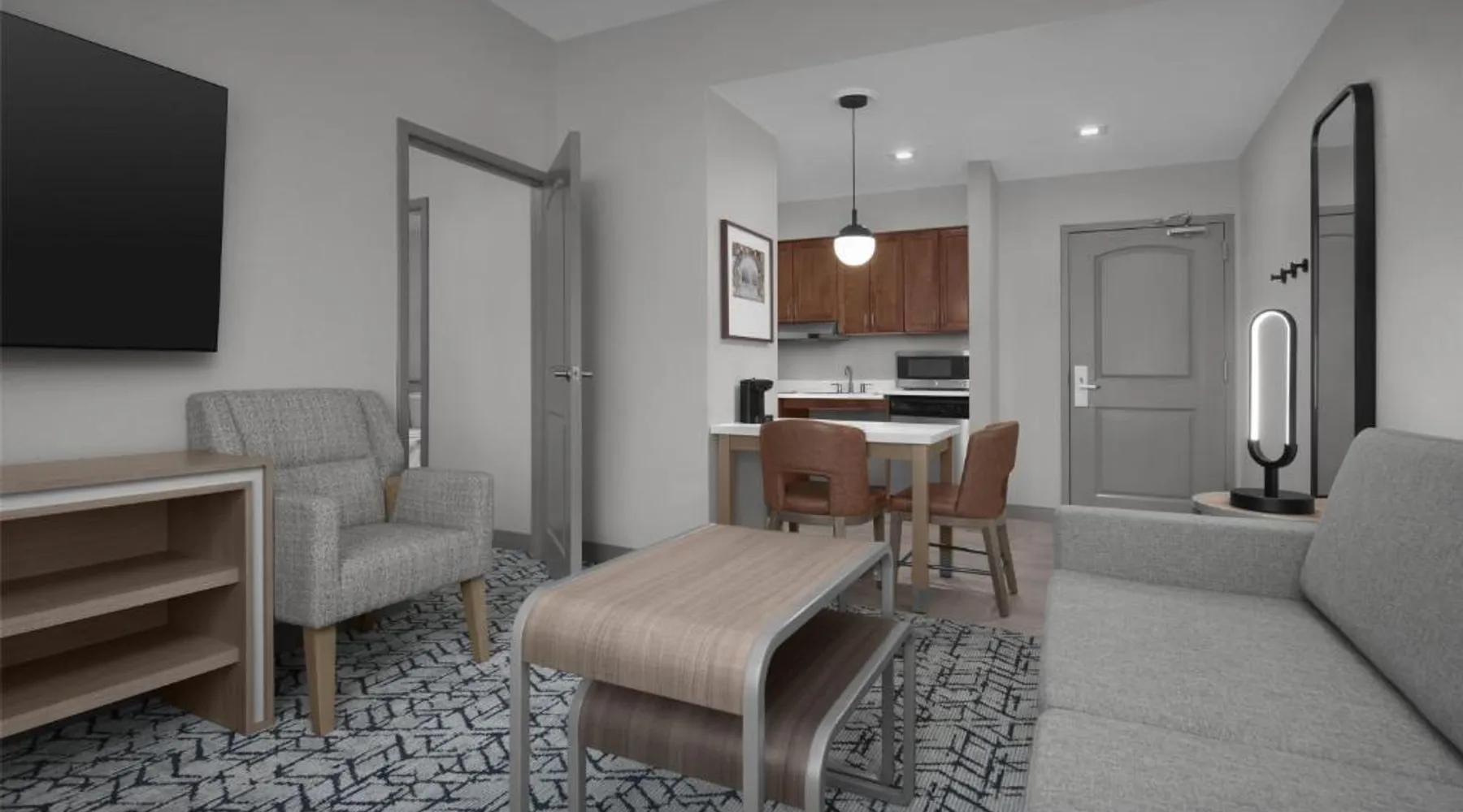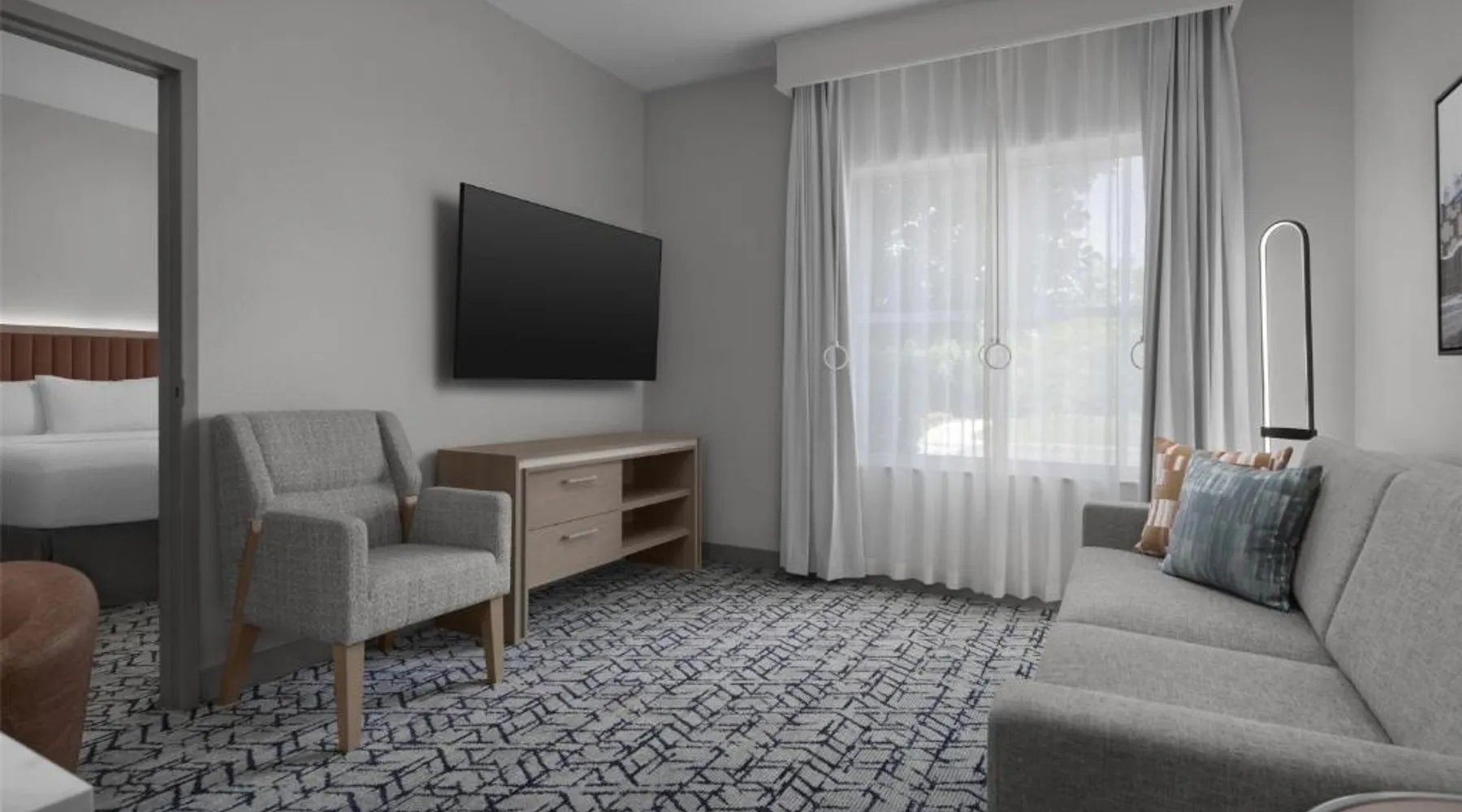 This hotel is located in downtown Princeton, New Jersey and is 3 miles from Princeton University. The all-suite hotel features a sports court, indoor pool and full kitchens in every suite. Suites at the Homewood Hilton Princeton are furnished with a seating area and a dining table. Each suite includes free Wi-Fi and cable TV with HBO. A work desk is also provided. Guests at the Hilton Princeton Homewood Suites are provided a daily hot breakfast and a manager’s reception on select evenings. A gym and a business center are offered on site. Sovereign Bank Arena and Quakerbridge Mall are a 10-minute drive from the Princeton Homewood Suites. The corporate offices of Merrill Lynch and Dow Chemical are also nearby. In the kitchen, guests will find a stovetop, a refrigerator, a dishwasher and kitchenware. This suite is air-conditioned and has a flat-screen TV, a tea and coffee maker, a seating area and heating. The unit has 3 beds.
