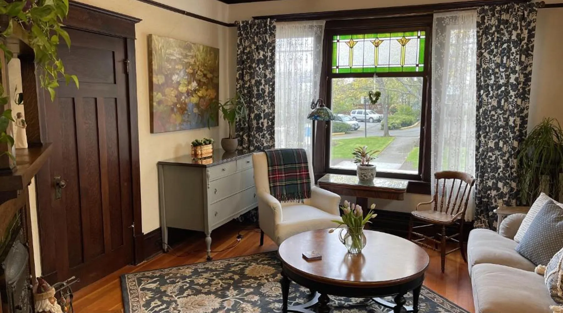 Comfortable Accommodations: Fisher House Victoria Bed and Breakfast in Victoria offers 4-star comfort with free WiFi, housekeeping, laundry, and luggage storage. Free on-site parking is available. Delicious Breakfast: Guests enjoy an American or full English/Irish breakfast, highly praised for its quality. Additional amenities include streaming services, washing machine, private bathroom, and balcony. Convenient Location: Located 0.6 mi from Victoria Inner Harbor and a 14-minute walk to Steve Fonyo Beach, the property is near attractions such as Victoria Harbor Ferry (1.6 mi) and Craigdarroch Castle (2.2 mi). Activities and Surroundings: Guests can participate in pub crawls, cycling, and scuba diving. The surrounding area offers various activities, ensuring a memorable stay. Featuring a balcony with outdoor furnishings, this quiet room includes a flat-screen TV with pay-per-view channels. An private bathroom and bathrobes are offered. Guests can enjoy garden views.
