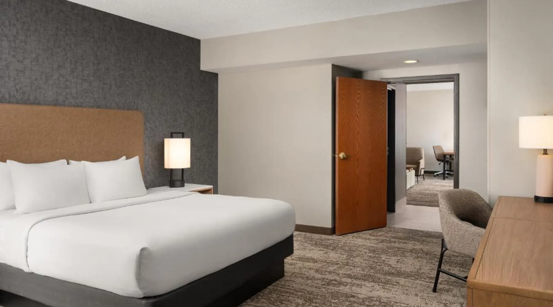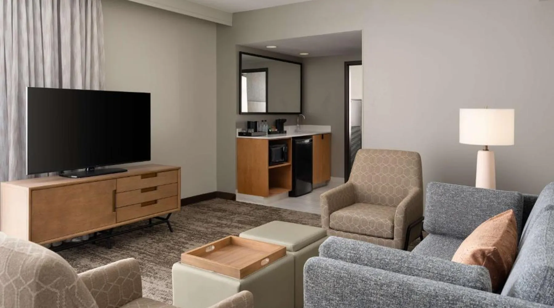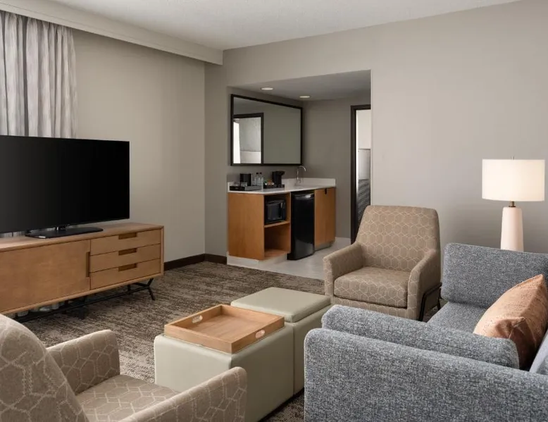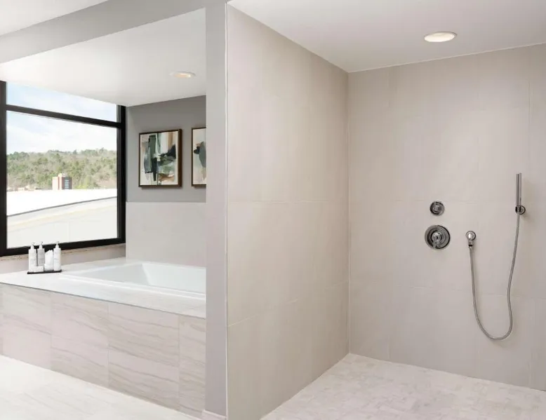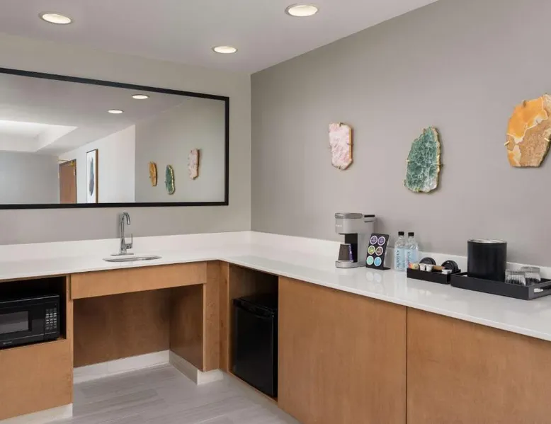 Connected to the Summit Arena and Hot Springs Convention Center, this all-suite hotel offers easy access to top attractions and features spacious accommodations. All rooms at the Embassy Suites Hot Springs Hotel include microwaves, refrigerators and coffeemakers. While staying at the Hot Springs Embassy Suites, guests can enjoy a free cooked-to-order breakfast and an evening reception each day. The hotel also features an on-site fitness center and swimming pool. With just a quick drive to downtown Hot Springs, guests at the Embassy Suites Hot Springs can easily visit historic Bathhouse Row, theaters, art galleries and restaurants. Hot Springs Shopping Mall and beautiful Lake Hamilton are also easily accessible. This suite has an air purification system and aromatherapy pillow spray. Includes Pelican shower filtration system and feather-free bedding. Includes coconut water and a healthy snack. Pets are not allowed in this room.
