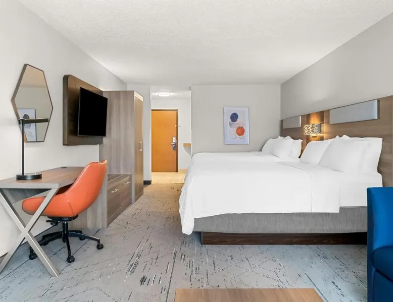 Comfortable Accommodations: Holiday Inn Express & Suites Detroit - Novi by IHG in Novi offers air-conditioned rooms with private bathrooms, tea and coffee makers, and free WiFi. Each room includes a work desk, seating area, and modern amenities. Leisure Facilities: Guests can enjoy a fitness center, indoor swimming pool, and a child-friendly buffet. Additional facilities include a lounge, minimarket, and business area. Free on-site parking is available. Dining Options: A variety of breakfast options are served, including American, buffet, vegetarian, gluten-free, and Asian. Breakfast includes warm dishes, fresh pastries, pancakes, fruits, and juice. Location and Attractions: Detroit Metro Airport is 24 mi away. Nearby attractions include Royal Oak Music Theater (17 mi) and TCF Center (26 mi). The unit has 2 beds.