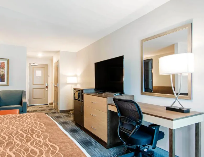 Featuring free WiFi, Comfort Inn & Suites East Ellijay offers accommodations in East Ellijay. Guests can enjoy the indoor heated pool and fitness center. Every room at this hotel is air conditioned and has a flat-screen TV with cable channels. Some units include a seating area to relax in after a busy day. You will find a coffee machine in the room. Every room is equipped with a private bathroom fitted with a bath or shower. Extras include free toiletries and a hair dryer. Guest laundry services and a business center are available on site. Blue Ridge is 17 mi from Comfort Inn & Suites East Ellijay, while Dahlonega is 30 mi from the property. Lovell Field Airport is 48 mi away. This pet-friendly guestroom includes a microwave, refrigerator, and flat-screen TV with HBO. A hairdryer, work desk, and ironing facilities are also provided in this interior-hall room.