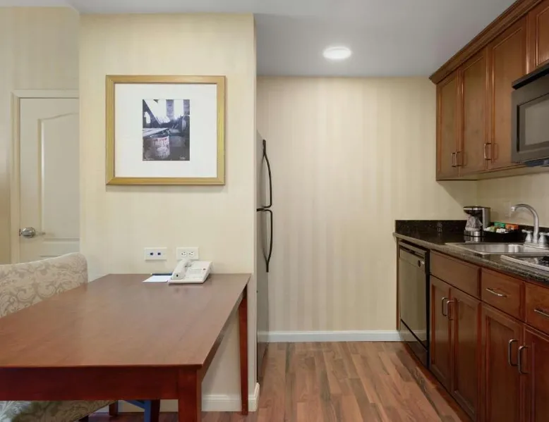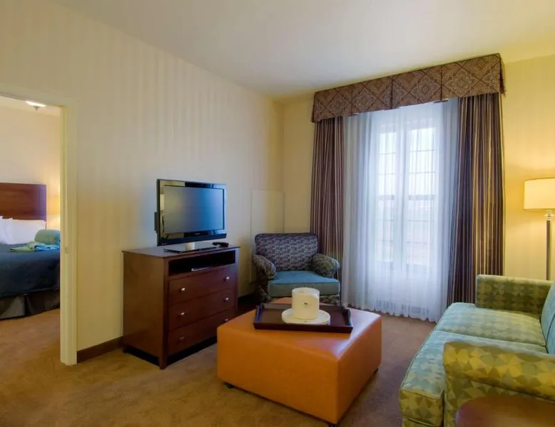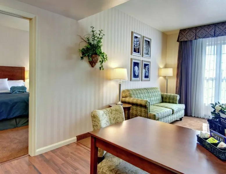 In the business district of Natomas, California, a short distance from Sacramento International Airport, this all-suite hotel offers a fully equipped kitchen and free wireless internet access in each suite. Homewood Suites by Hilton Sacramento Airport Natomas provides a free hot breakfast every morning as well as a manager's reception in the evening Monday through Thursday. Guests can also explore the many restaurants in the surrounding area. Guests at the Natomas Homewood Suites can go for a swim in the outdoor pool or take advantage of the fitness center. After working in the 24-business center, guests can use the hotel's 24-hour laundry facilities. This suite features a separate living area with a sofa bed.