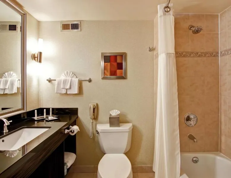 This hotel, 10 minutes from downtown Pleasanton, has easy access to both Interstate 580 and 680. Guests receive free access to a nearby fitness center, Club Sport Ultimate Health Club. All rooms at DoubleTree by Hilton Pleasanton at The Club have 32-inch LCD HD TVs. They include thoughtful amenities like a hairdryer and a tea/coffee maker. The pet-friendly DoubleTree by Hilton features an outdoor pool and hot tub. Its on-site Players Restaurant offers casual dining for breakfast, lunch, and dinner. Guests will appreciate convenient facilities, like room service, a 24-hour business center, and an on-site ATM. The DoubleTree by Hilton Pleasanton at The Club is about 30 minutes from downtown Oakland, and 40 minutes from downtown San Francisco. The Stonebridge Mall is just over a mile from the hotel. This spacious room offers additional space, a sofa bed, and a TV with premium cable channels.