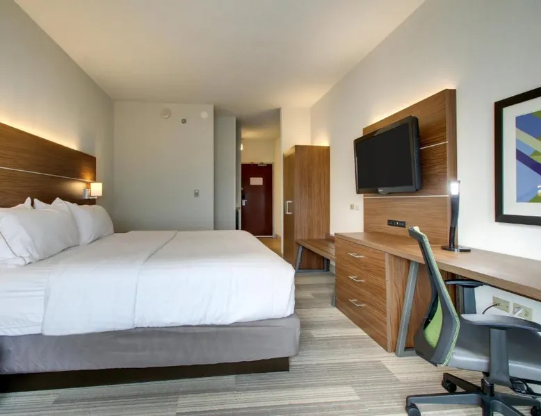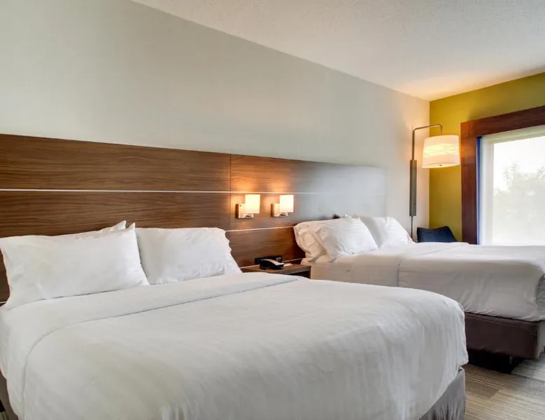 Comfortable Accommodations: Holiday Inn Express & Suites Aurora - Naperville by IHG in Aurora offers family rooms with air-conditioning, private bathrooms, and free WiFi. Each room includes a work desk, sofa bed, and TV. Leisure Facilities: Guests can enjoy a fitness center, indoor swimming pool, and hot tub. Additional amenities include a lounge, fitness room, and outdoor seating area. Dining Options: A buffet breakfast is served with juice, pancakes, and fruits. The hotel also features a minimarket and 24-hour front desk. Location and Attractions: Located 33 mi from Chicago O'Hare International Airport, the hotel is near attractions such as Batavia Depot Museum (6.8 mi) and Brookfield Zoo (29 mi). Guests appreciate the room cleanliness, staff support, and comfort. The spacious double room provides air conditioning, a coffee machine, as well as a private bathroom featuring a bath and a hairdryer. The unit offers 2 beds.