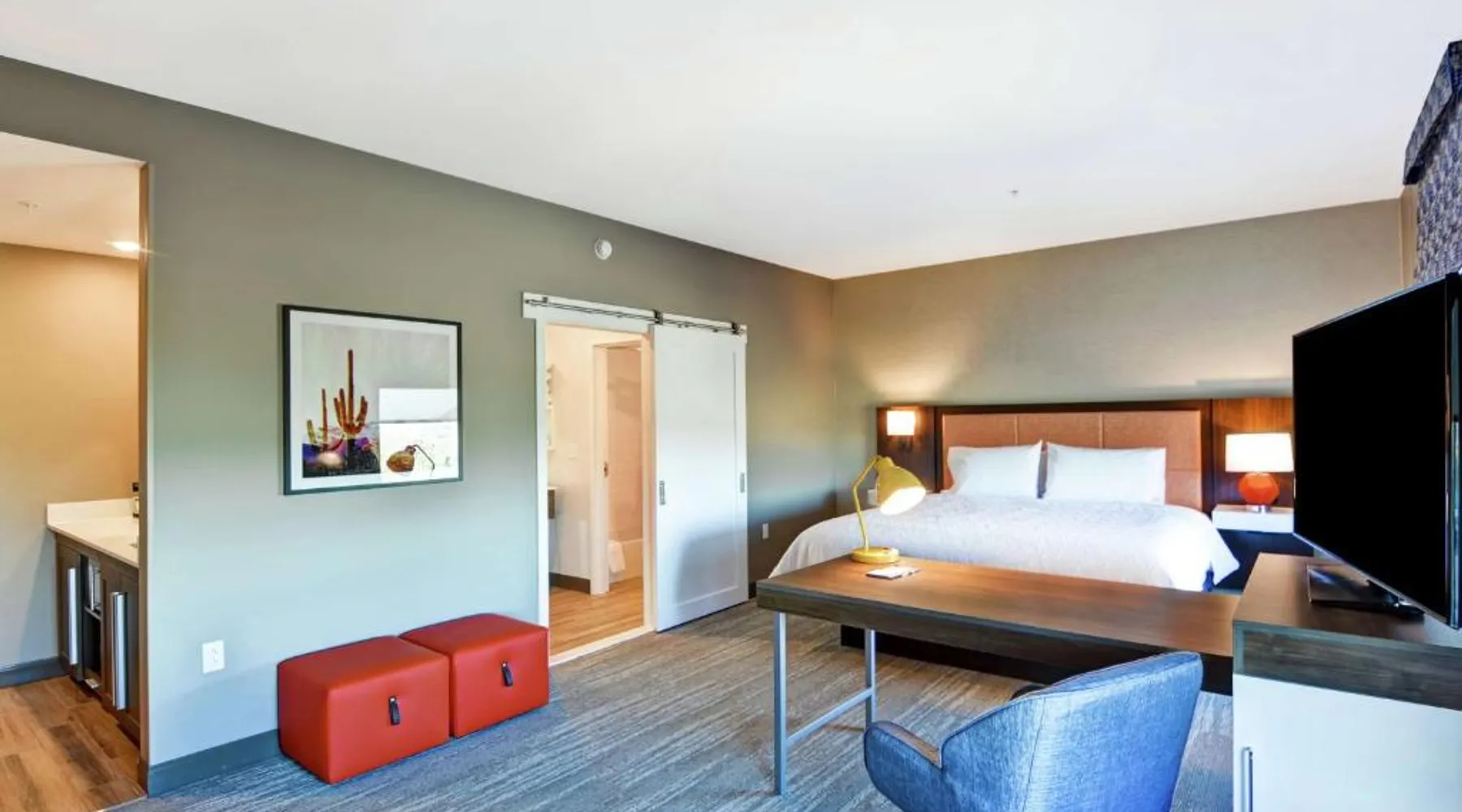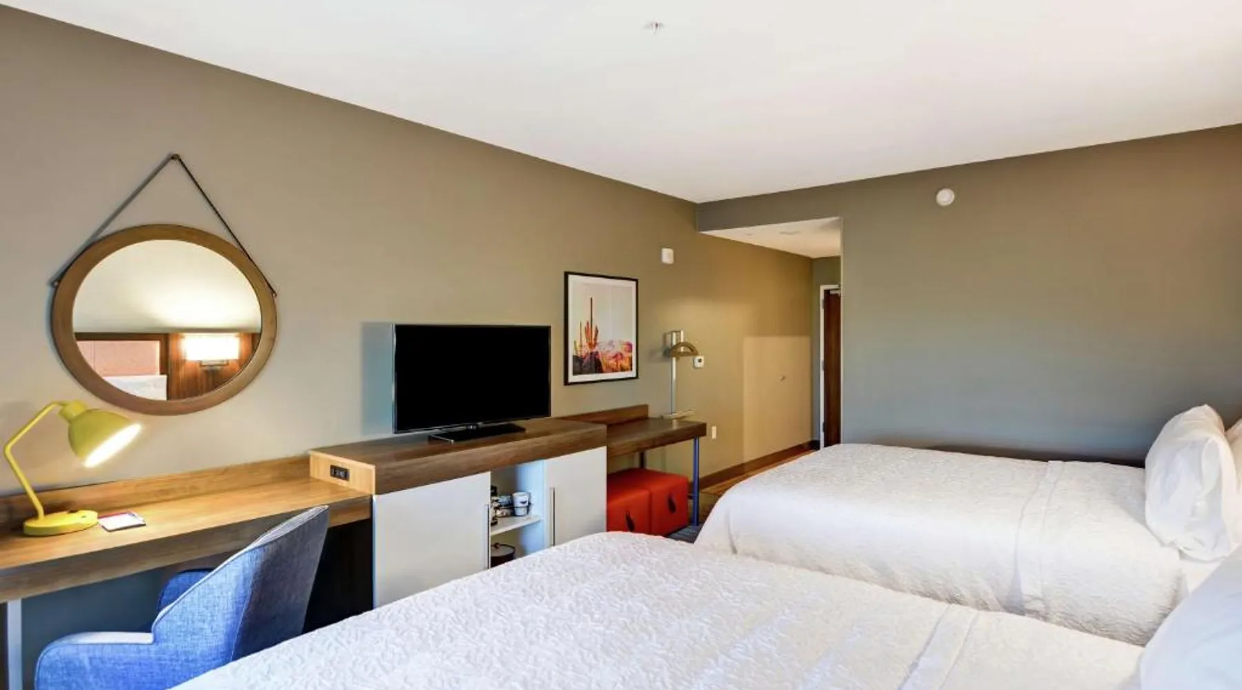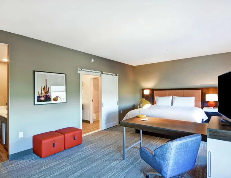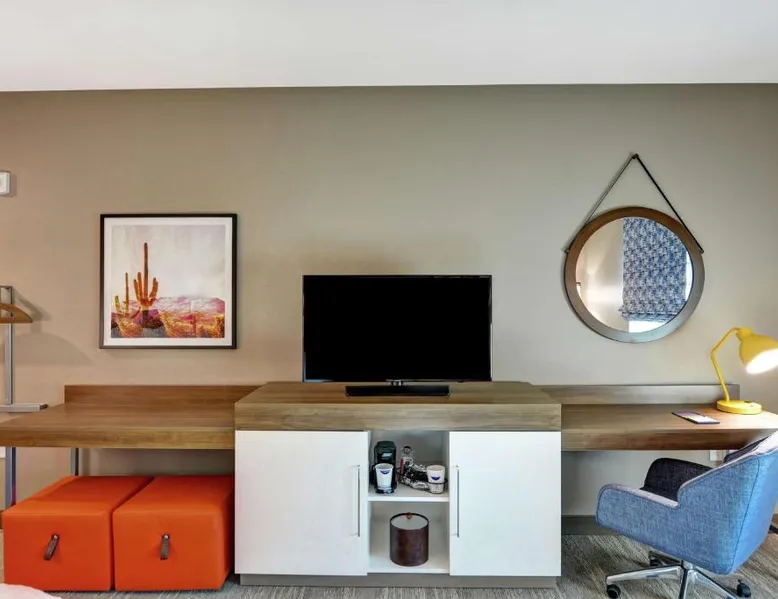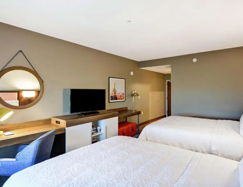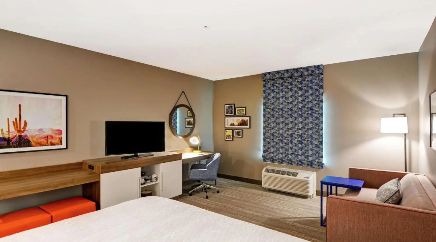 Comfortable Accommodations: Rooms feature air-conditioning, free WiFi, tea and coffee makers, hairdryers, refrigerators, work desks, free toiletries, microwaves, showers, TVs, kitchenware, and toasters. Additional amenities include sofa beds. Leisure Facilities: Guests can enjoy an outdoor swimming pool and a fitness room. The hotel offers a 24-hour front desk, elevator, and free on-site parking. Dining Options: A buffet breakfast is provided each morning. Location and Attractions: Located in Marana, the hotel is 21 mi from Tucson International Airport. Nearby attractions include Crooked Tree Golf Course (4.3 mi), The Golf Club At Dove Mountain (9.3 mi), and Tucson Raceway Park (30 mi). Guest Satisfaction: Highly rated for room cleanliness, comfort, and breakfast. The spacious double room offers air conditioning, a tea and coffee maker, heating, as well as a flat-screen TV with cable channels. The unit offers 1 bed.