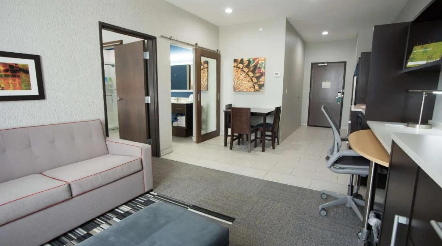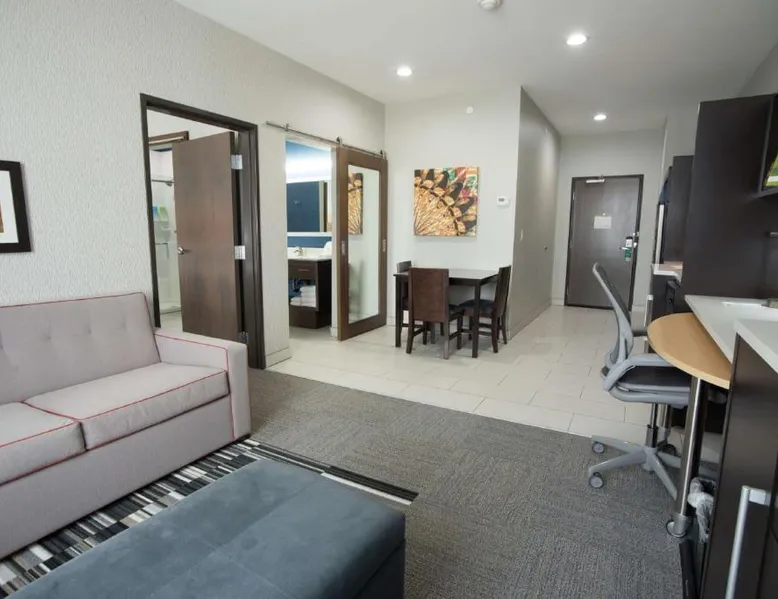 Comfortable Accommodations: Home2 Suites by Hilton Tulsa Hills in Tulsa offers family rooms with air-conditioning, kitchen facilities, and free WiFi. Each room includes a sofa bed, work desk, and free toiletries. Leisure Facilities: Guests can enjoy a fitness center, outdoor swimming pool, and a fitness room. Additional amenities include a elevator, 24-hour front desk, business area, and free on-site parking. Convenient Location: Located 15 mi from Tulsa International Airport, the hotel is near attractions such as Philbrook Museum (6.8 mi) and Brady Theater (7.5 mi). Hiking trails are available in the surrounding area. Guest Satisfaction: Highly rated for its breakfast, room cleanliness, and attentive staff, the hotel ensures a pleasant stay for all visitors. Meals can be prepared in the well-fitted kitchen, which is equipped with a refrigerator, a dishwasher, kitchenware and a microwave. The studio provides air conditioning, a tea and coffee maker, heating and a flat-screen TV with cable channels. The unit offers 2 beds.