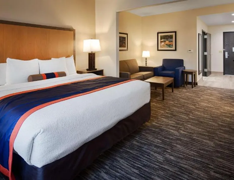 Comfortable Accommodations: Best Western Plus Ardmore Inn & Suites in Ardmore offers family rooms with air-conditioning, private bathrooms, and modern amenities. Each room includes a work desk, free toiletries, and a TV. Exceptional Facilities: Guests can enjoy a fitness center, indoor swimming pool, and a bar. Free WiFi is available throughout the property. Additional facilities include a hot tub, spa bath, and a business area. Delicious Breakfast: A complimentary American buffet breakfast is served daily, featuring fresh pastries, fruits, and juices. The breakfast is highly praised by guests for its quality and variety. Convenient Location: Located 31 mi from WinStar World Casino, the hotel provides free on-site private parking and express check-in and check-out services. The property staff and service support receive high ratings from guests. The hot tub is a top feature of this double room. Featuring free toiletries, this double room includes a private bathroom with a bath, a shower and a hairdryer. The double room features air conditioning, a tea and coffee maker, a wardrobe, a tiled floor, as well as a flat-screen TV with cable channels. The unit has 1 bed.