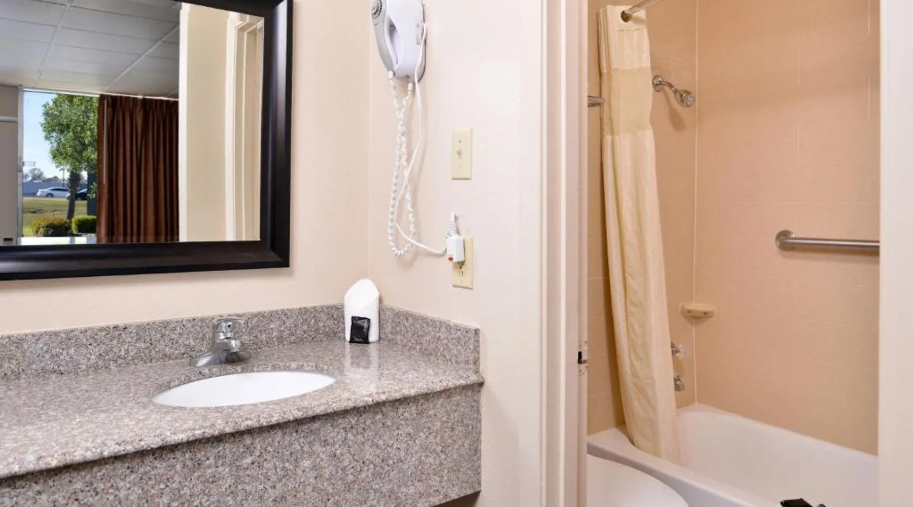 Located off Interstate 20, this hotel is a 3-minute walk from Glenwood Mall. It features a seasonal outdoor pool and a business center. Pet-friendly guest rooms offer cable TV and free wired internet. A microwave, fridge and coffee maker are provided in each room at Americas Best Value Inn West Monroe. The simply styled rooms also include a work desk and a telephone with wake up call service. The West Monroe Americas Best offers an outdoor picnic area with tables for group get-togethers. Free Wi-Fi is available in public areas, and the front desk is open 24-hours for convenience. This hotel is within 1.5 miles from West Monroe Convention Center and Highland Park Golf Course. Tinsel Town Theater is a 3-minute drive away. This room features a microwave, fridge and coffee maker.