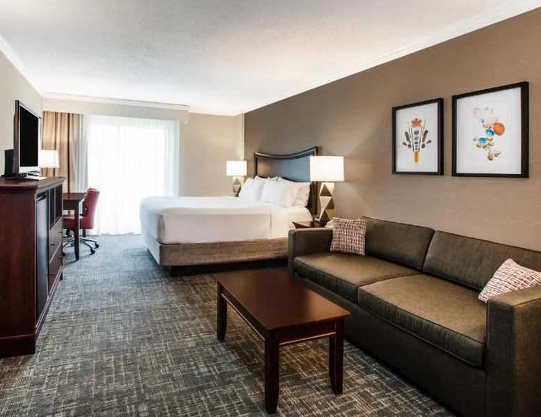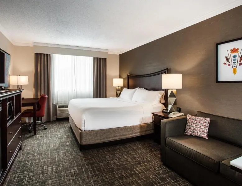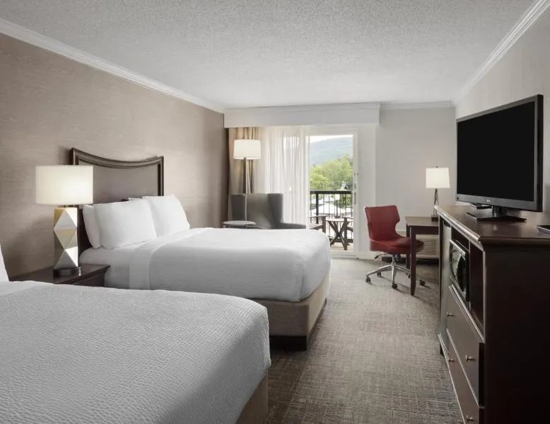 Located off Interstate 87 and set in the heart of the Adirondack Park Preserve, this Holiday Inn Resort Lake George offers indoor and outdoor pools and an on-site restaurant and lounge. Six Flags Great Escape Amusement Park is 5 miles away. Free Wi-Fi, a flat-screen TV and a work desk with ample seating area are standard in all the spacious guest accommodations at the Holiday Inn Resort Lake George. With outdoor basketball courts, shuffleboard, a putting green and a giant chessboard, there is something for everyone at the Holiday Inn Resort Lake George. The resort features a children's swimming pool and playground, seasonal outdoor big screen movies, and an on-site fitness center. Lake George Beach State Park and the Lake George Steamboat Company are 15 minutes’ walk from the hotel. Shopping and outlet stores are also nearby. Room features a cable TV, a microwave and a work desk.
