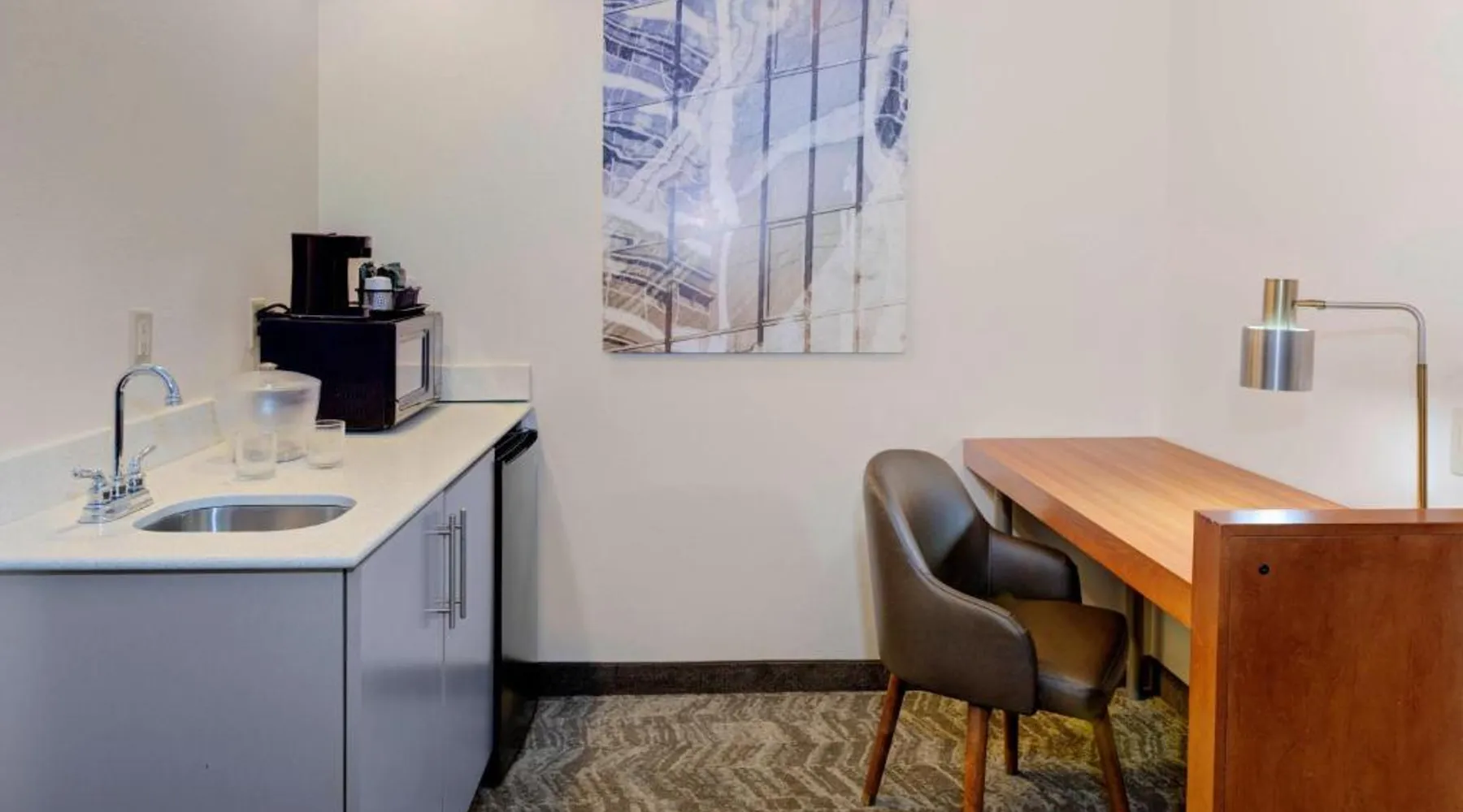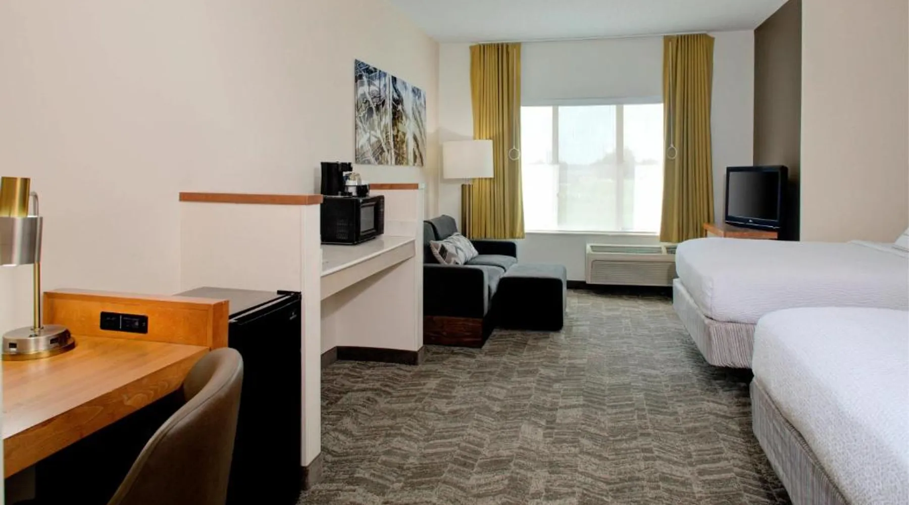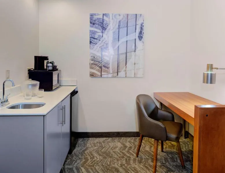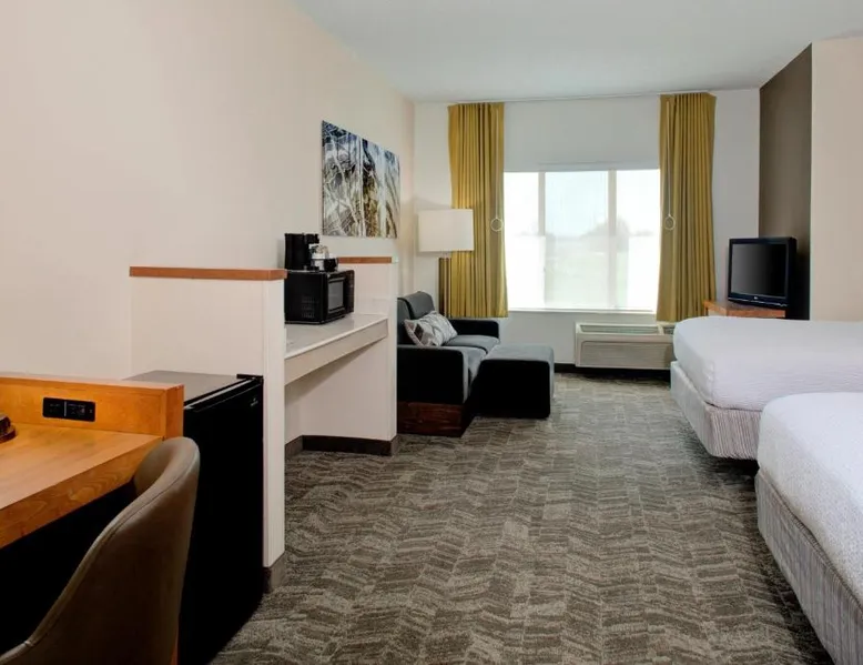 Comfortable Accommodations: SpringHill Suites by Marriott Memphis East Galleria in Memphis offers family rooms with air-conditioning, private bathrooms, and free WiFi. Each room includes a tea and coffee maker, hairdryer, sofa bed, refrigerator, work desk, and TV. Leisure Facilities: Guests can enjoy a fitness center, sun terrace, indoor swimming pool, and outdoor seating area. Additional amenities include a lounge, minimarket, child-friendly buffet, business area, and free on-site parking. Convenient Location: Located 19 mi from Memphis International Airport, the hotel is near attractions such as Bellevue Baptist Church (3.7 mi), Shelby Farms Park (8.7 mi), and Memphis Botanic Garden (12 mi). Free on-site parking is available. Guest Services: The property staff and service support are highly praised by guests. Express check-in and check-out, a 24-hour front desk, and multilingual support enhance the stay experience. This room has a wet bar.