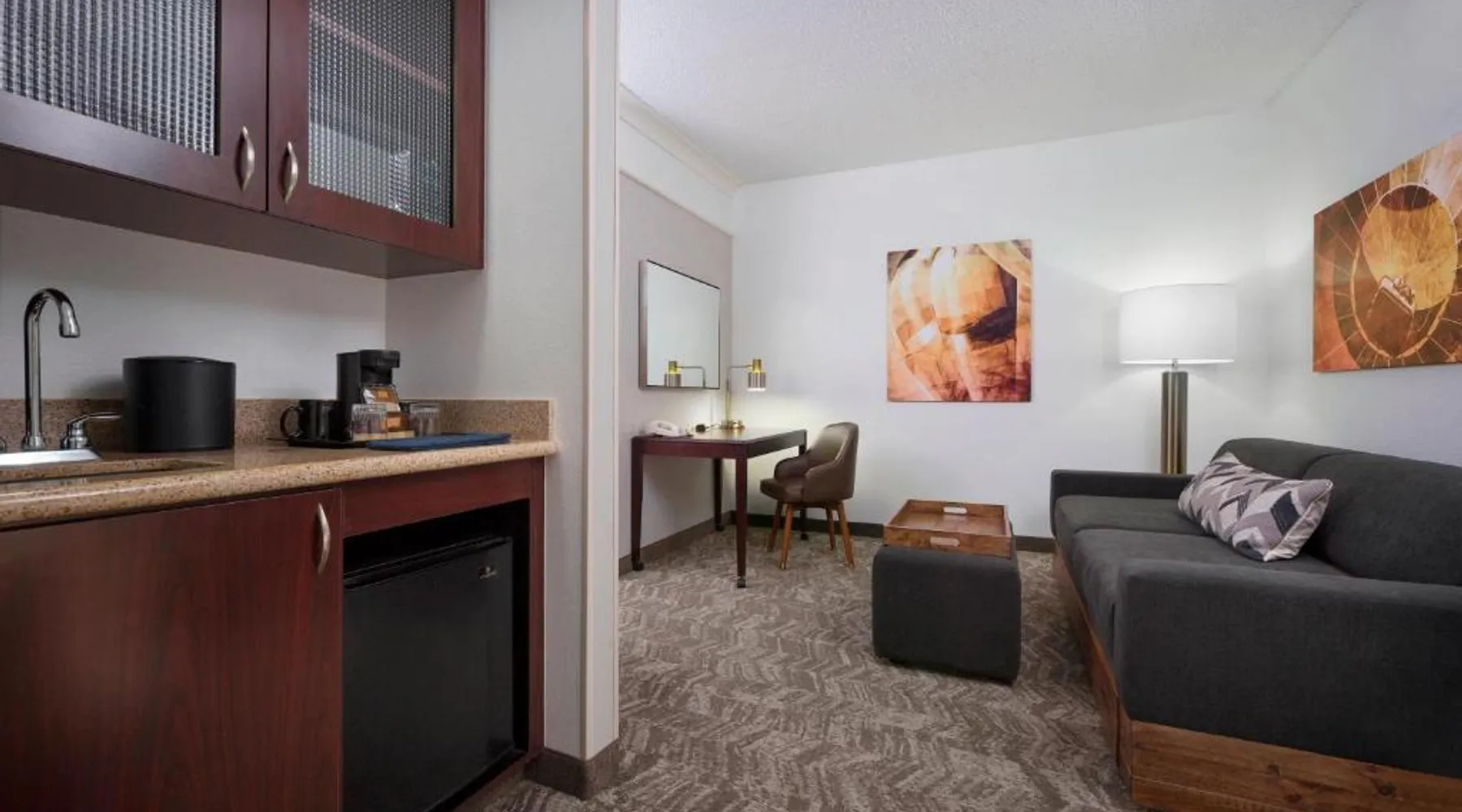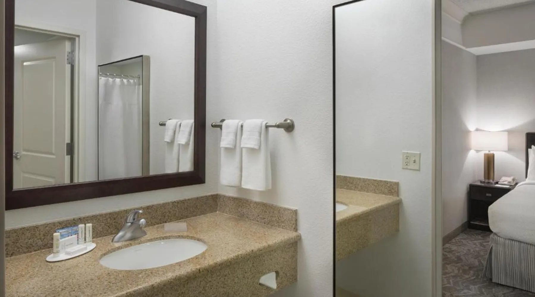 SpringHill Suites Napa Valley, located 6 mi from the Napa Valley Wine Train, offers spacious studios with free WiFi. The hotel has a heated outdoor pool and hot tub. The studios feature a flat-screen TVs with HBO, iPod docking stations and desks. They also provide a seating area with a sofa bed. A microwave and refrigerator are included. Napa Valley SpringHill Suites offers guests a 24-hour market and a bar. The hotel also has a fitness center. Guests have access to a business center and meeting rooms. Guests can also rent a tent among the landscaped gardens for catering events. SpringHill Suites is 4 mi from Cartlidge & Browne Winery and 6.8 mi from Six Flags Discovery Kingdom. It is 12 mi from Jelly Belly Candy Company Tours. This studio features a sofa bed, a flat-screen TV, an iPod docking station, a pantry with a refrigerator, a microwave and a coffee machine, a work desk, and luxury toiletries in the private bathroom.
