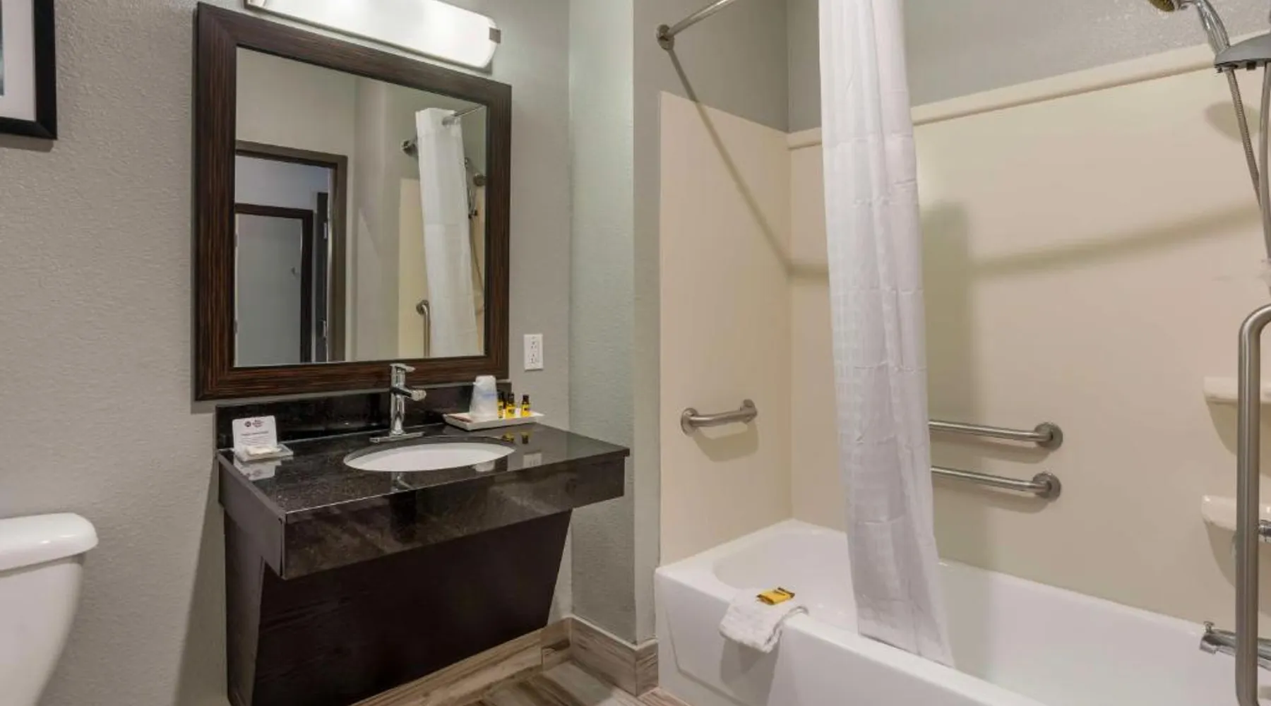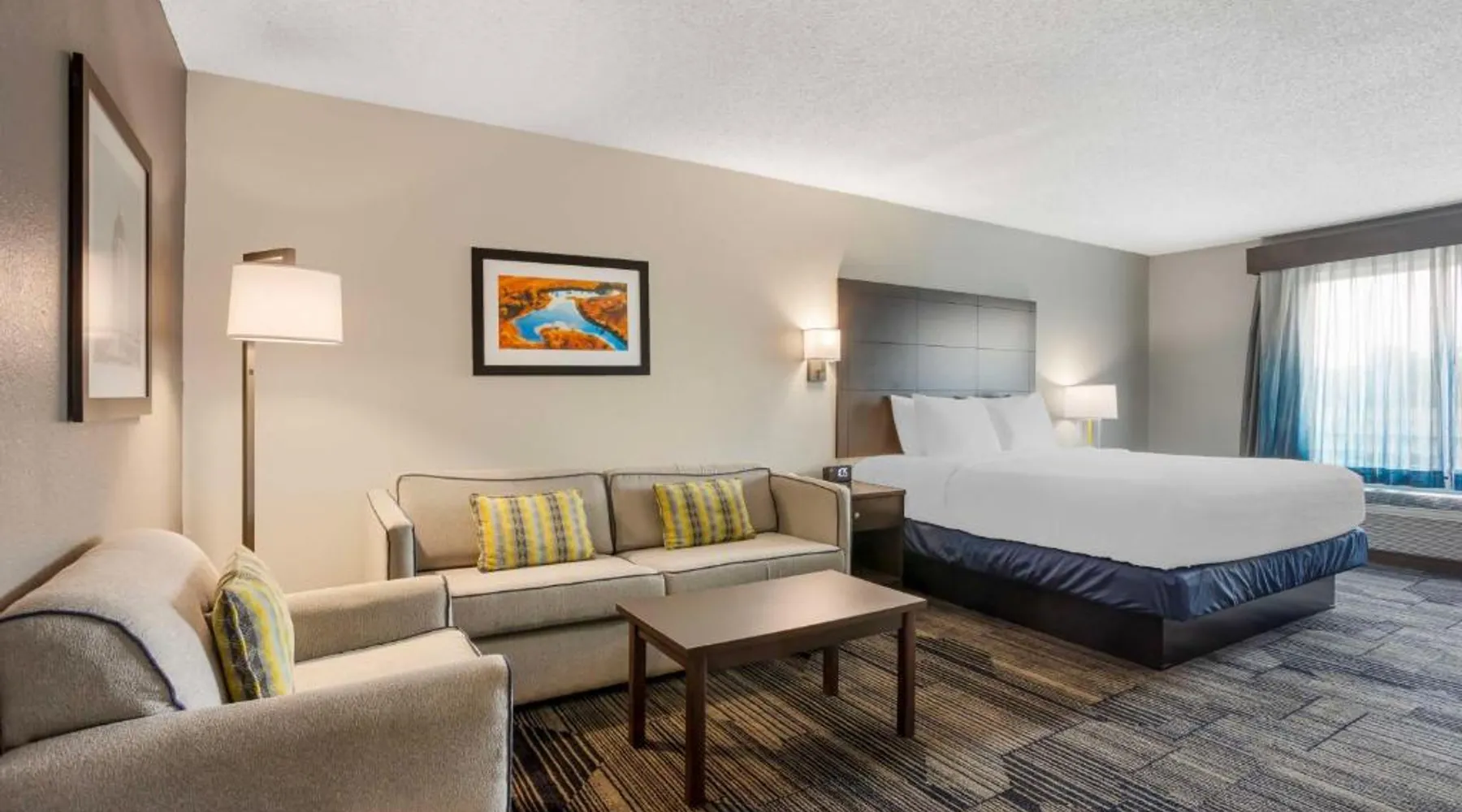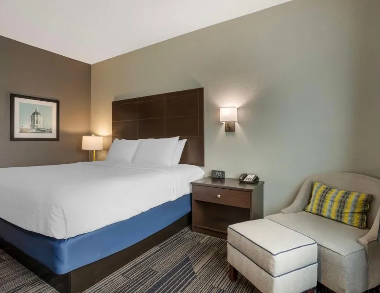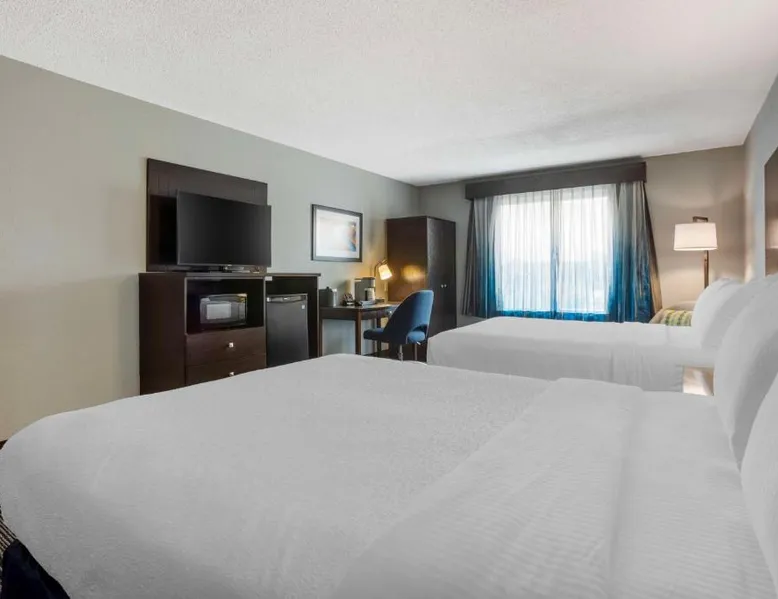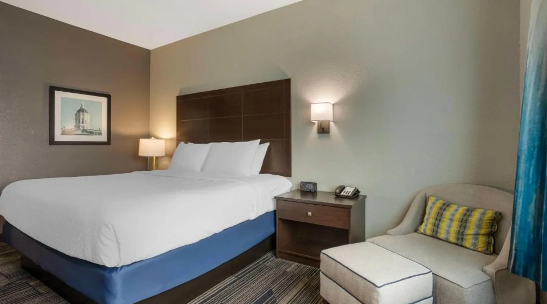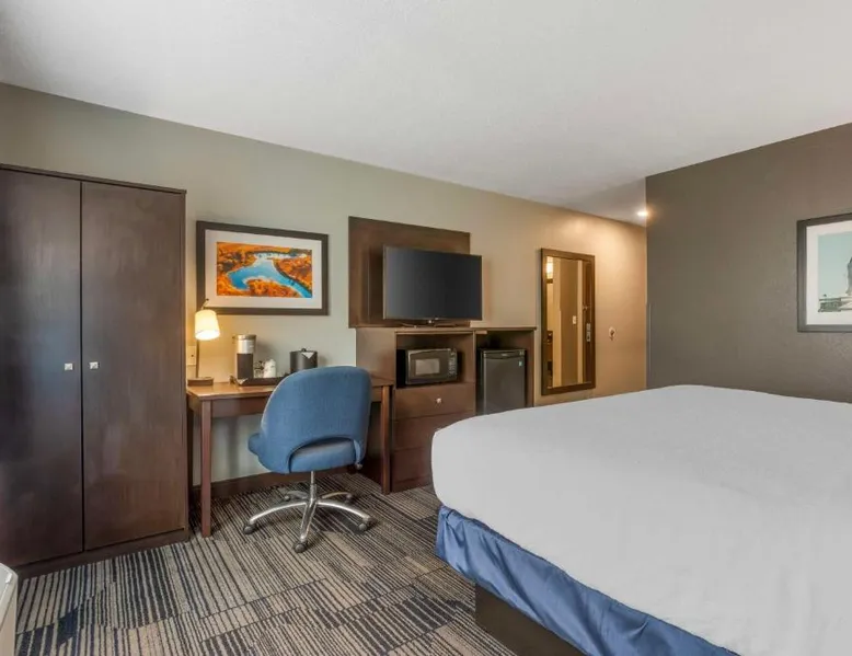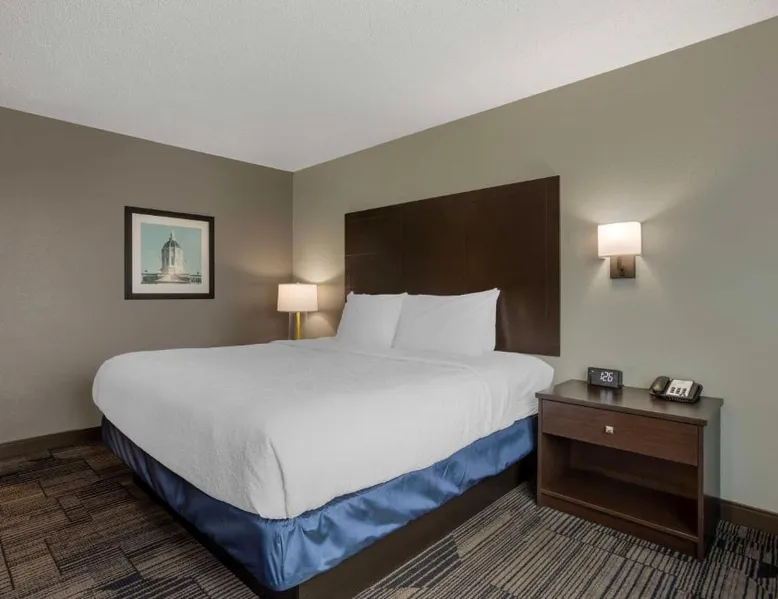 Comfortable Accommodations: Best Western Plus Columbia Inn in Columbia offers family rooms with air-conditioning, private bathrooms, and modern amenities. Each room includes a work desk, free toiletries, and a TV. Exceptional Facilities: Guests can enjoy a fitness center, sun terrace, garden, indoor swimming pool, and free WiFi. Additional facilities include a lounge, fitness room, elevator, 24-hour front desk, minimarket, housekeeping service, business area, and free on-site private parking. Delicious Breakfast: A complimentary American breakfast is served daily, featuring juice, fresh pastries, pancakes, cheese, and fruits. Convenient Location: Located 12 mi from Columbia Regional Airport and 4.3 mi from Faurot Field, the hotel provides easy access to local attractions. The spacious double room features air conditioning, a tea and coffee maker, as well as a private bathroom boasting a bath and a hairdryer. The double room provides a wardrobe, a carpeted floor, heating and a flat-screen TV with cable channels. The unit has 1 bed.
