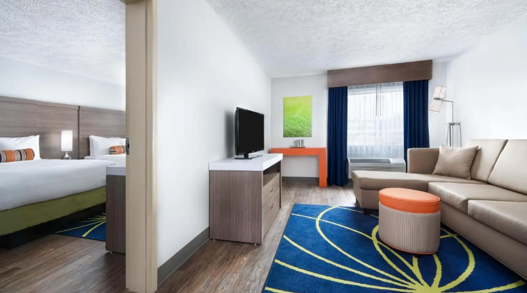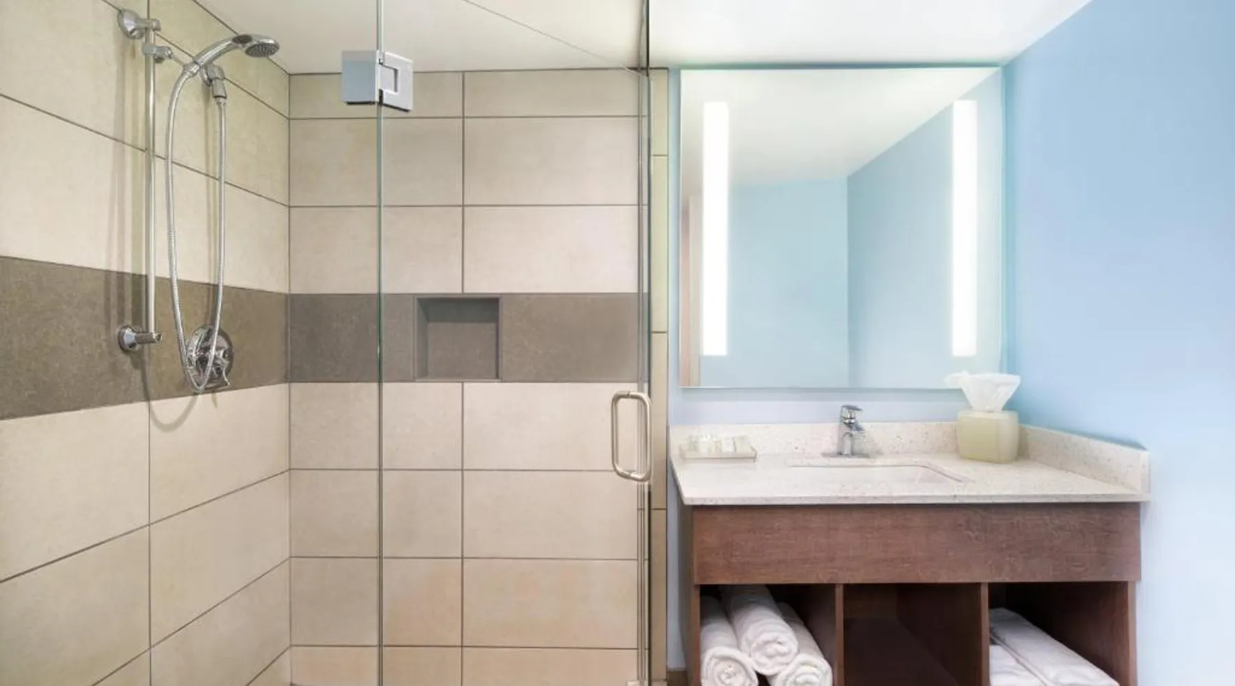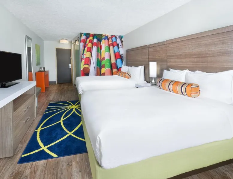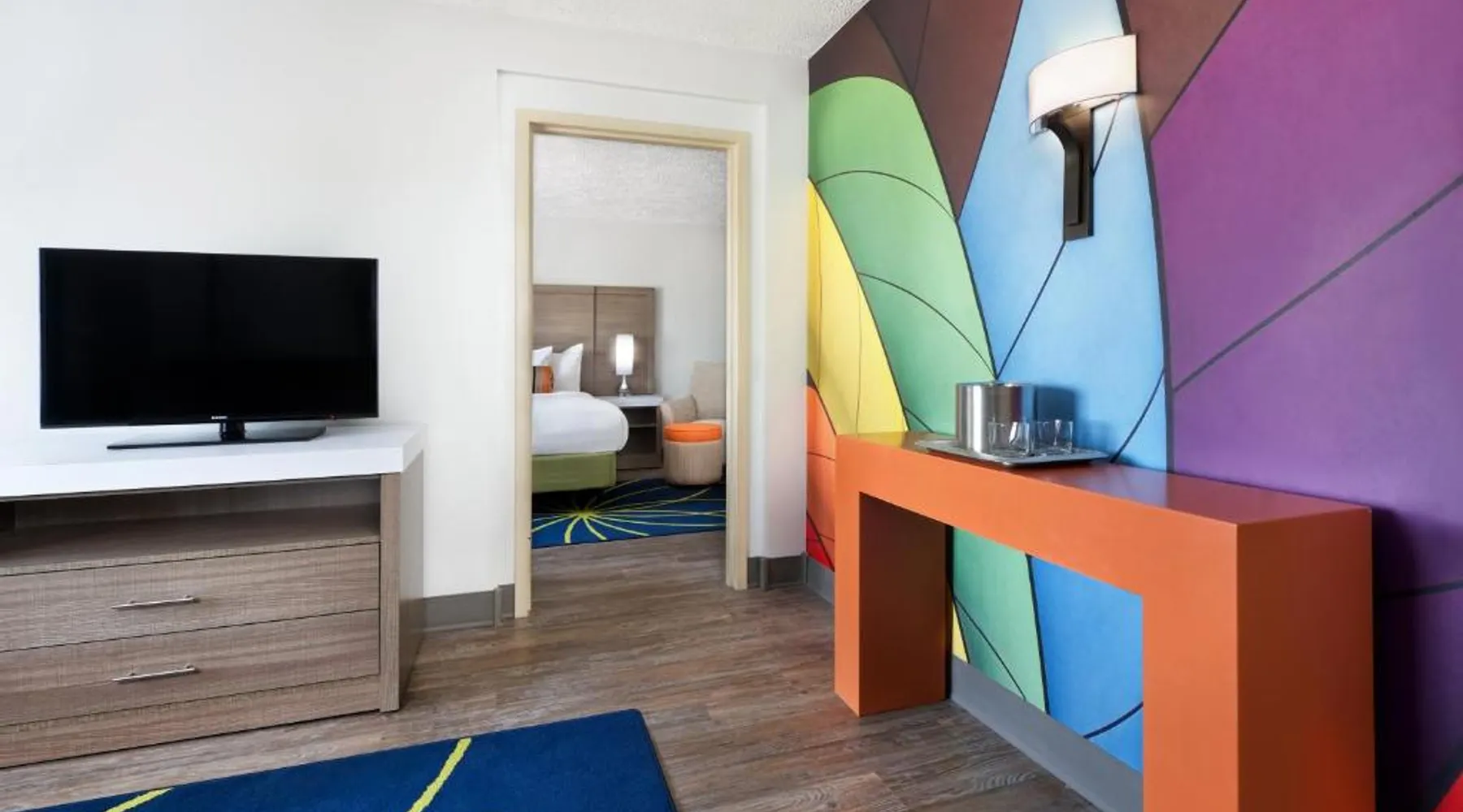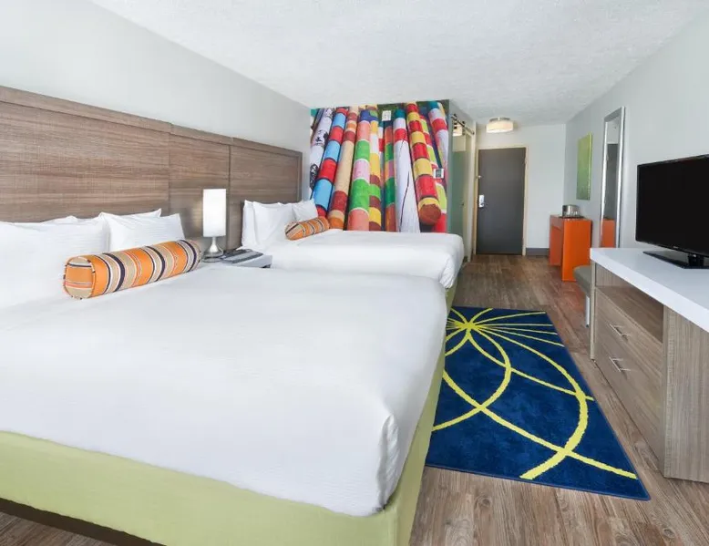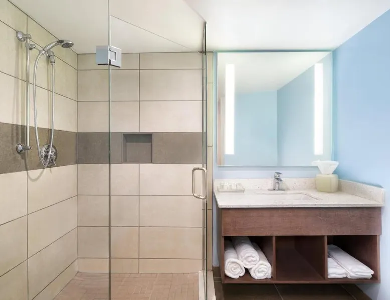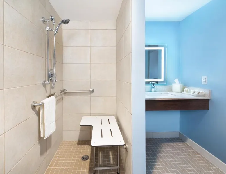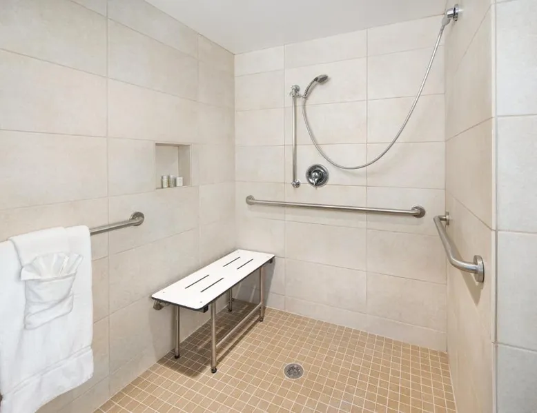 Comfortable Accommodations: Hotel Indigo Cleveland Beachwood by IHG in Beachwood offers air-conditioned rooms with private bathrooms, tea and coffee makers, and free WiFi. Each room includes a work desk, seating area, and parquet floors. Dining and Leisure: Guests can enjoy a modern, romantic restaurant serving American cuisine with vegetarian options. The bar offers cocktails in a relaxed setting. Additional facilities include a fitness room, lounge, and outdoor seating area. Convenient Location: Located 8.1 mi from the Cleveland Orchestra and Cleveland Botanical Garden, the hotel is near attractions such as the Cleveland Museum of Art and Rock and Roll Hall of Fame. An ice-skating rink is in the surroundings. Guest Services: The hotel provides free on-site parking, private check-in and check-out, a 24-hour front desk, and a business area. Guests appreciate the attentive staff and room cleanliness. A flat-screen cable TV is included in this accessible room, along with a coffeemaker and hairdryer.