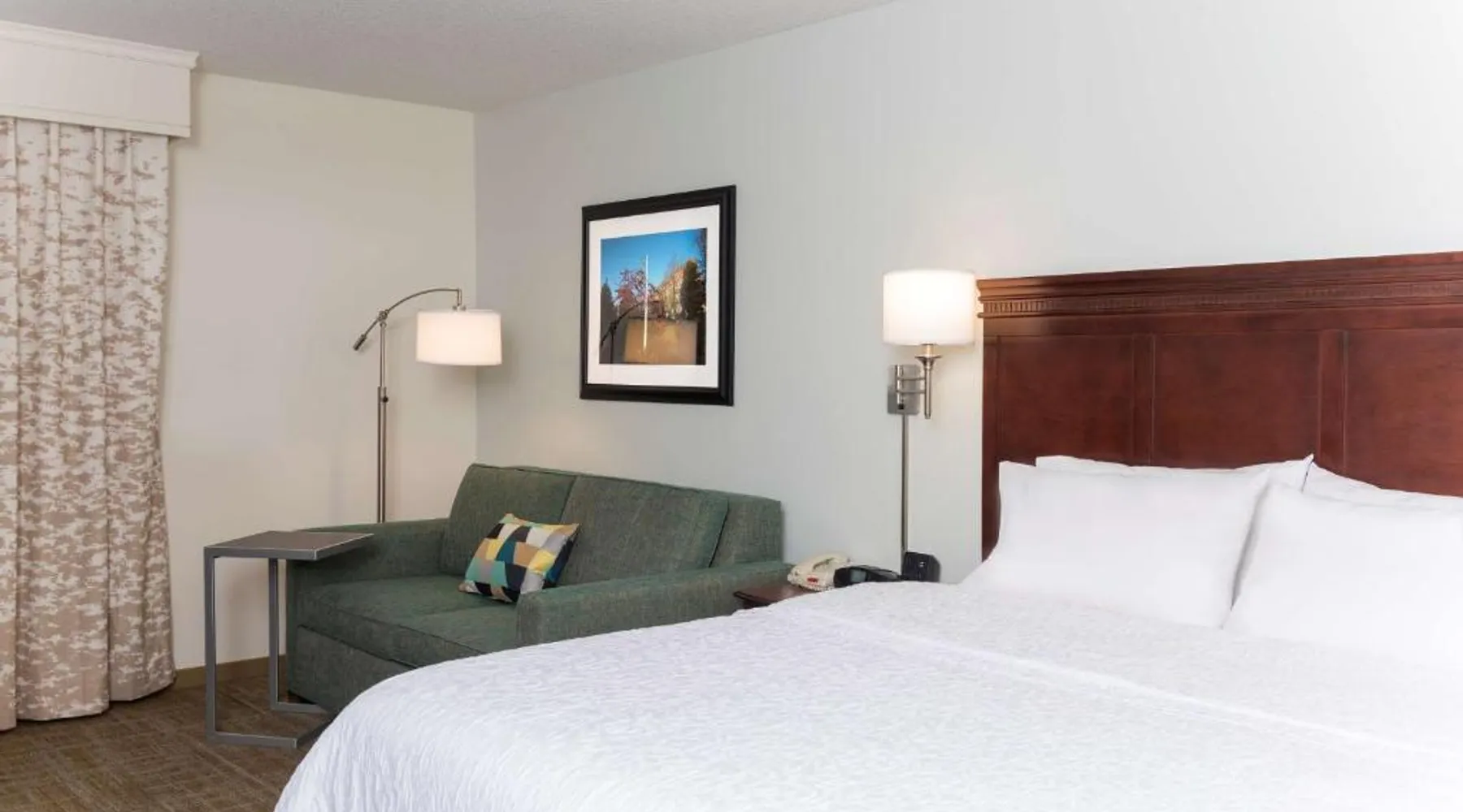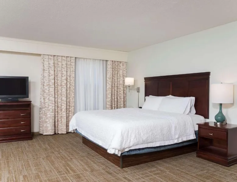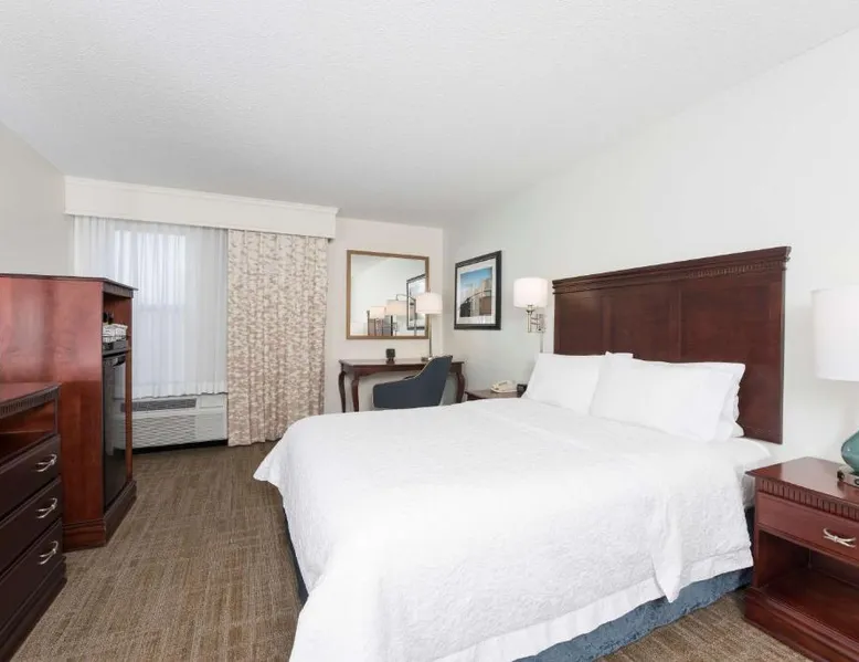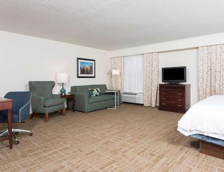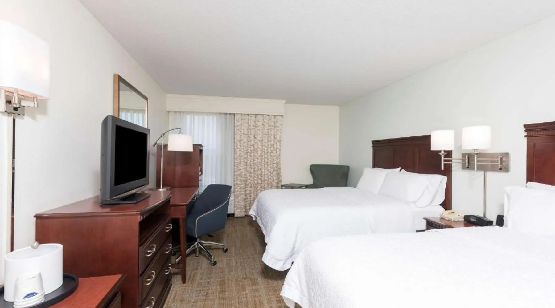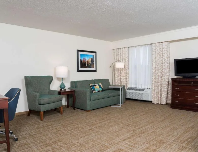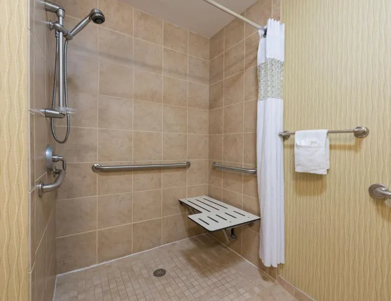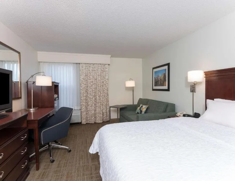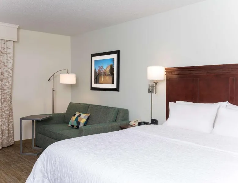 Comfortable Accommodations: Hampton Inn East Lansing in East Lansing offers family rooms with sofa beds and seating areas. Each room includes a tea and coffee maker, hairdryer, refrigerator, microwave, shower, and TV. Exceptional Facilities: Guests enjoy an indoor swimming pool, fitness center, and free WiFi. Additional amenities include a fitness room, elevator, 24-hour front desk, daily housekeeping service, business area, full-day security, and luggage storage. Delicious Breakfast: A continental, American, or buffet breakfast is served with warm dishes. The property staff provide excellent service support, ensuring a pleasant stay. Prime Location: Located 6.8 mi from Capital Region International Airport, the hotel is close to attractions such as Jack Breslin Arena and Wharton Center, both 2.8 mi away. Michigan State University is 3.1 mi from the property. This room features a spa bath, and flat-screen TV. A microwave and small refrigerator are also included.