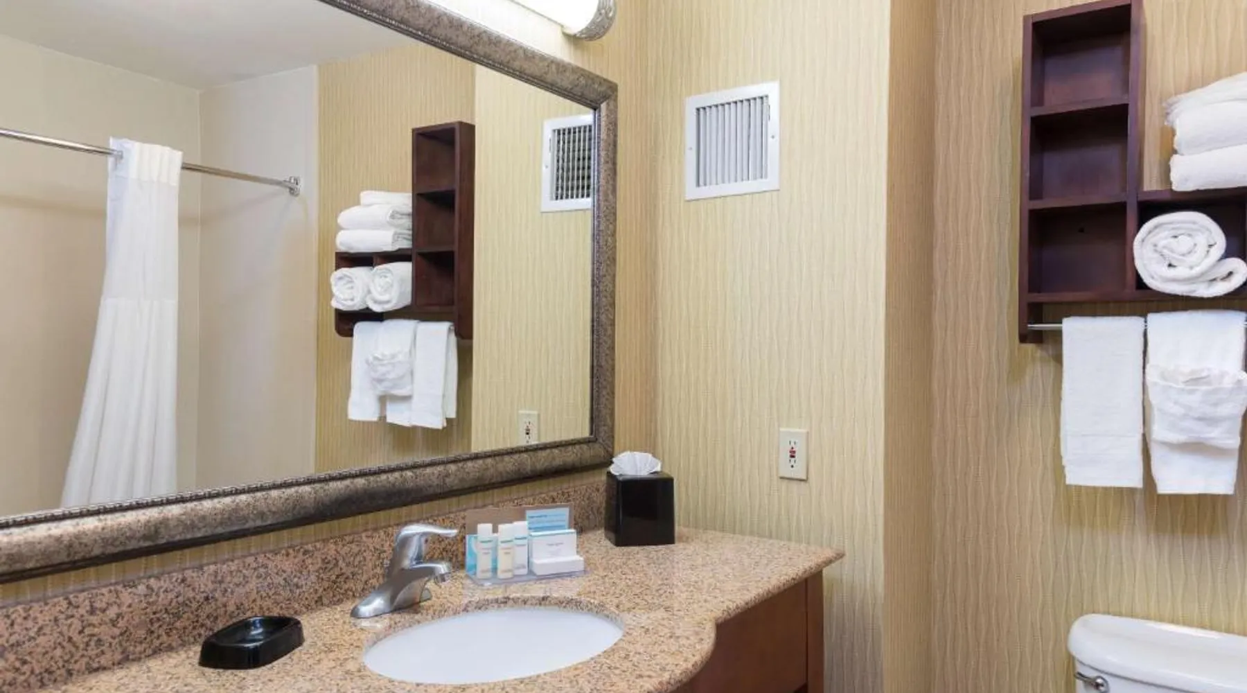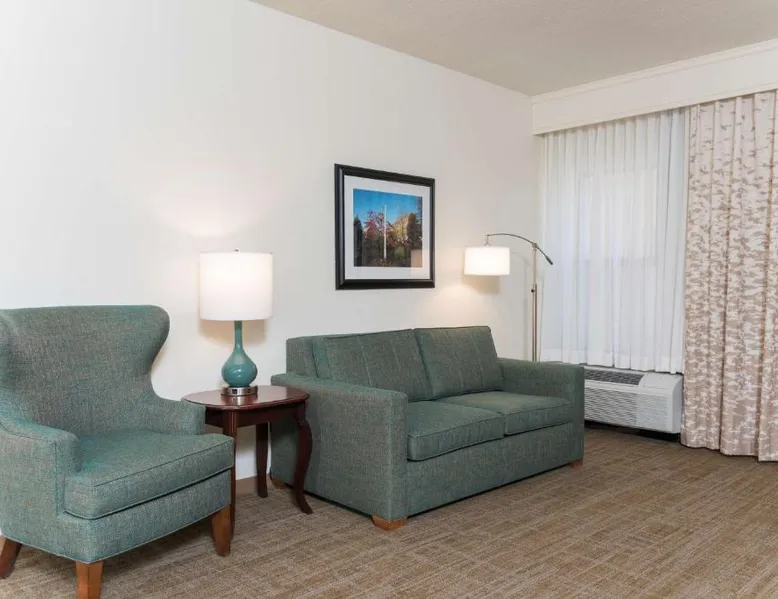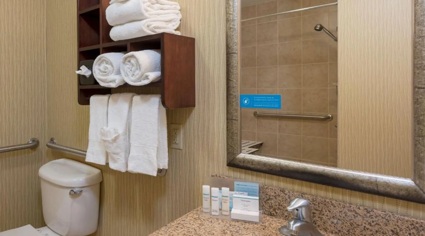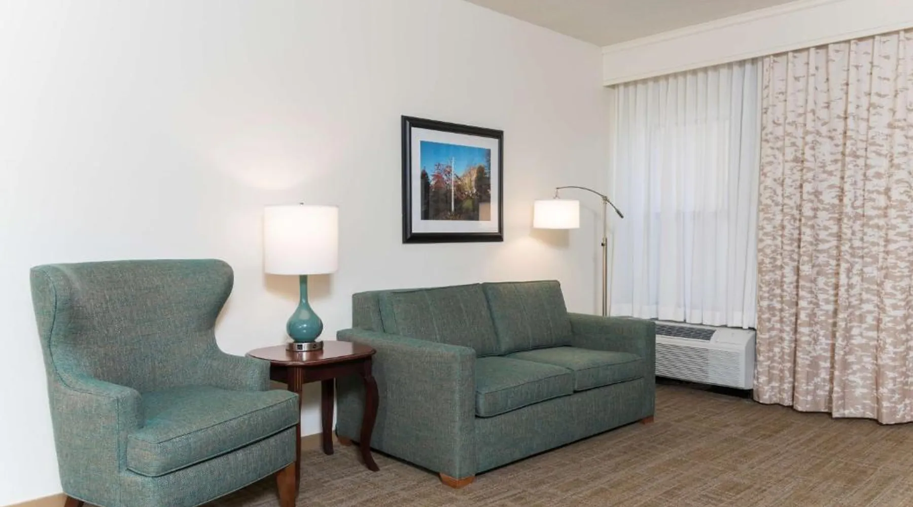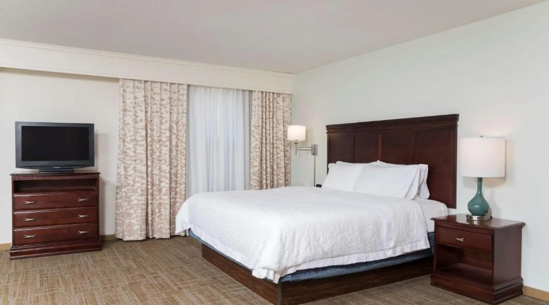 Comfortable Accommodations: Hampton Inn East Lansing in East Lansing offers family rooms with sofa beds and seating areas. Each room includes a tea and coffee maker, hairdryer, refrigerator, microwave, shower, and TV. Exceptional Facilities: Guests enjoy an indoor swimming pool, fitness center, and free WiFi. Additional amenities include a fitness room, elevator, 24-hour front desk, daily housekeeping service, business area, full-day security, and luggage storage. Delicious Breakfast: A continental, American, or buffet breakfast is served with warm dishes. The property staff provide excellent service support, ensuring a pleasant stay. Prime Location: Located 6.8 mi from Capital Region International Airport, the hotel is close to attractions such as Jack Breslin Arena and Wharton Center, both 2.8 mi away. Michigan State University is 3.1 mi from the property. This room features a spa bath, and flat-screen TV. A microwave and small refrigerator are also included.