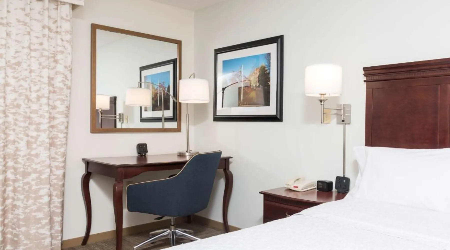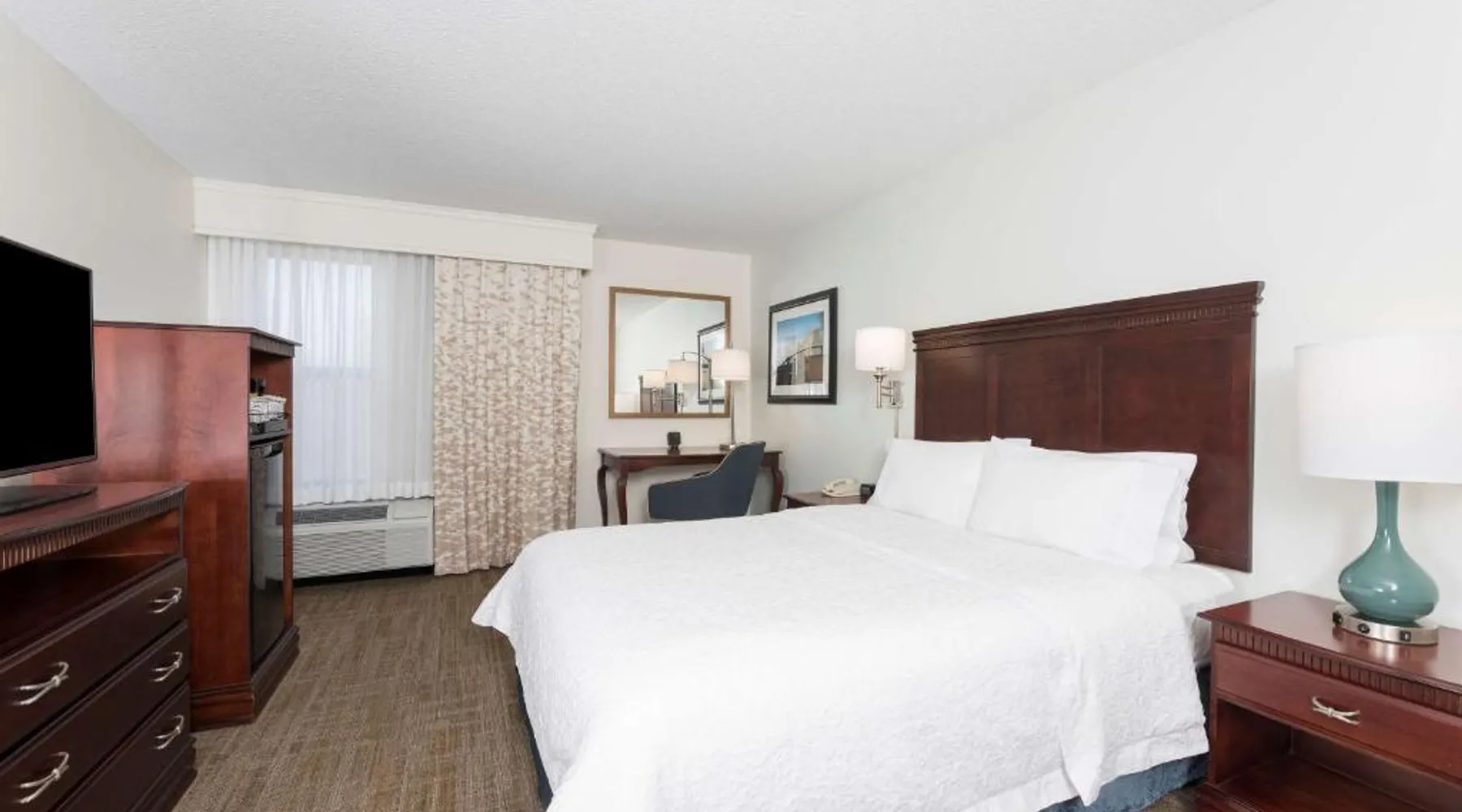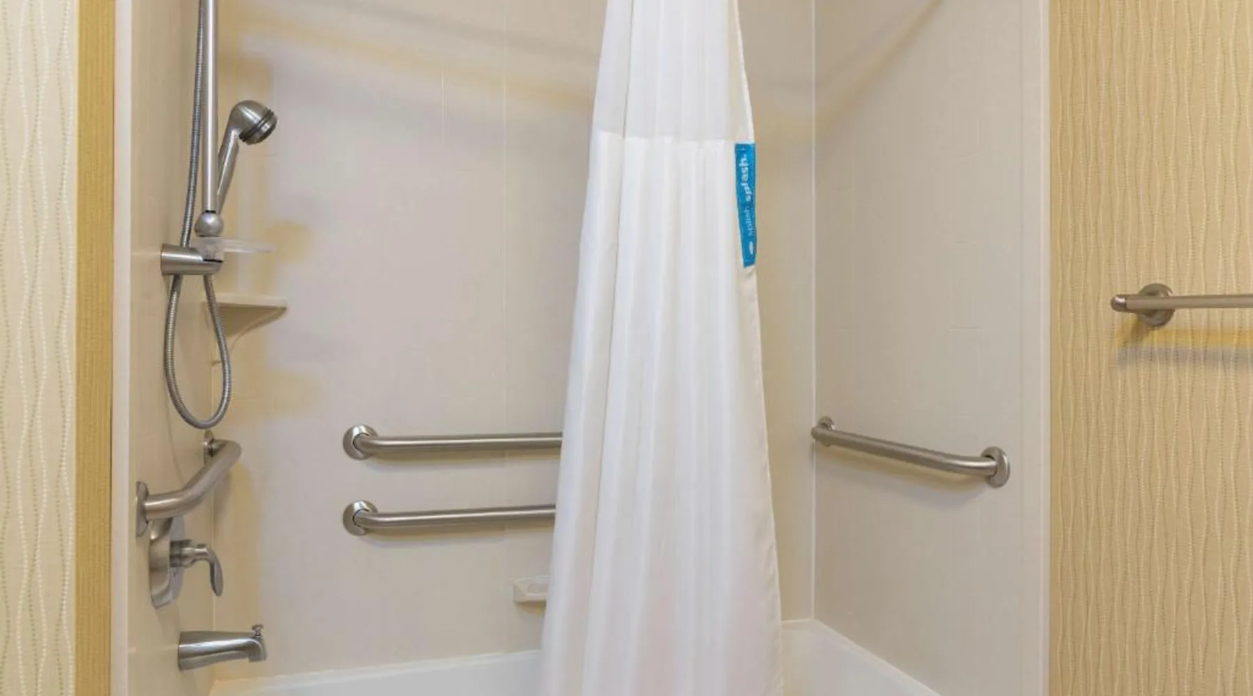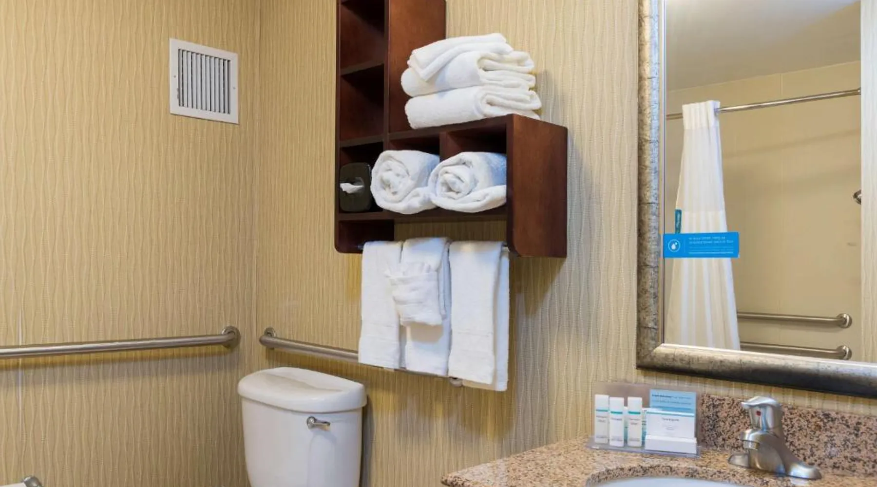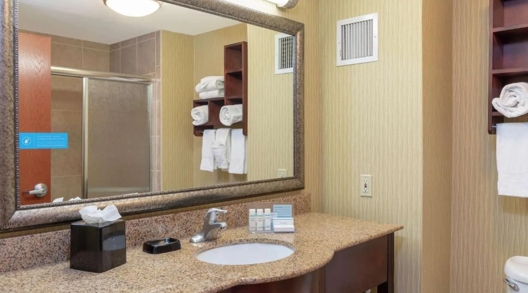 Comfortable Accommodations: Hampton Inn East Lansing in East Lansing offers family rooms with sofa beds and seating areas. Each room includes a tea and coffee maker, hairdryer, refrigerator, microwave, shower, and TV. Exceptional Facilities: Guests enjoy an indoor swimming pool, fitness center, and free WiFi. Additional amenities include a fitness room, elevator, 24-hour front desk, daily housekeeping service, business area, full-day security, and luggage storage. Delicious Breakfast: A continental, American, or buffet breakfast is served with warm dishes. The property staff provide excellent service support, ensuring a pleasant stay. Prime Location: Located 6.8 mi from Capital Region International Airport, the hotel is close to attractions such as Jack Breslin Arena and Wharton Center, both 2.8 mi away. Michigan State University is 3.1 mi from the property. This room features a spa bath, and flat-screen TV. A microwave and small refrigerator are also included.
